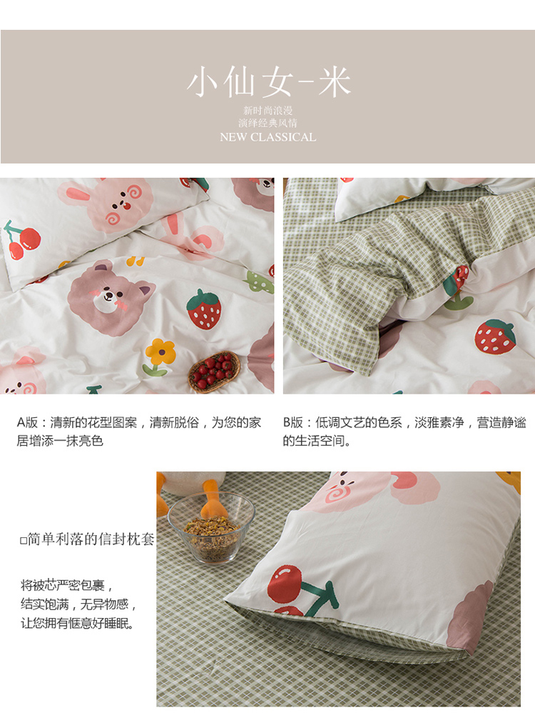 商品名称:窝米 2020春夏新品13370全棉四件套萌宠风系列 小仙女-米