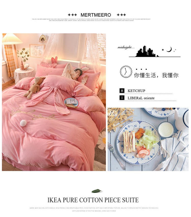 当前位置: 91家纺网 > 商品网购 > 床品套件 > 四件套 > 水晶绒四件套 > (总)绒世界 2021新款水晶绒绣花兔耳四件套-萌兔