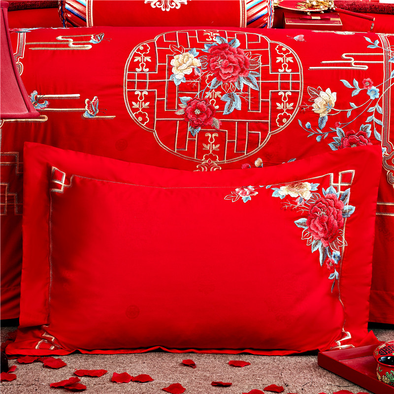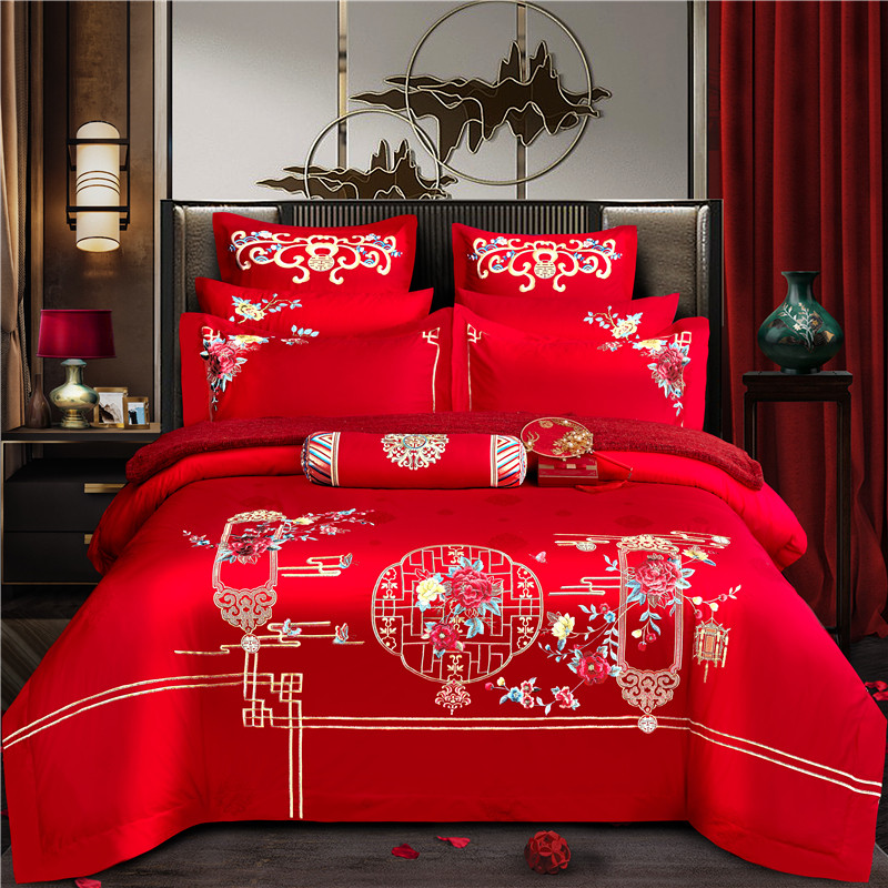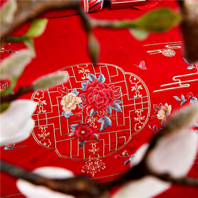 2025新款100支长绒棉刺绣婚庆四件套多件套 连理交枝