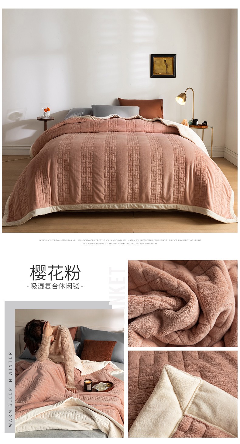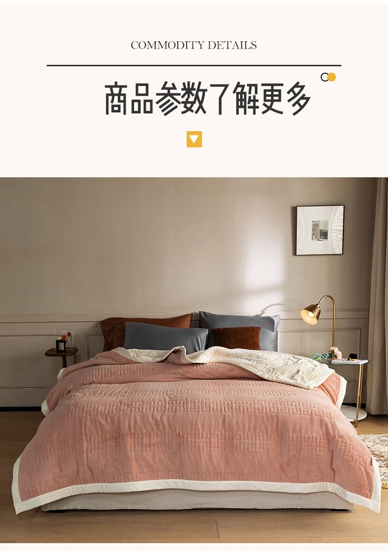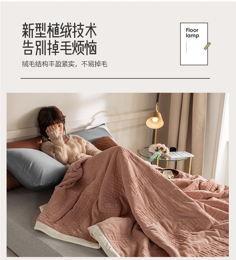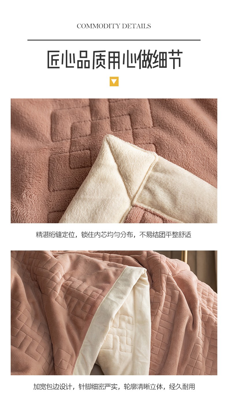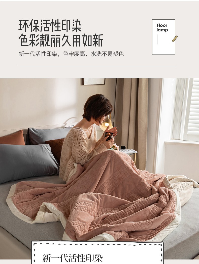 商品名称:法芙娜 秋冬加厚吸湿绗绣毯 牛奶绒夹棉毛毯 樱花粉