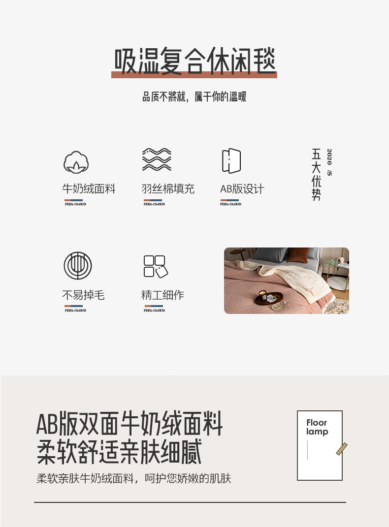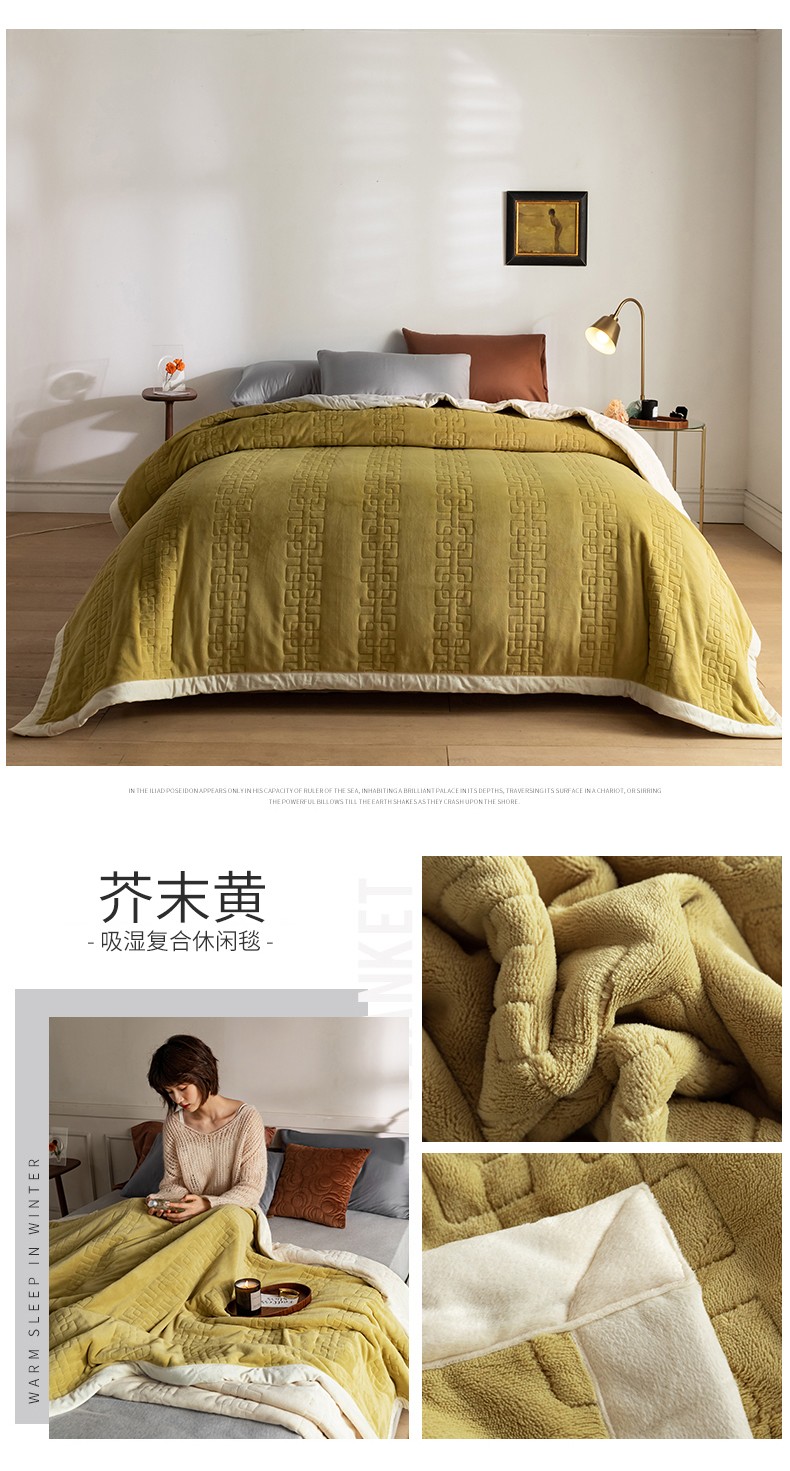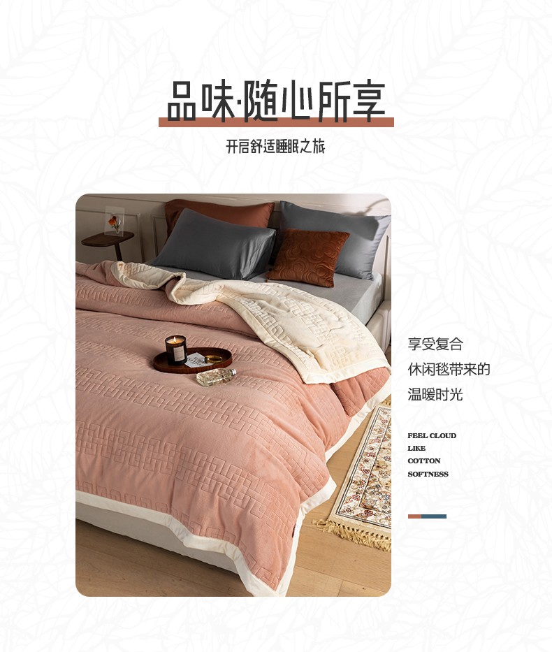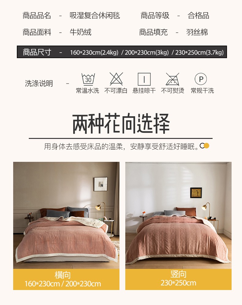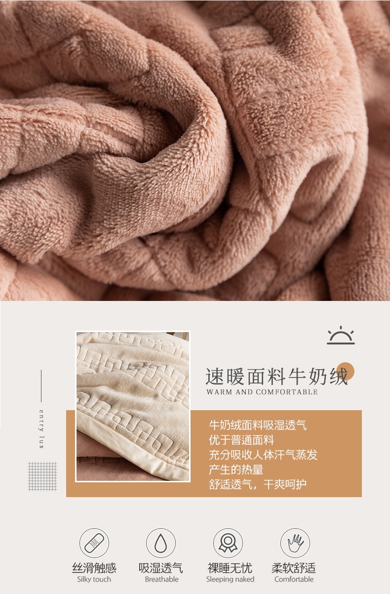商品名称:法芙娜 秋冬加厚吸湿绗绣毯 牛奶绒夹棉毛毯 樱花粉