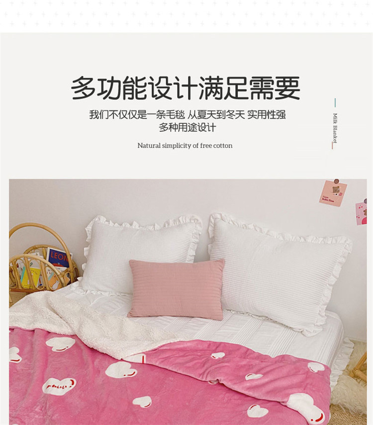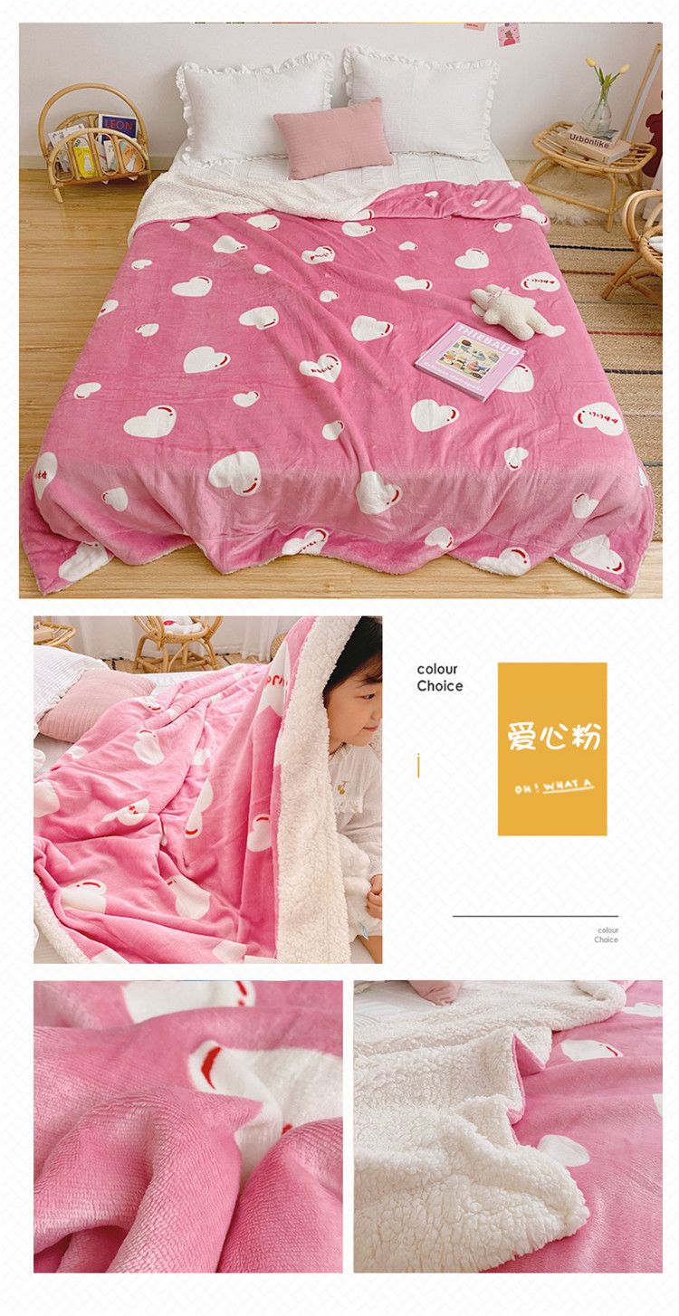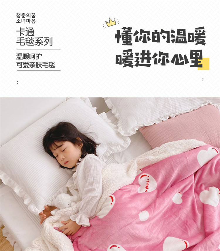 川悦生活2020新款羊羔绒毯子卡通亲肤牛奶绒毛毯爱心粉