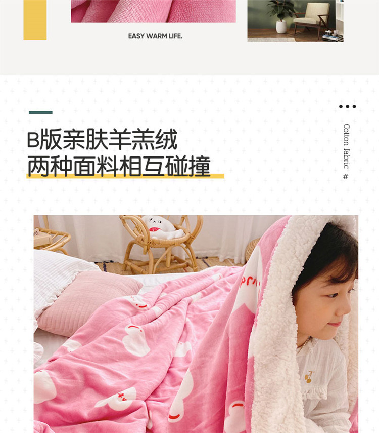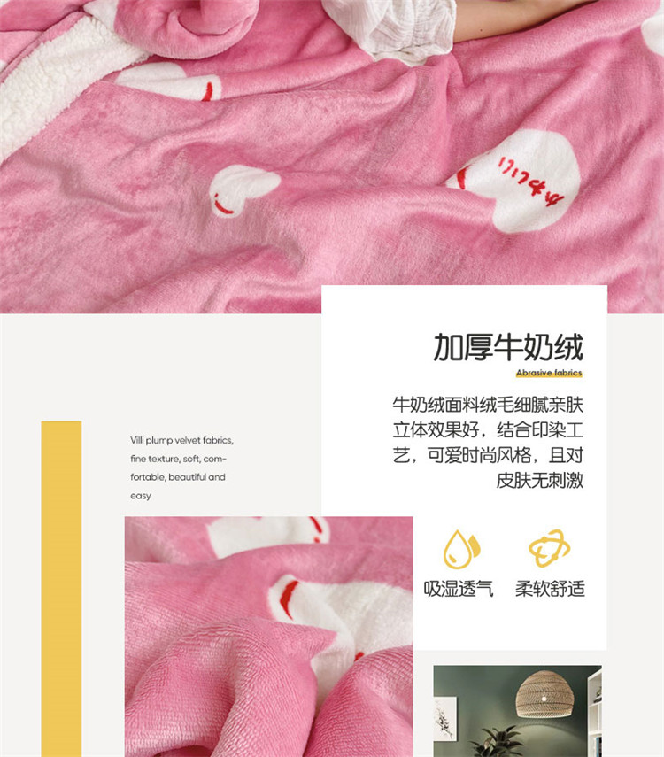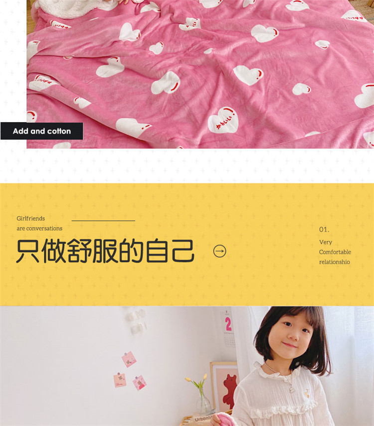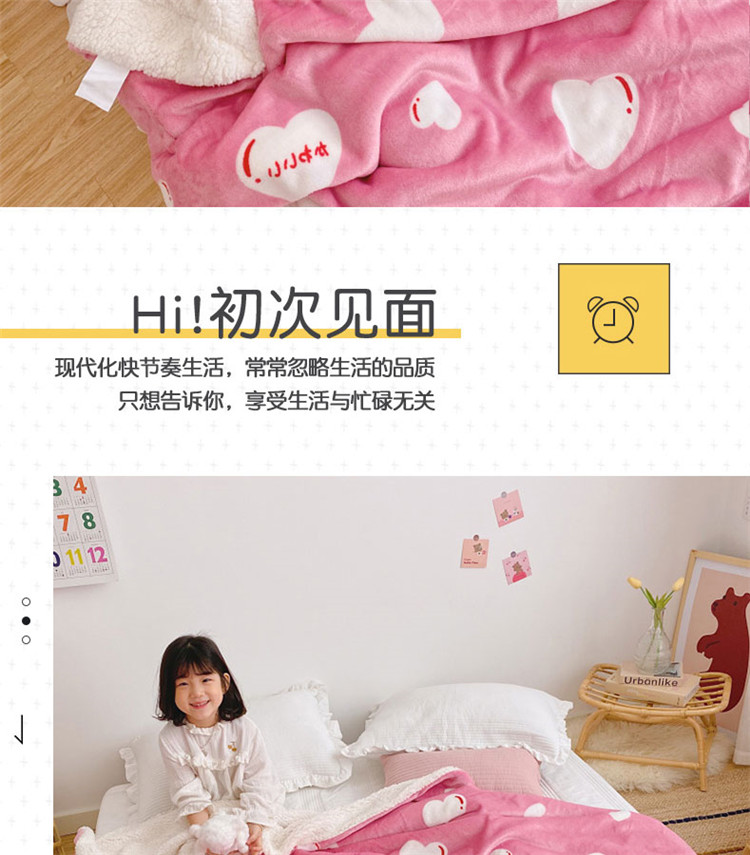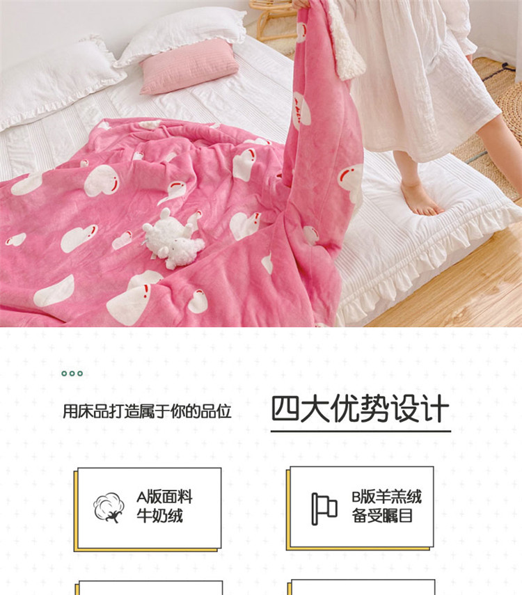 商品名称:川悦生活2020新款羊羔绒毯子卡通亲肤牛奶绒毛毯爱心粉