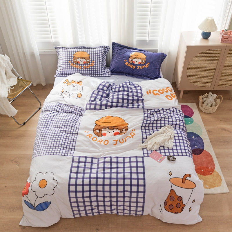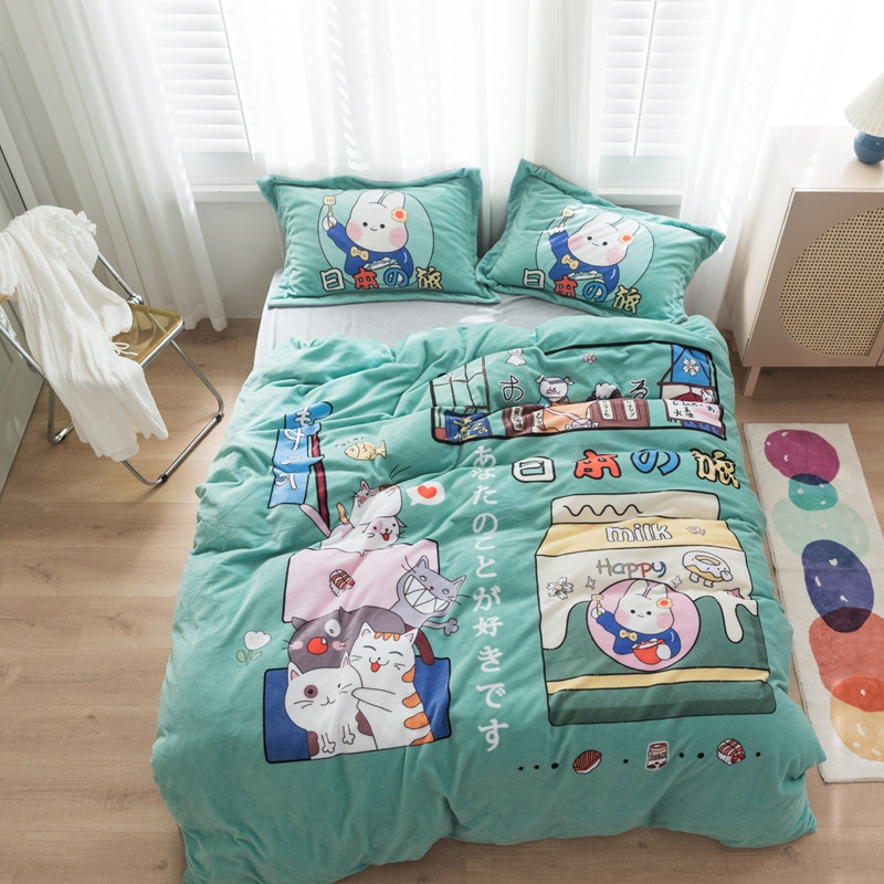 (总)柚子YOUTH 2025新款加厚牛奶绒卡通毛巾绣四件套-印加绣送同款毛毯,蛋糕小狗,公主猫,头套猫,兔兔花园,小伙伴,雪纳瑞
