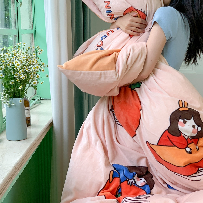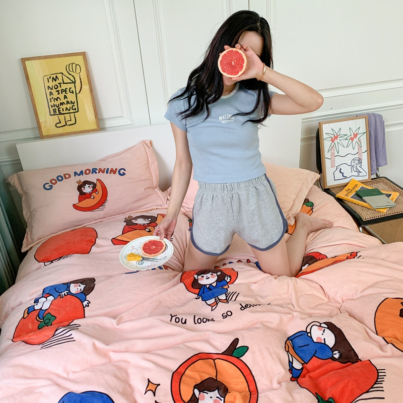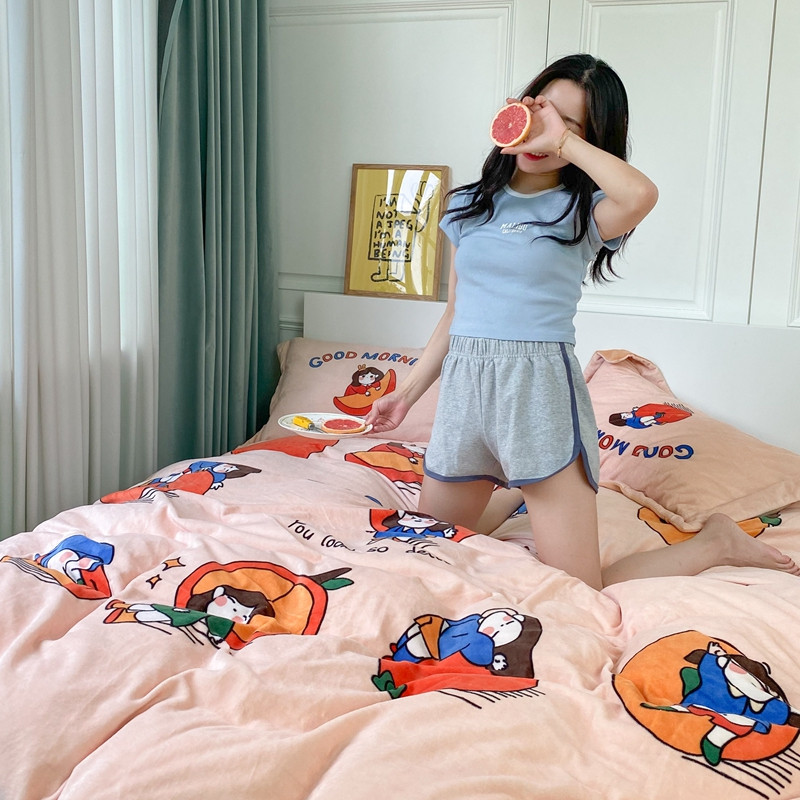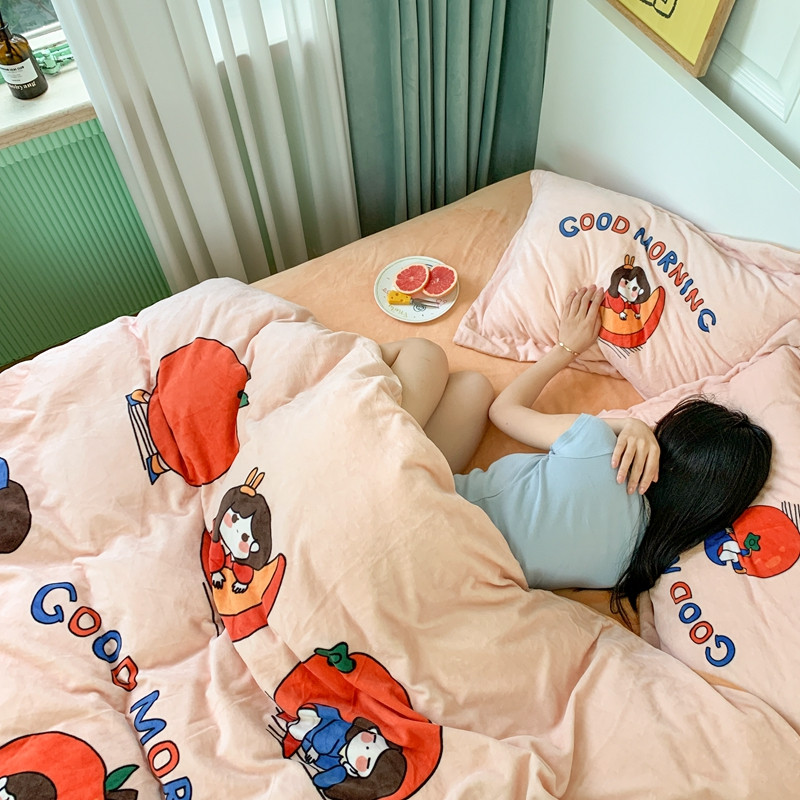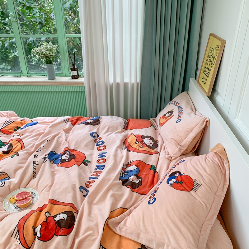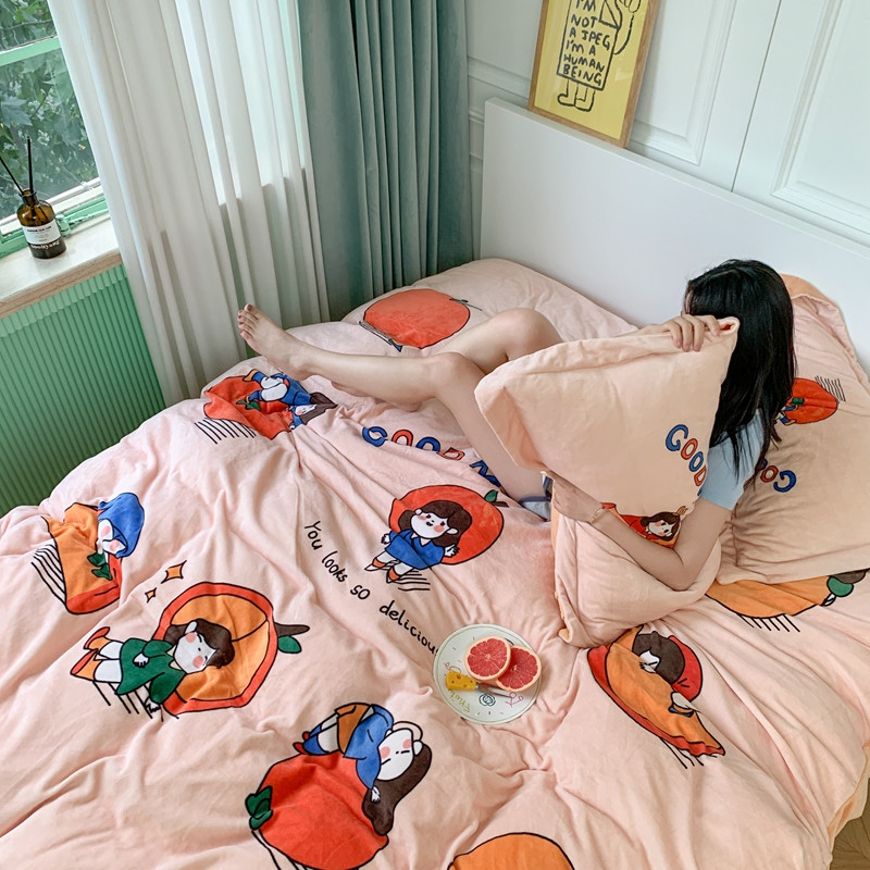 柚子 2020新款牛奶绒印花大版四件套 橘子女孩