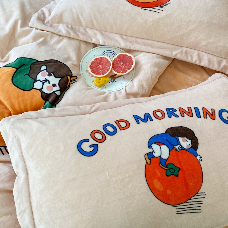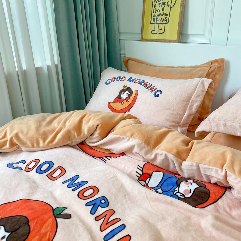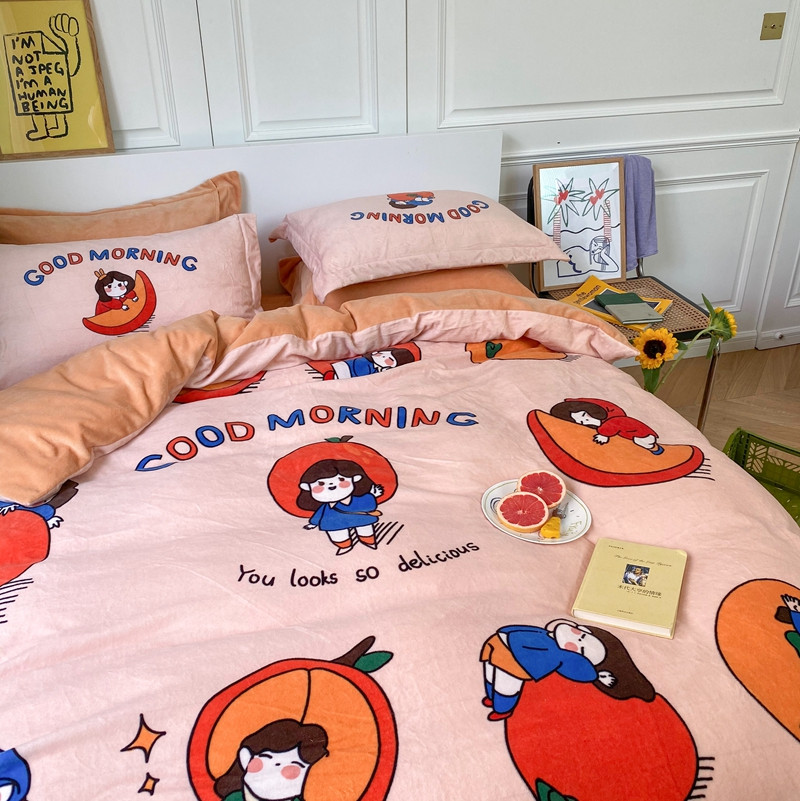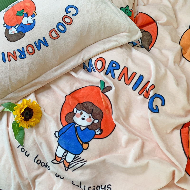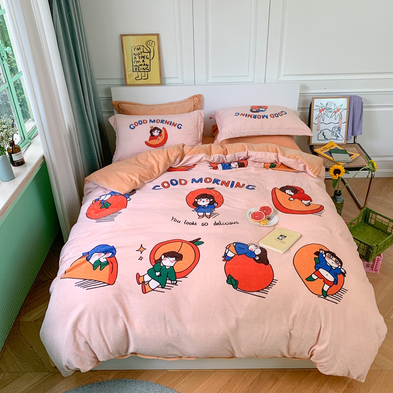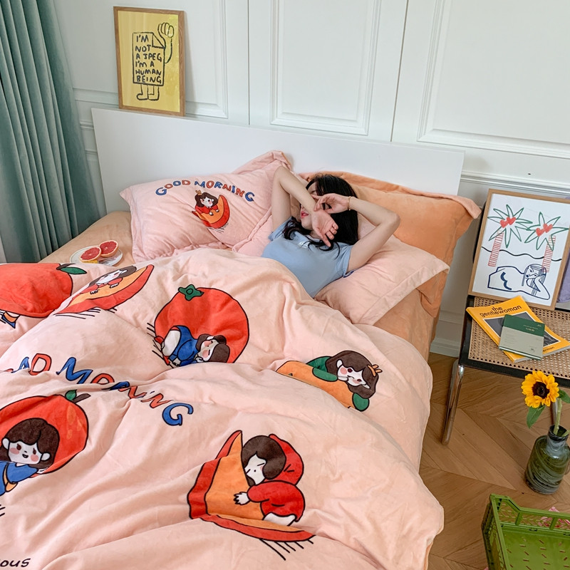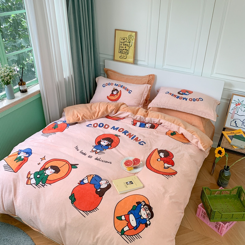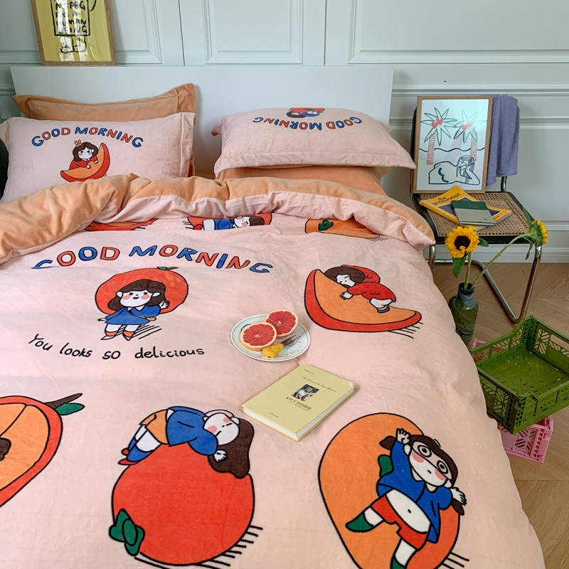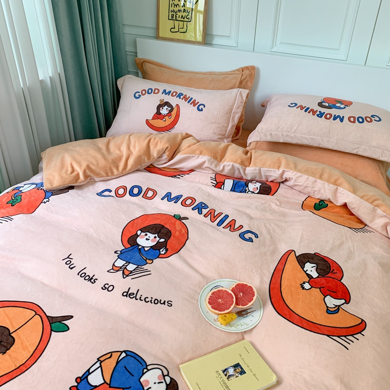 商品名称:柚子 2020新款牛奶绒印花大版四件套 橘子女孩