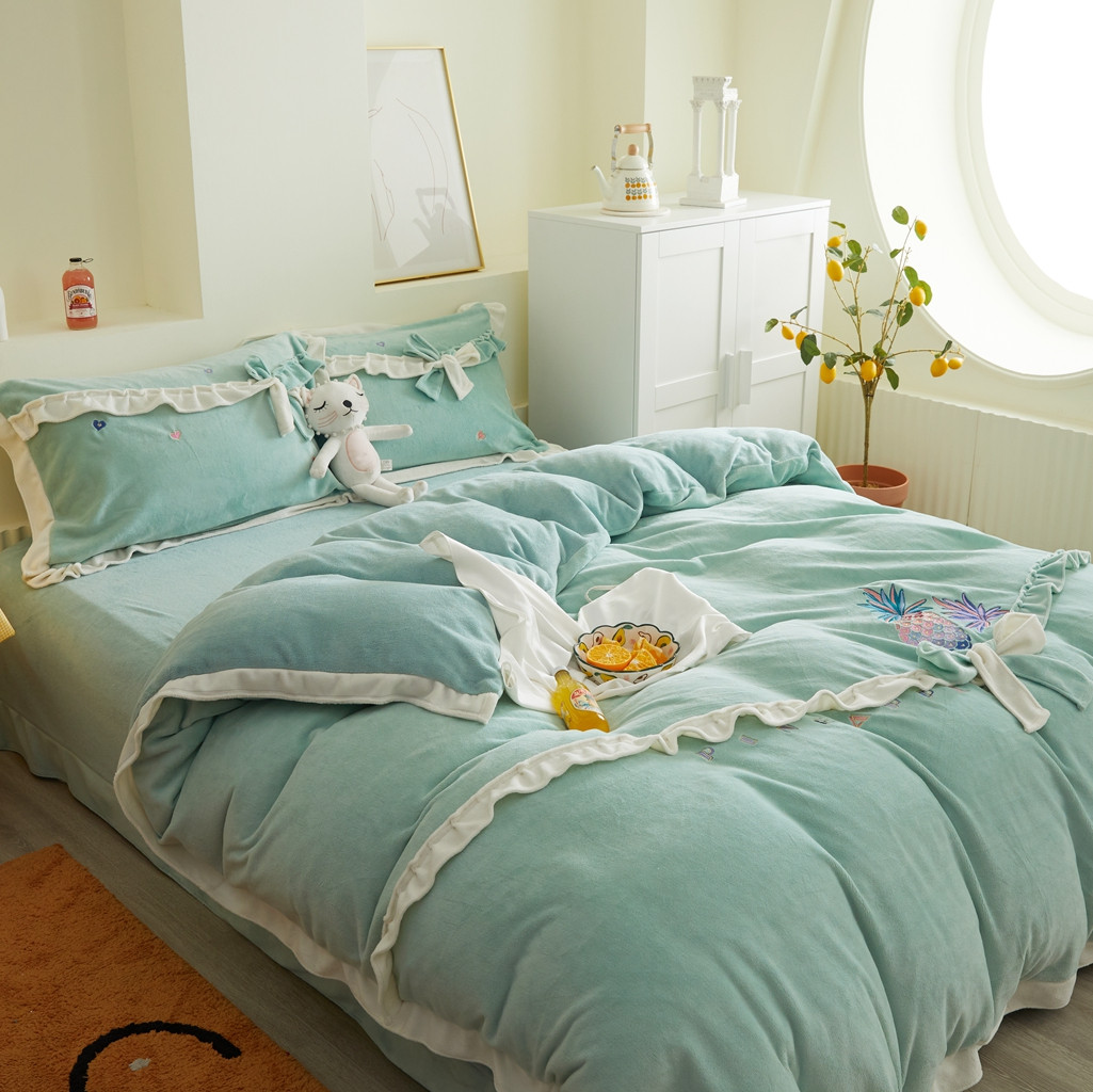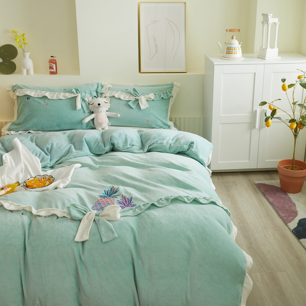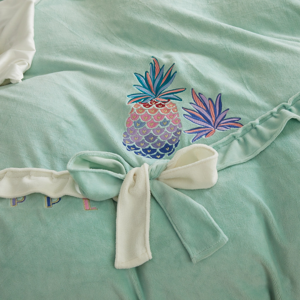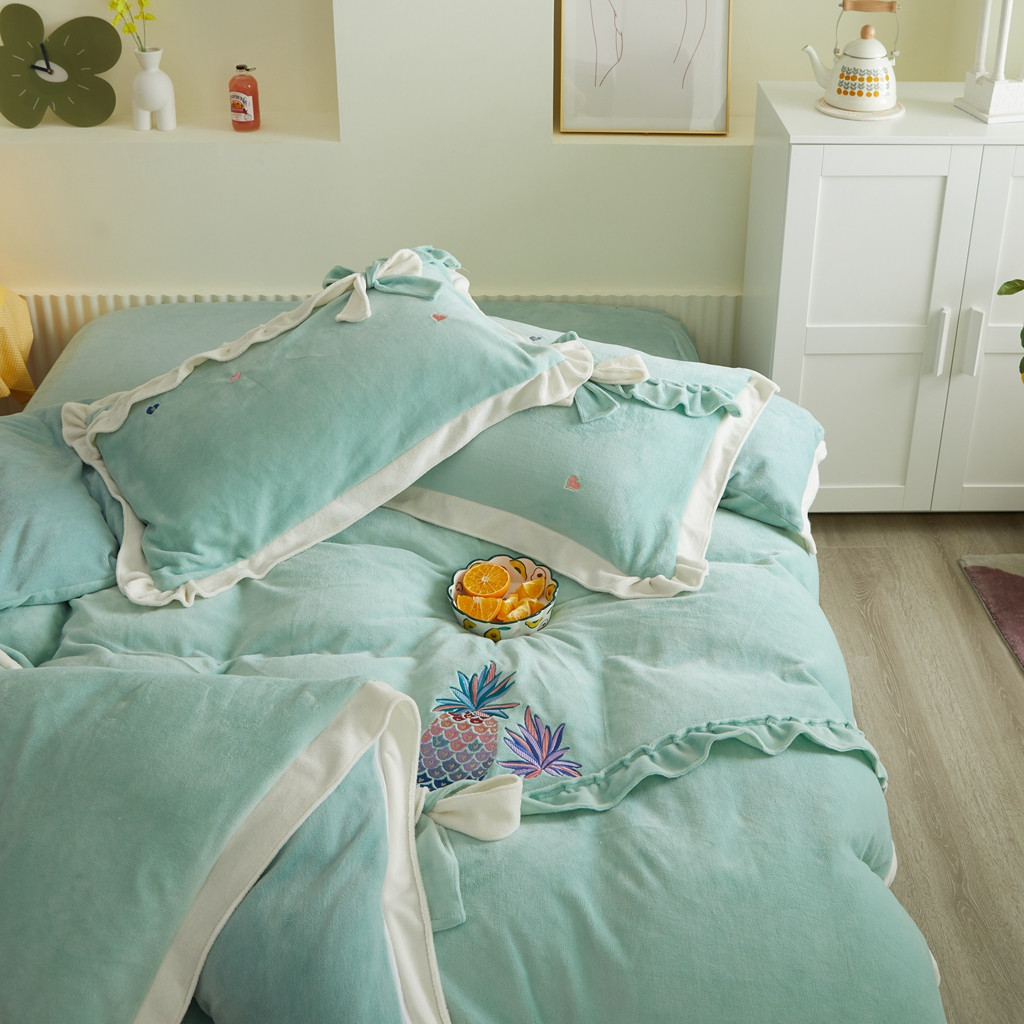 眠屿 2020新款牛奶绒绣花菠萝系列四件套 菠萝-绿