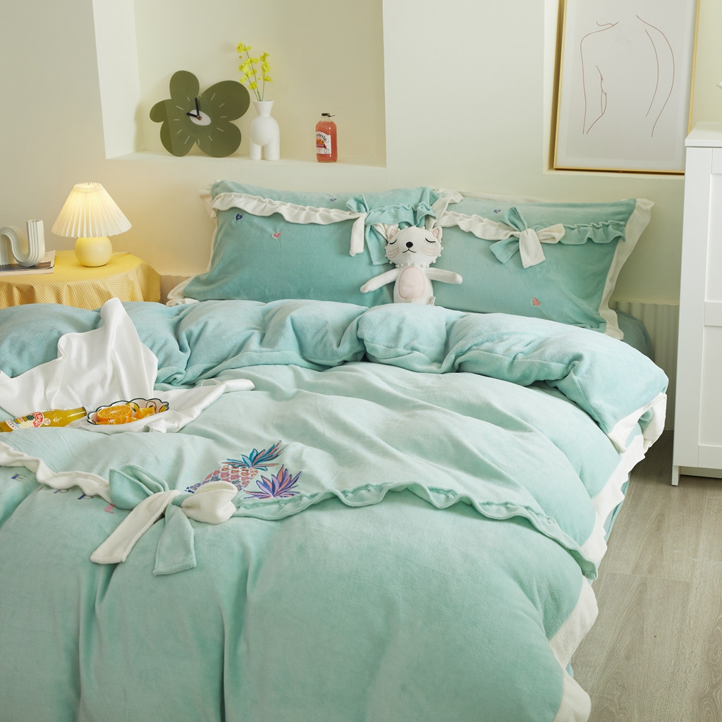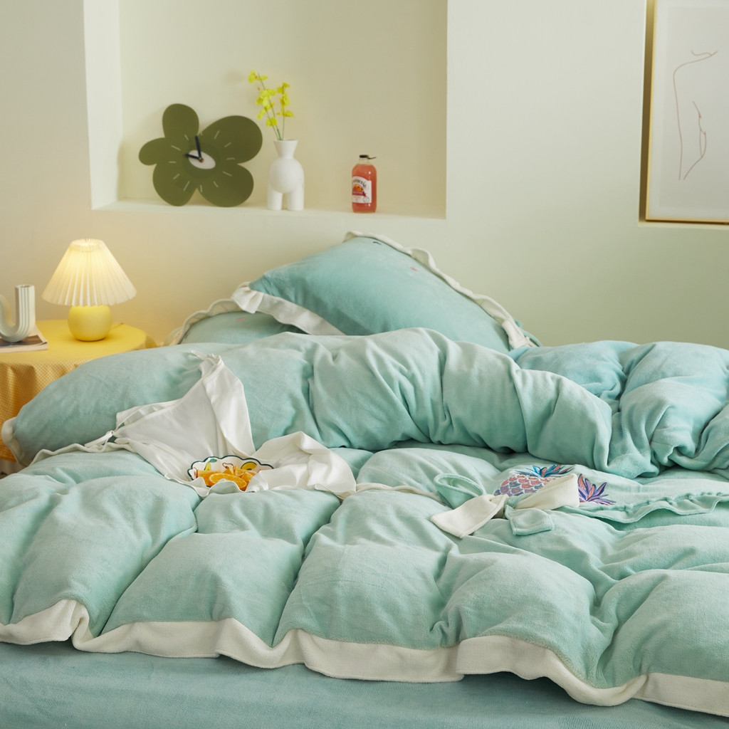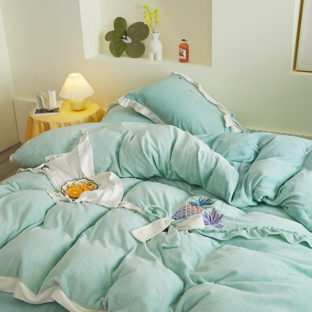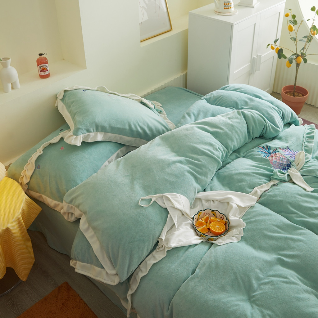 眠屿 2020新款牛奶绒绣花菠萝系列四件套 菠萝-绿