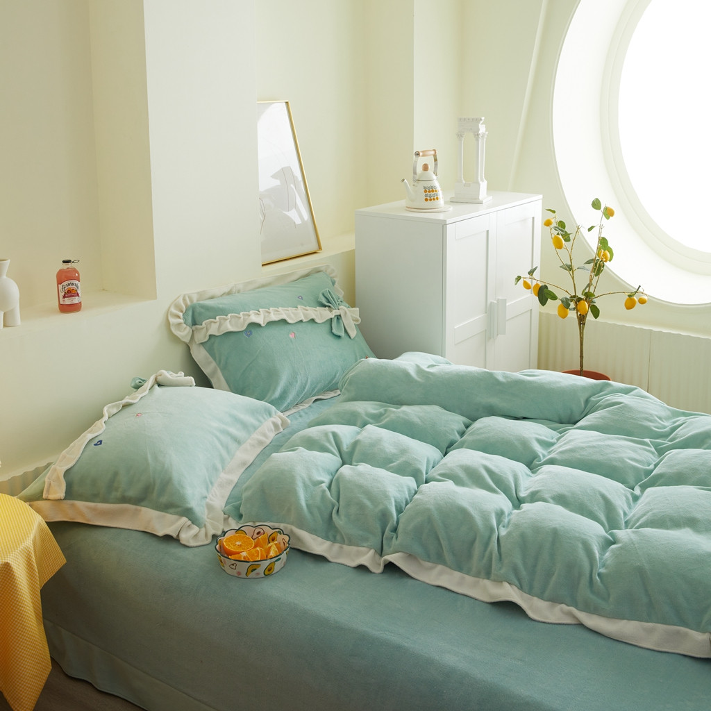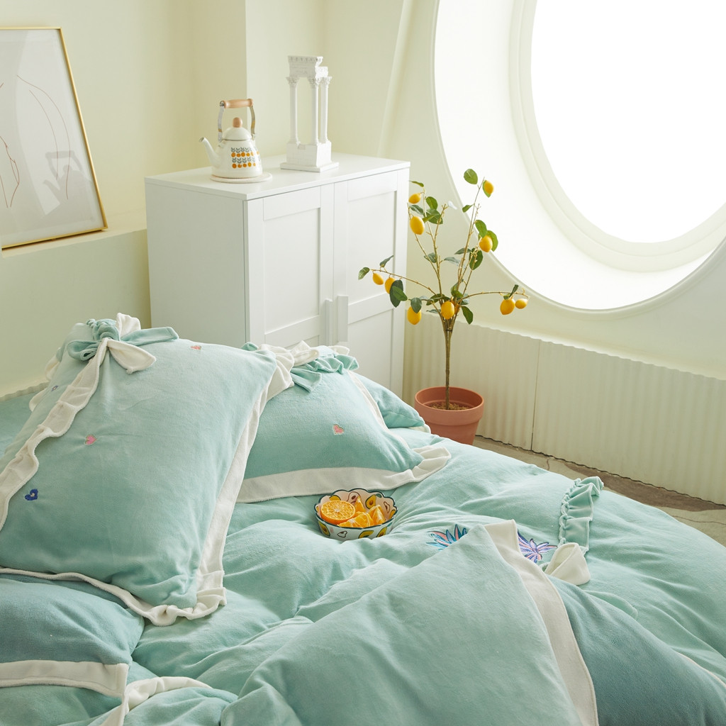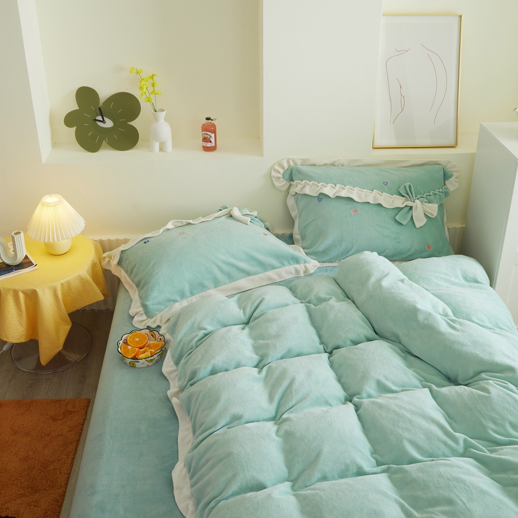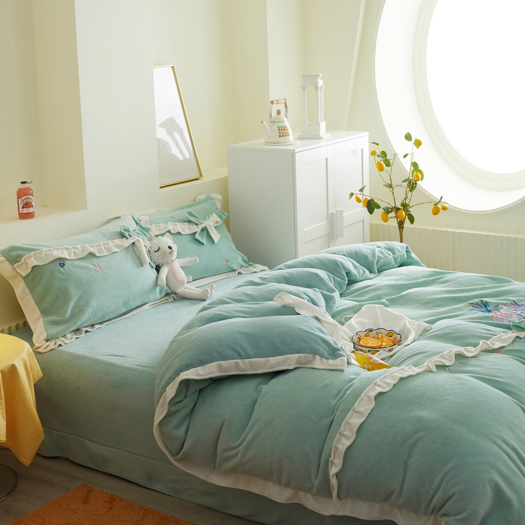 (总)眠屿 2022新款韩国绒绣花四件套-爱心熊,宝石蓝,豆沙粉,芥末绿,奶茶咖