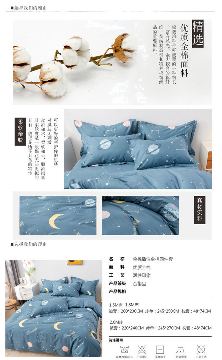 (总)星期三 2021新款5月新花型全棉四件套(加老板微信有会员价),太空熊,春鸟-兰,格调-绿,曼妮熊,星际漫游,羽叶