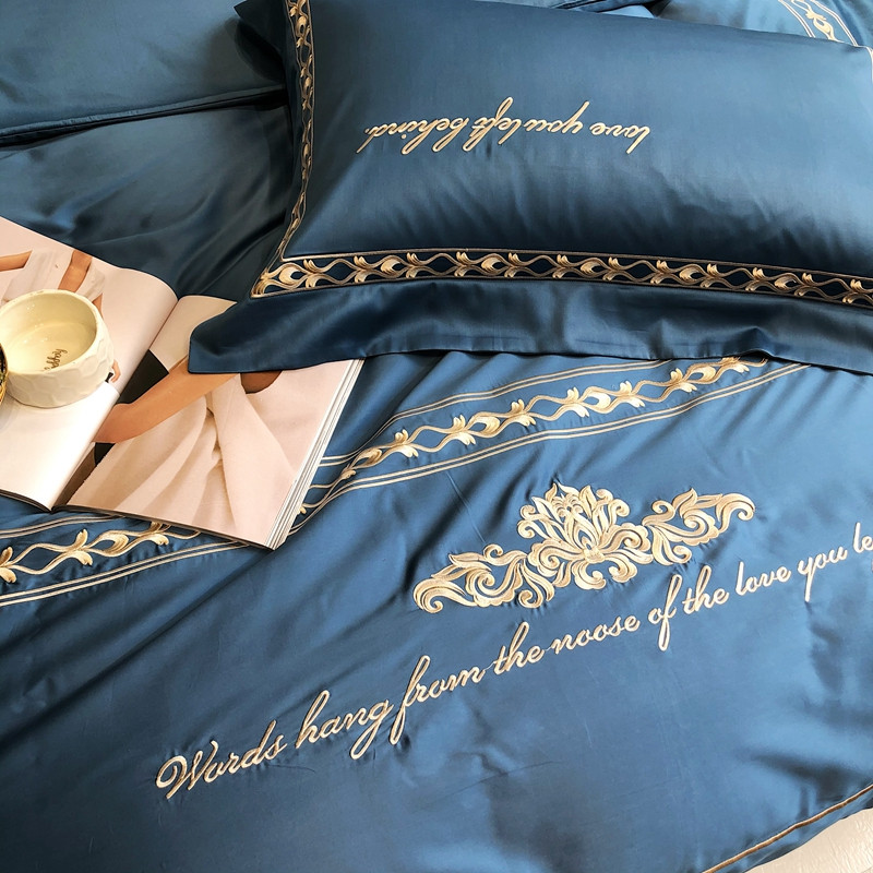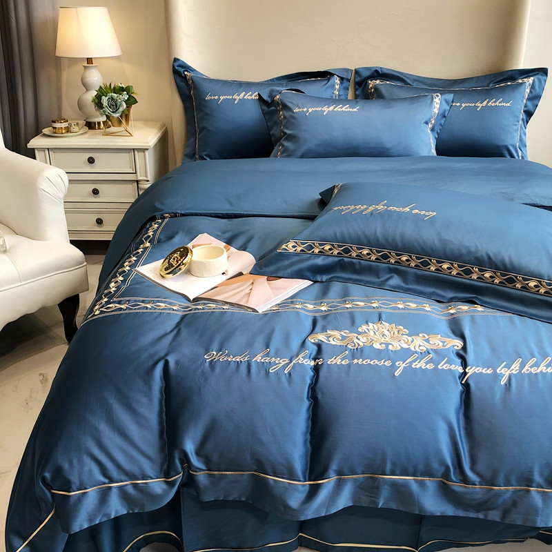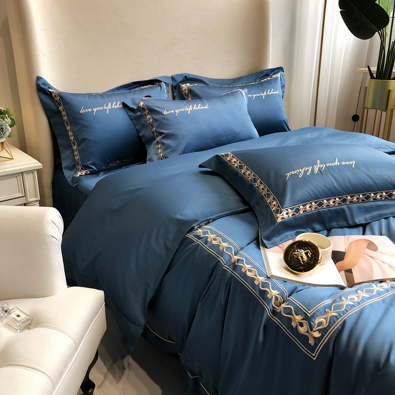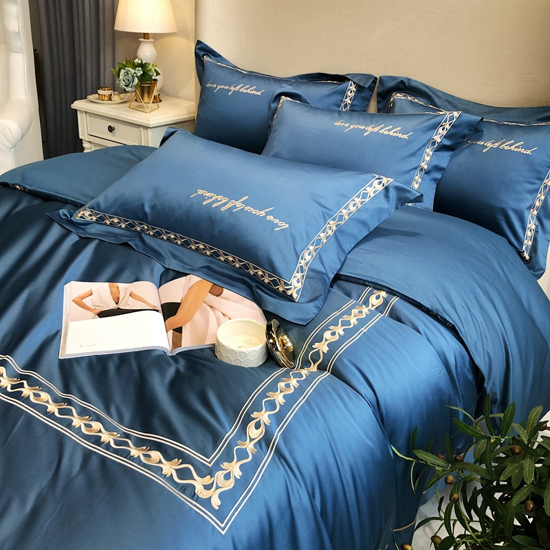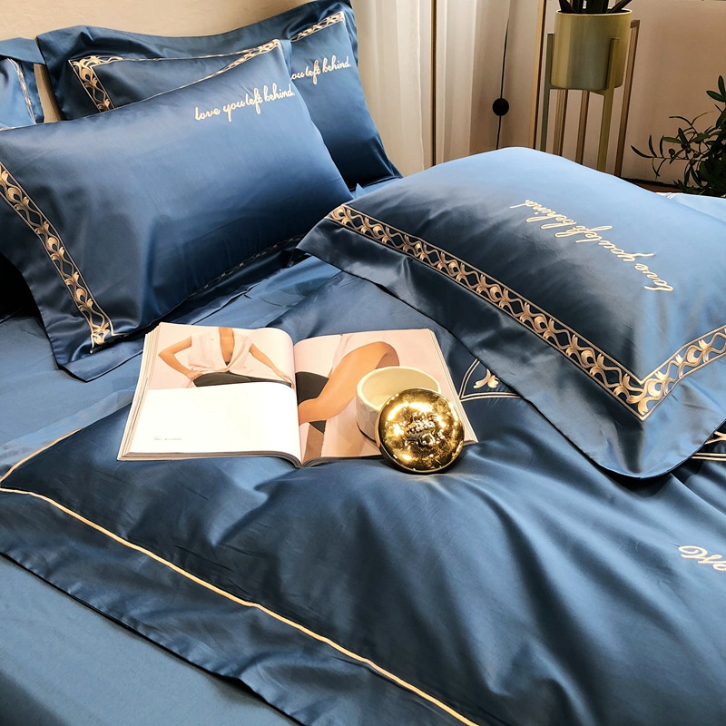 馨蕊家居 2021新品春夏高定100支艾丽莎四件套 艾丽莎浅石蓝