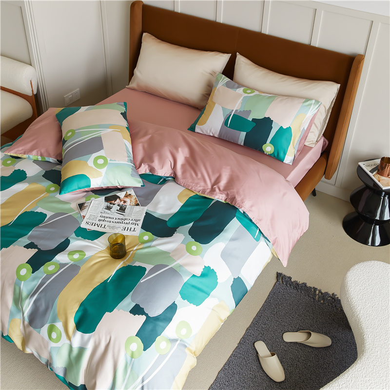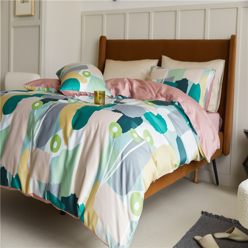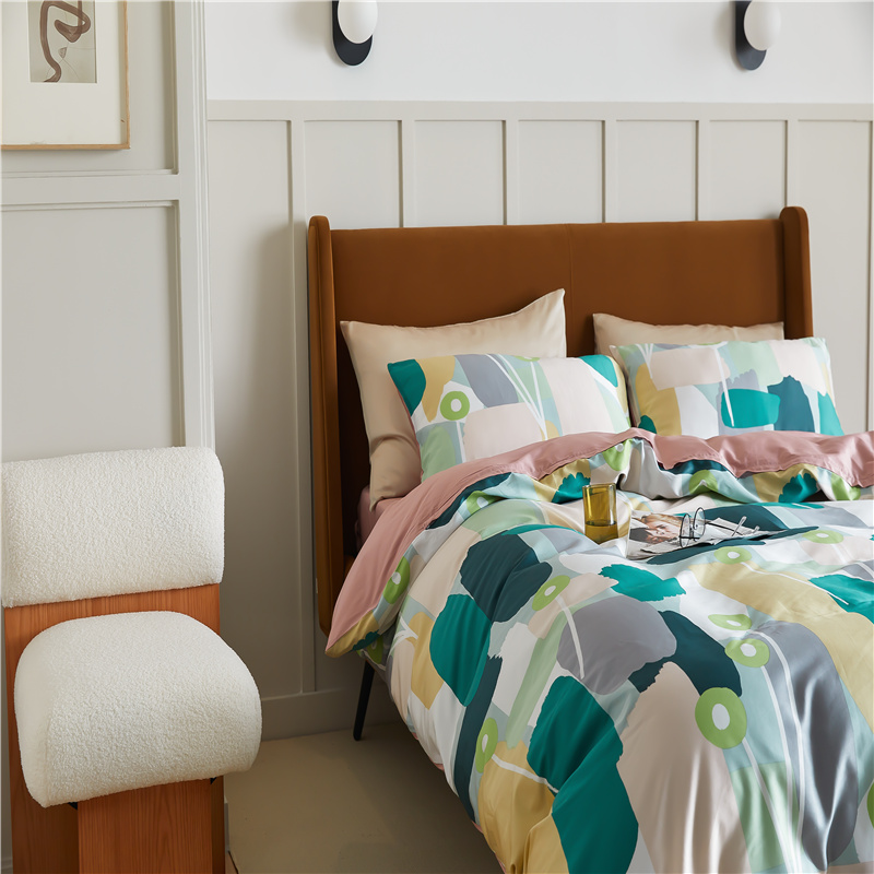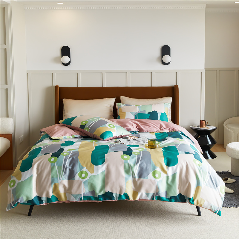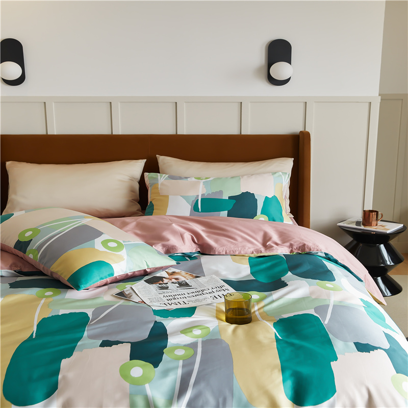 (总)优然居家纺 2025新款50支全棉纯棉印花法式双头木耳边四件套,觅棠,莫妮卡艾绿,莫妮卡罗兰,慕斯粉,薇薇安