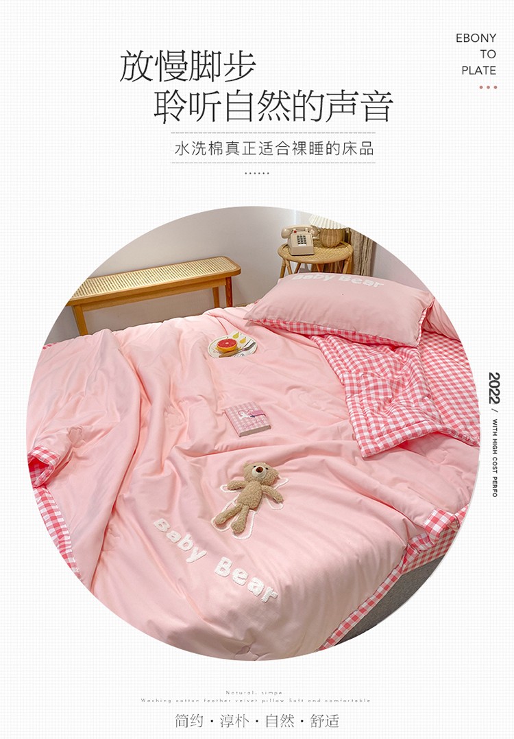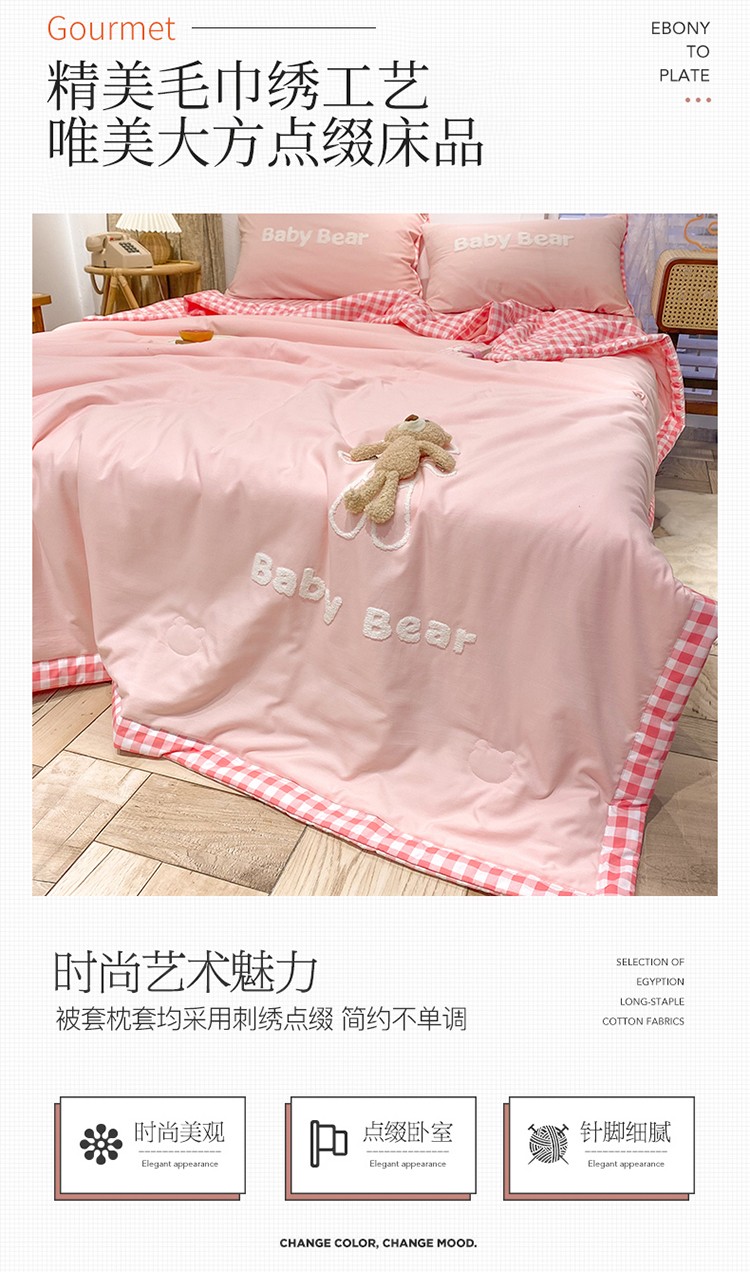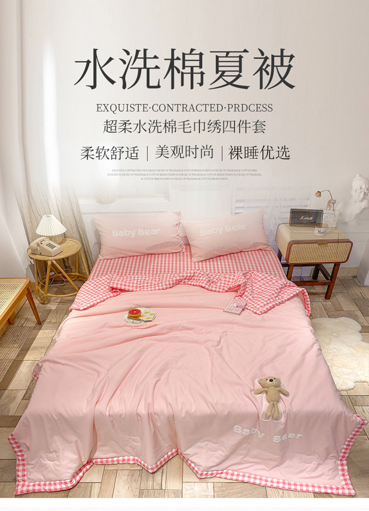 新款水洗棉刺绣小熊夏被四件套 绣花毛巾绣被子空调被薄被芯