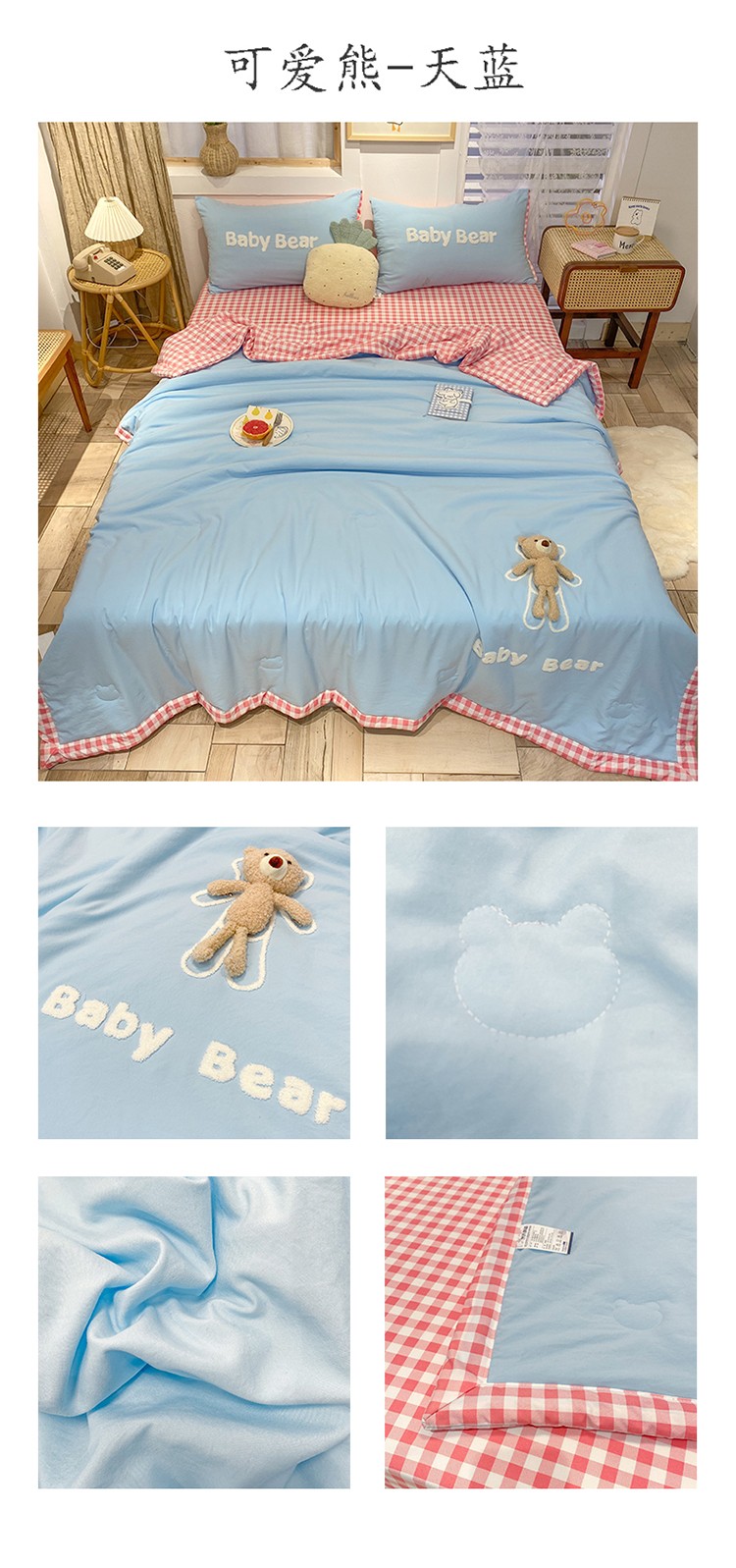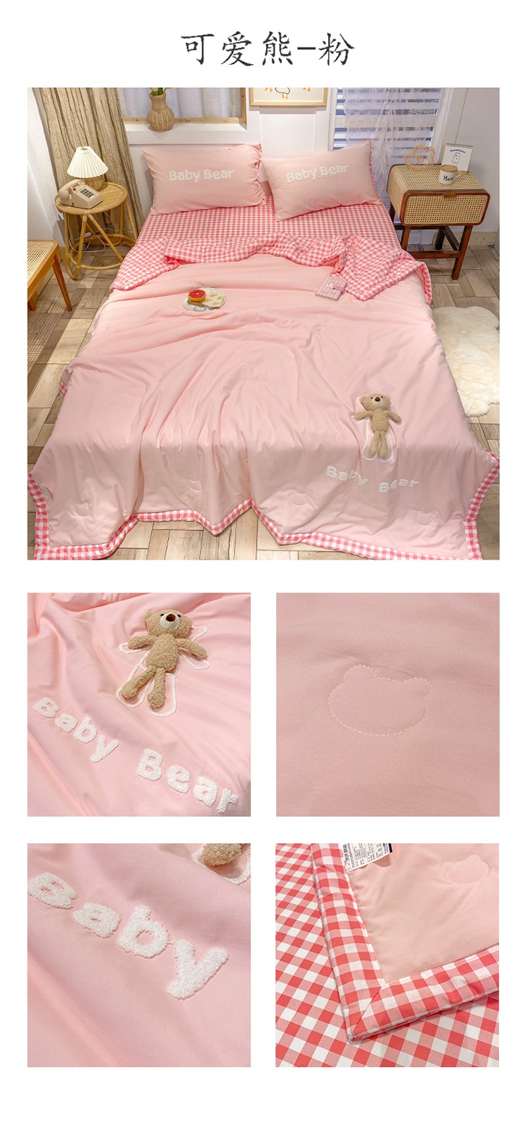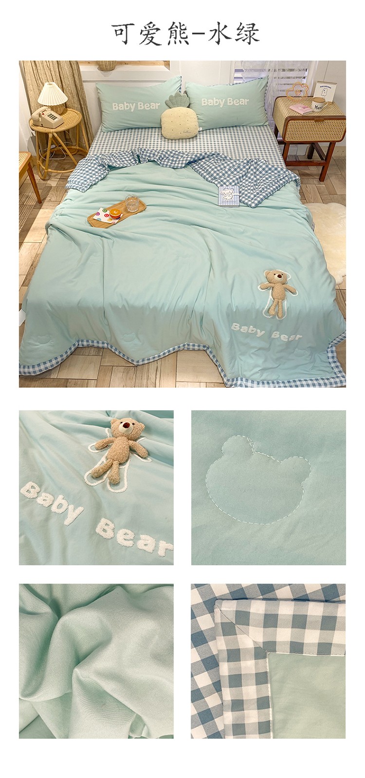 商品名称:新款水洗棉刺绣小熊夏被四件套 绣花毛巾绣被子空调被薄被芯