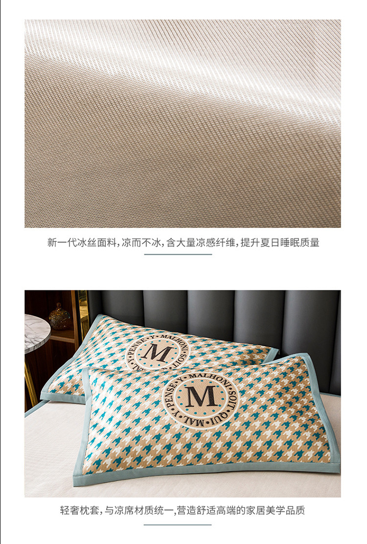 商品名称:小芽家居 2024新款冰丝斜纹提花凉席三件套 冰凌