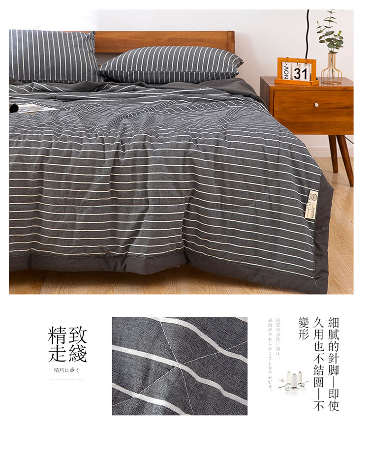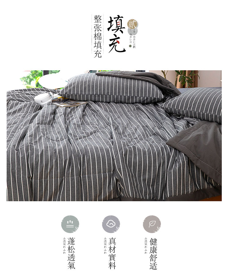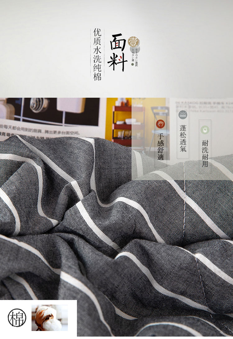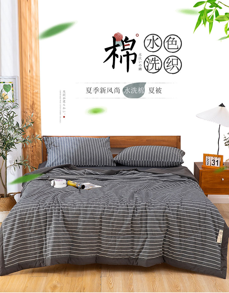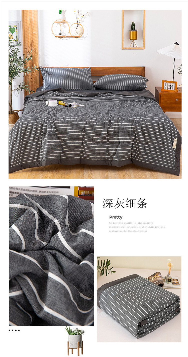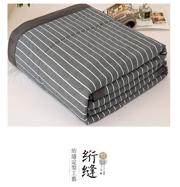 天瑜家纺 2023新款全棉色织水洗棉夏被 深灰细条