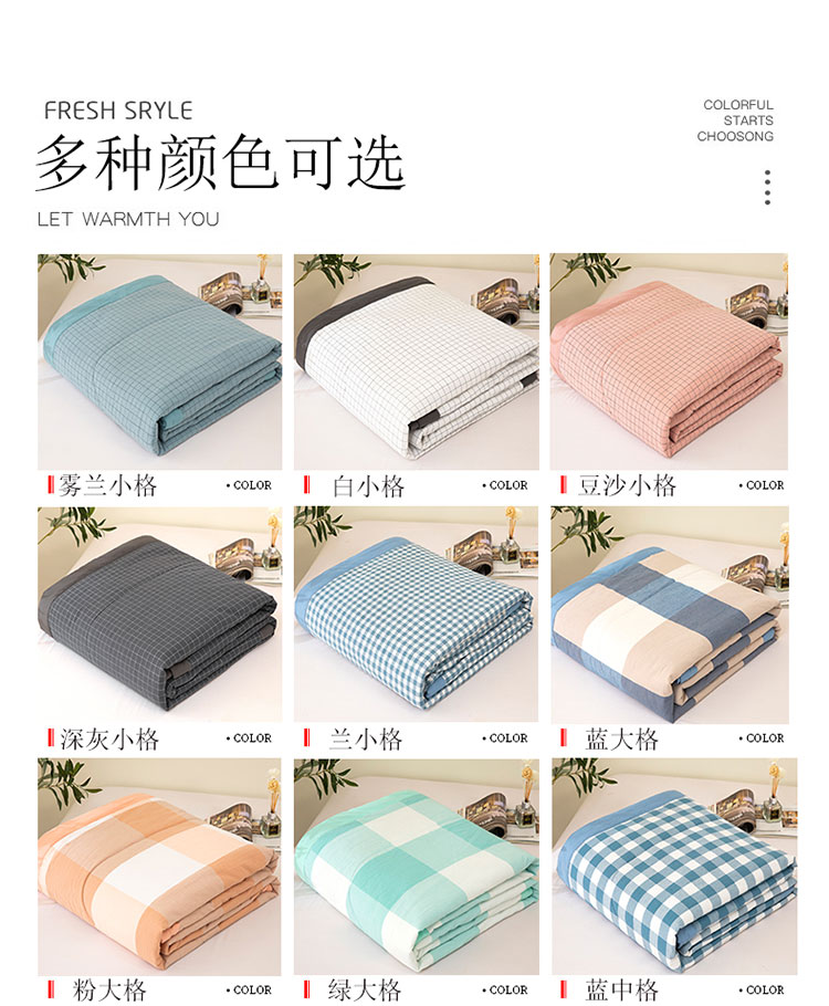 (总)天瑜家纺 2023新款全棉色织水洗棉夏被,白小格,豆沙小格,粉彩格,粉大格,粉宽条,粉小格,蓝大格,蓝咖中格,蓝宽条,蓝小格,蓝中格,绿彩格,绿大格,绿小格,深灰细条,深灰小格,雾兰小格