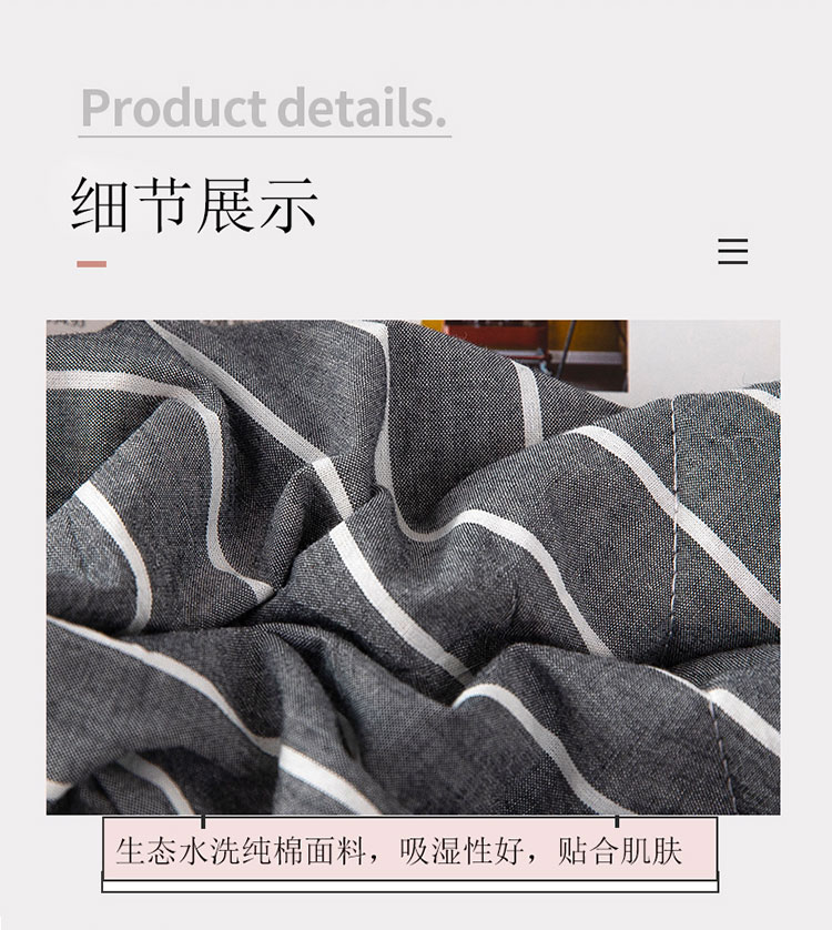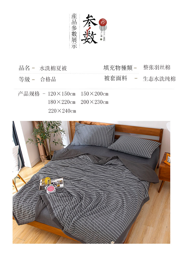 商品名称:天瑜家纺 2023新款全棉色织水洗棉夏被 深灰细条