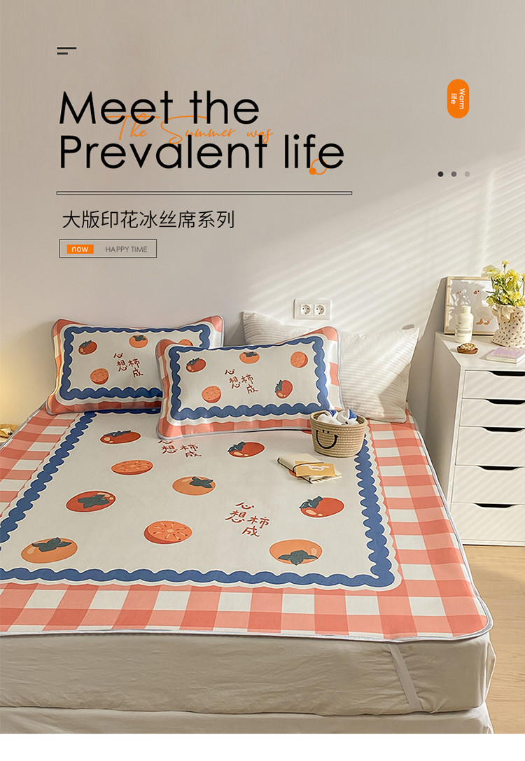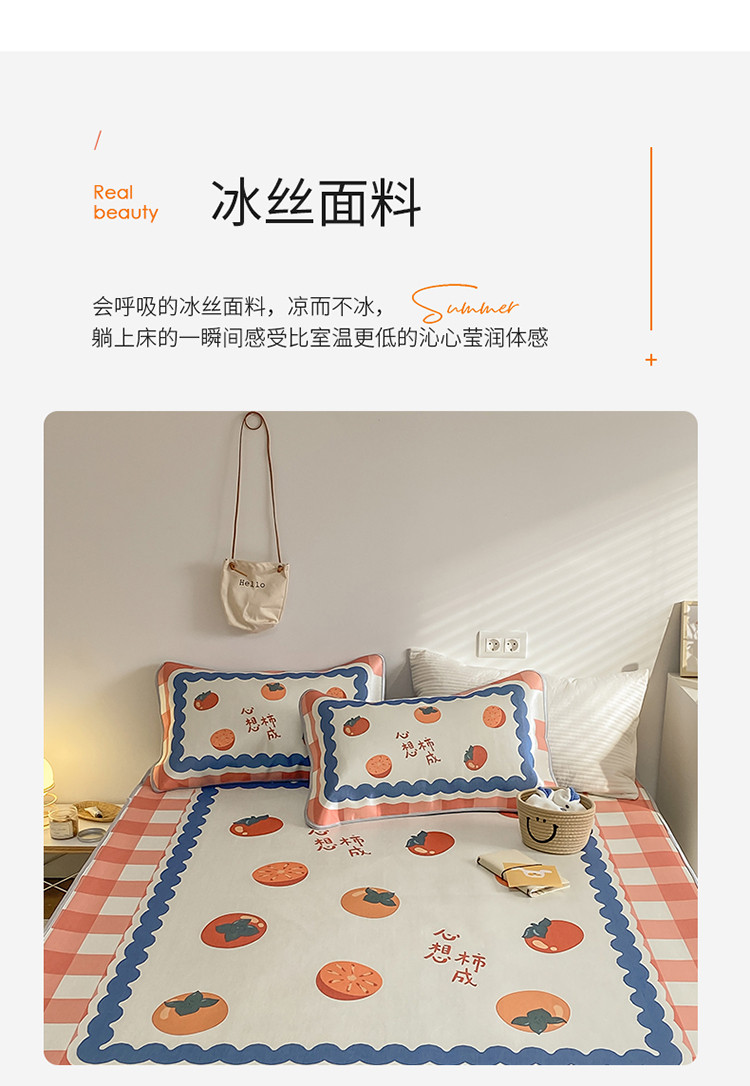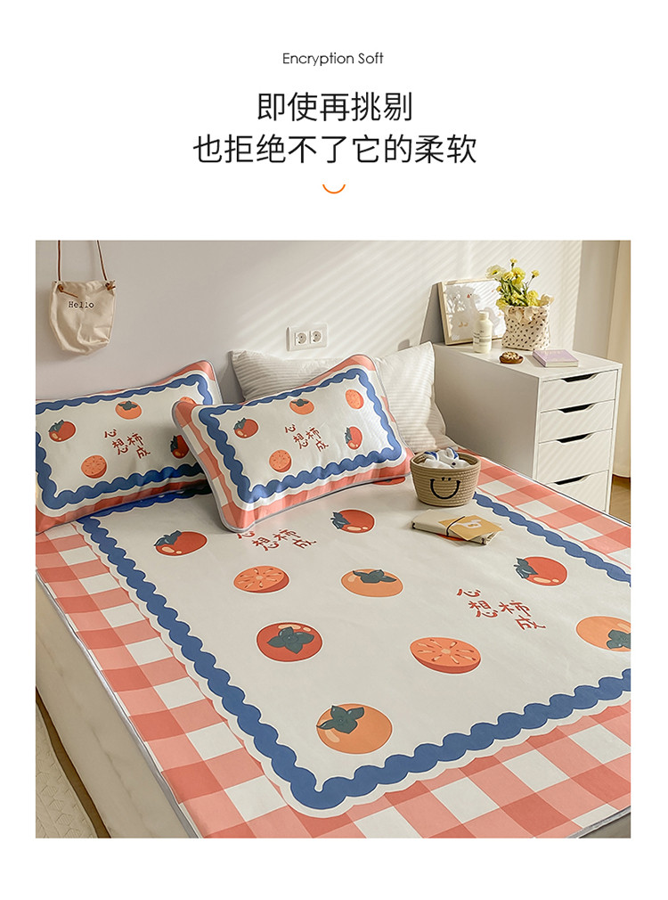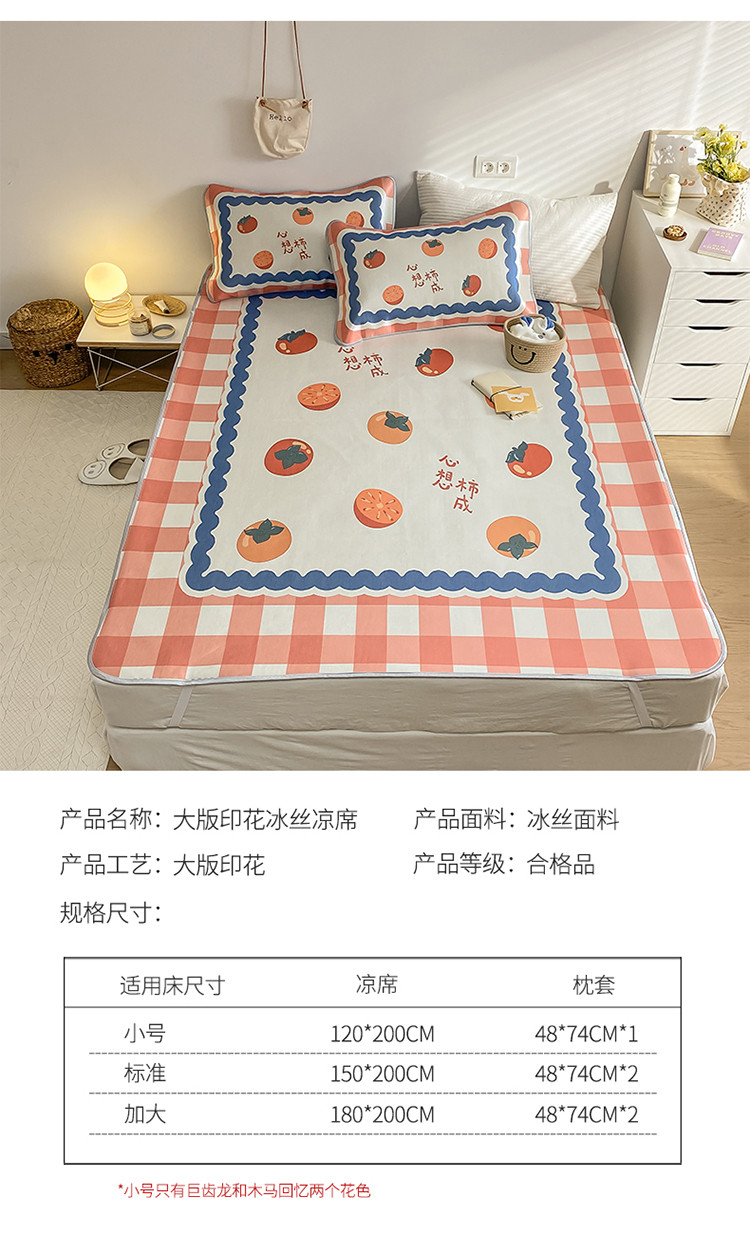 商品名称:雅居纺家纺 2022新款大版800D印花冰丝席 柿柿如意