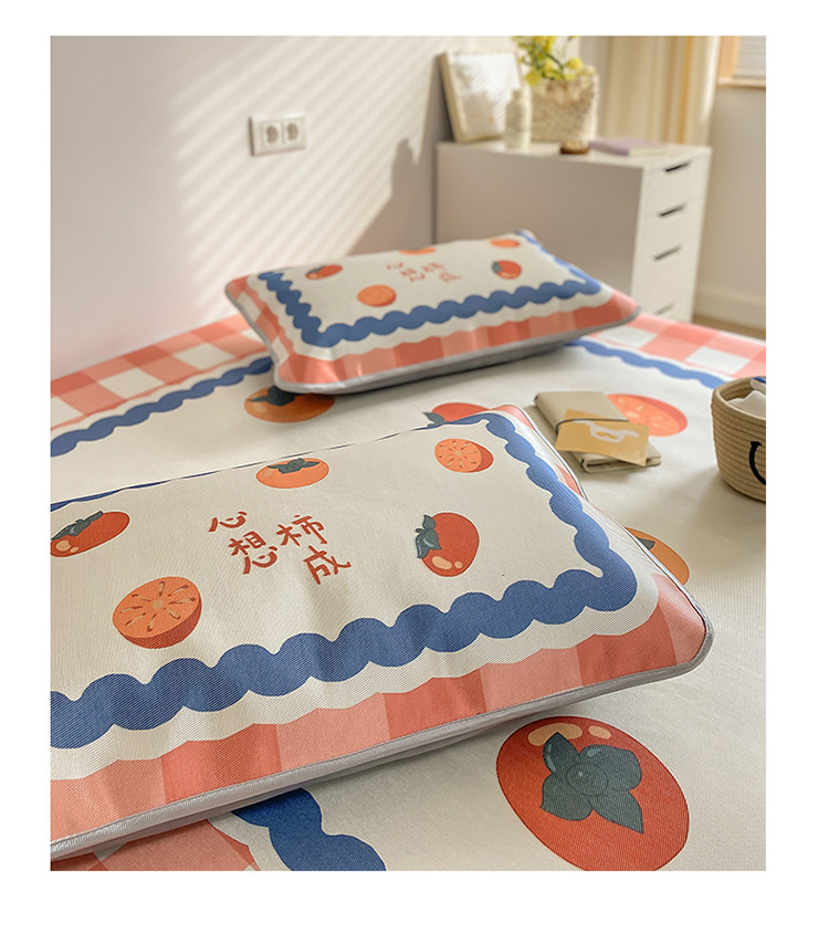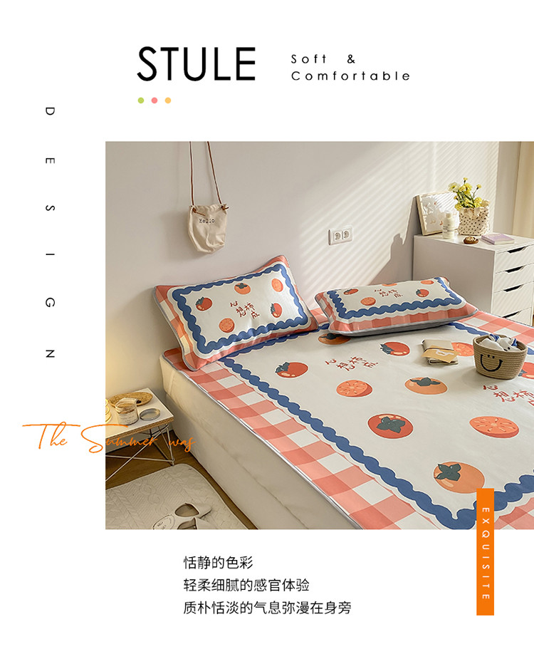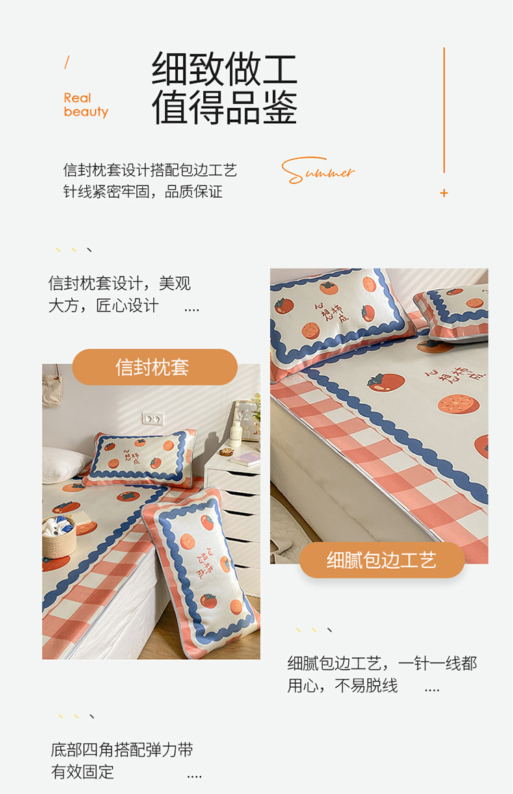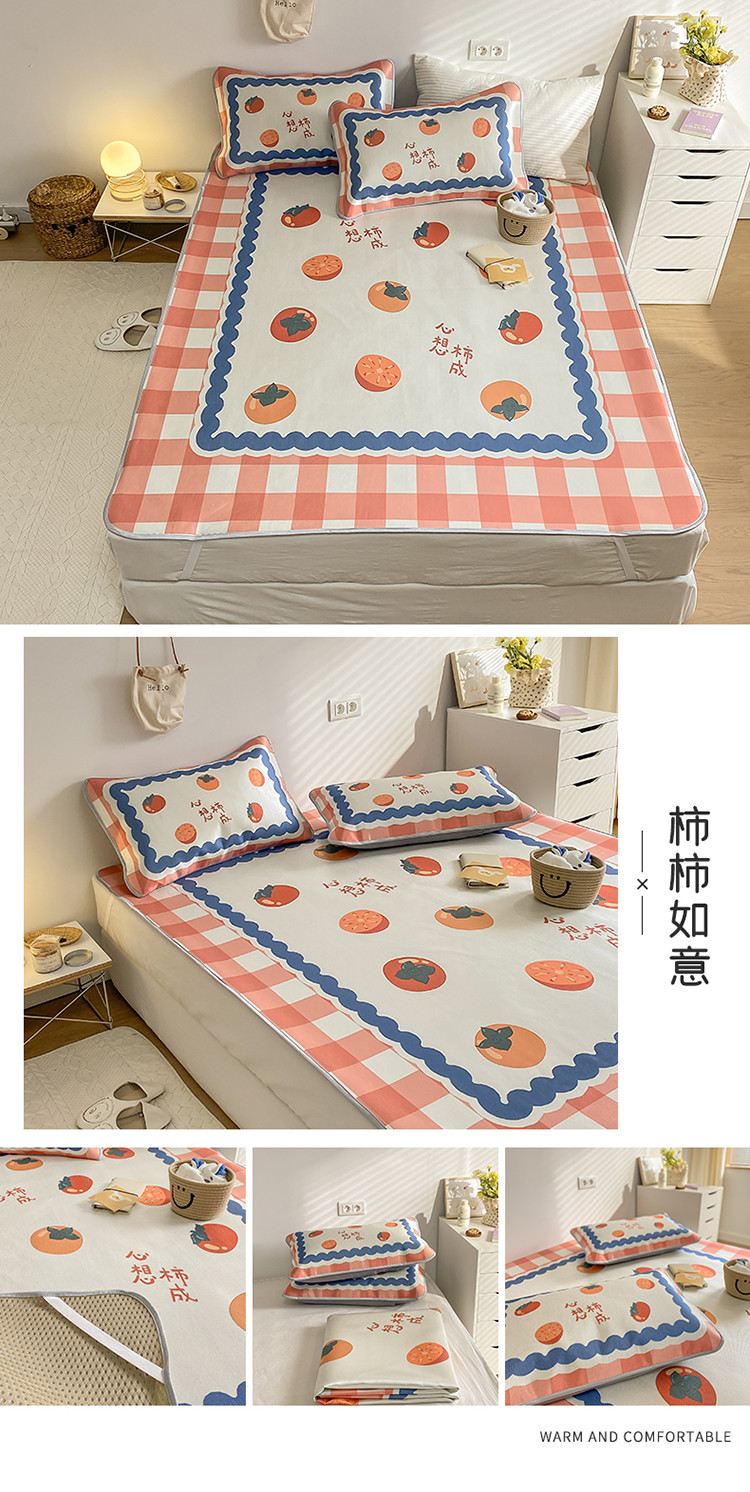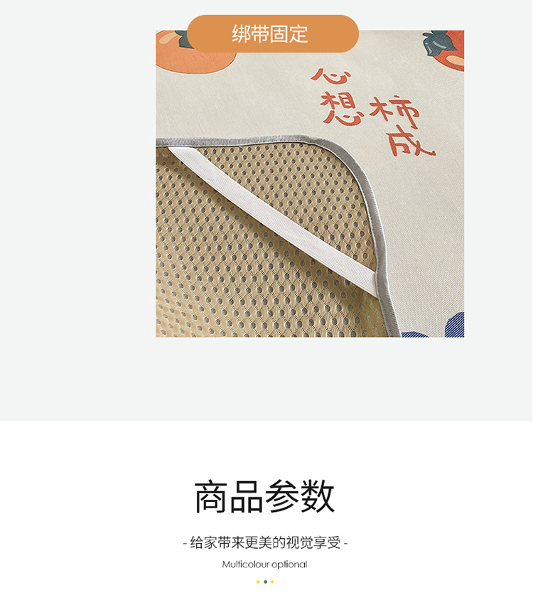 商品名称:雅居纺家纺 2022新款大版800D印花冰丝席 柿柿如意