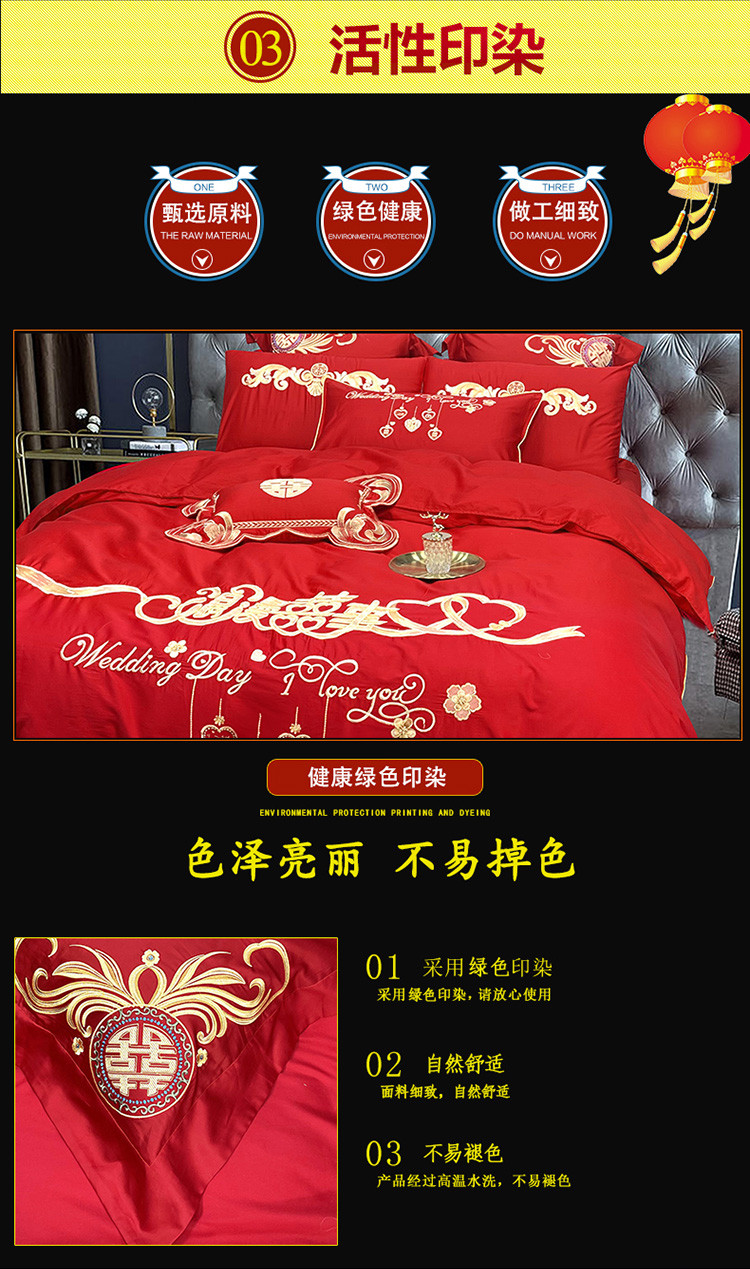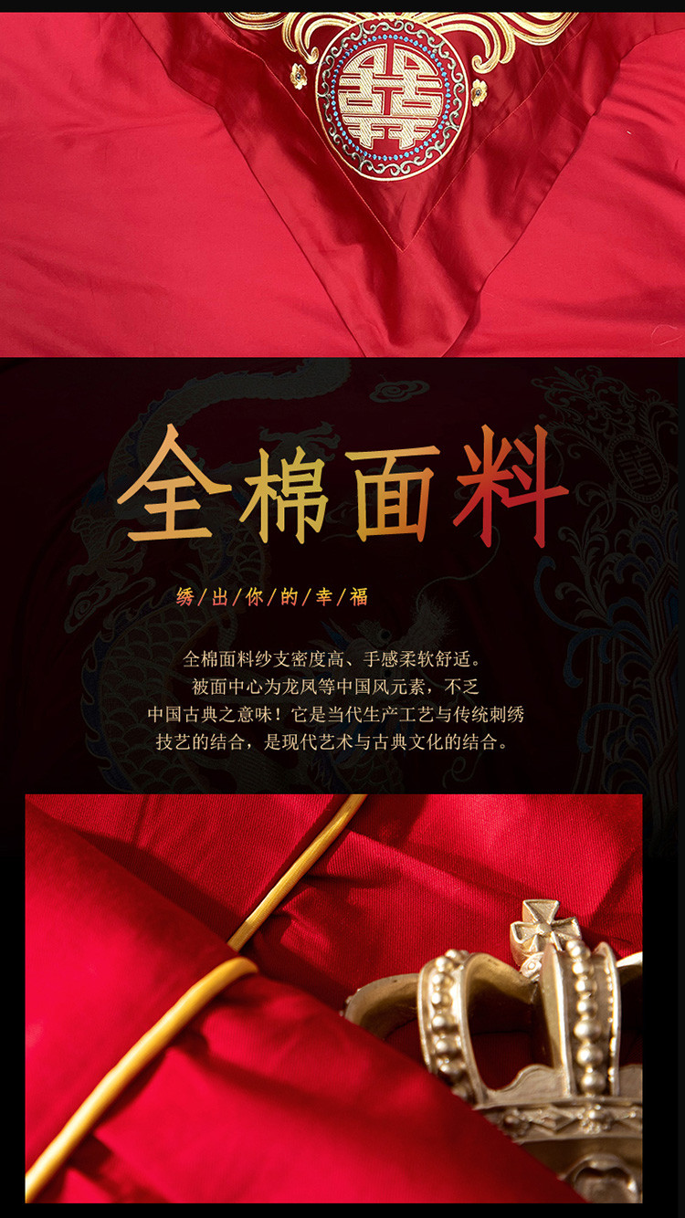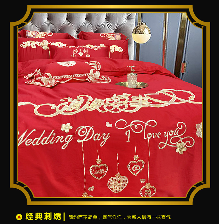 当前位置: 91家纺网 > 商品网购 > 床品套件 > 四件套 > 长绒棉四件套 > 慕她 婚庆四件套大红色60支长绒棉结婚全棉纯棉多件套浪漫喜事