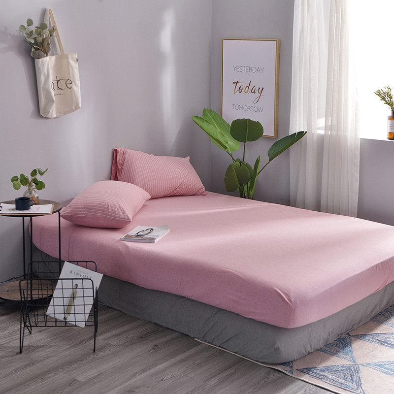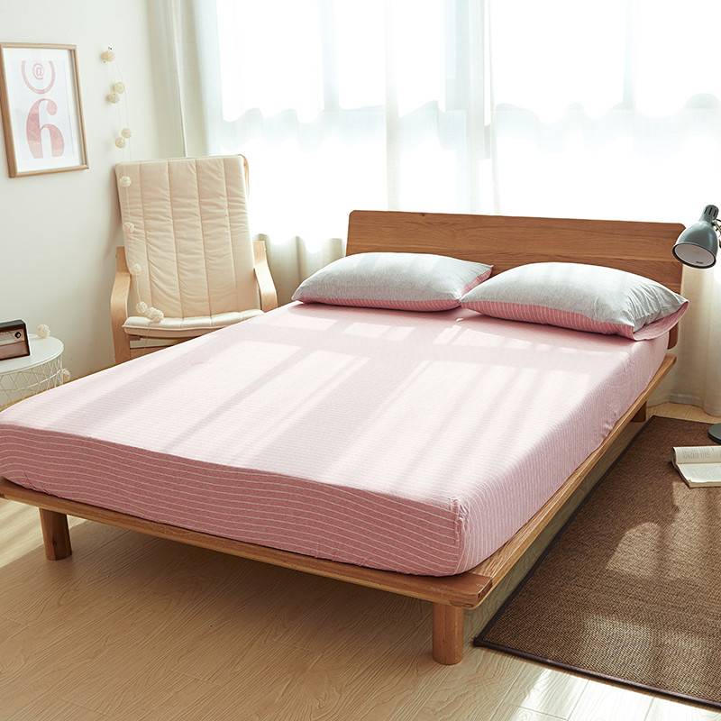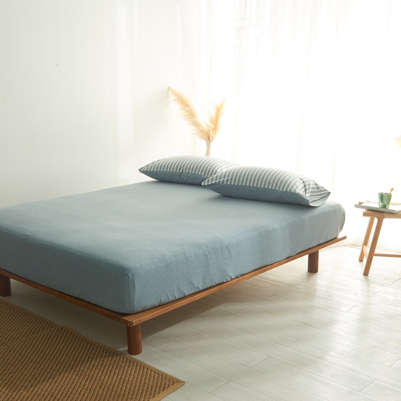 (总)简煦2025新款全棉色纺针织棉条纹纯色四件套系列2单床笠