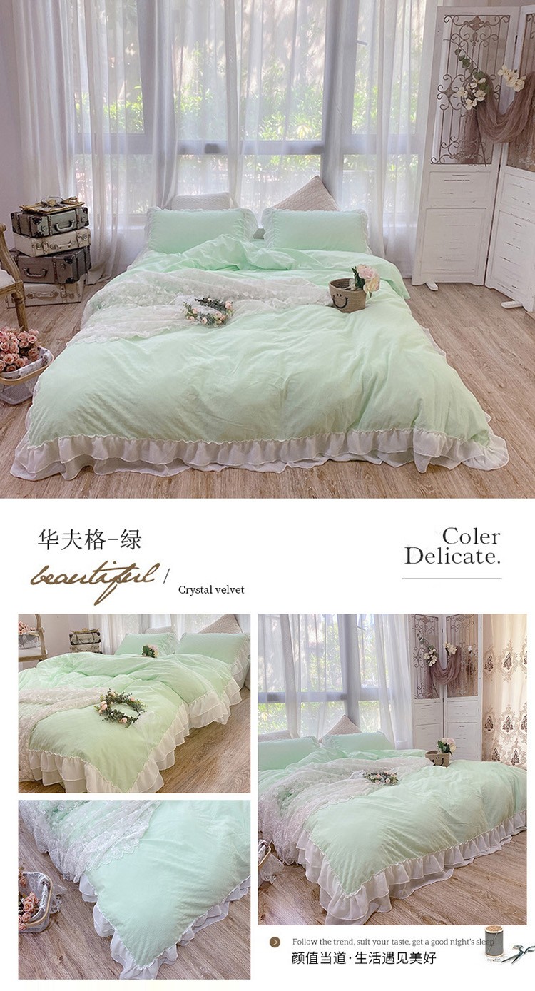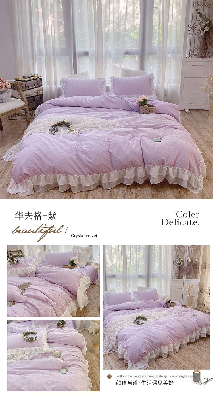 (总)玛奇朵 2025新款韩系少女全棉立体提花四件套-,青纱粉黛