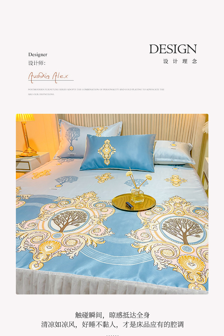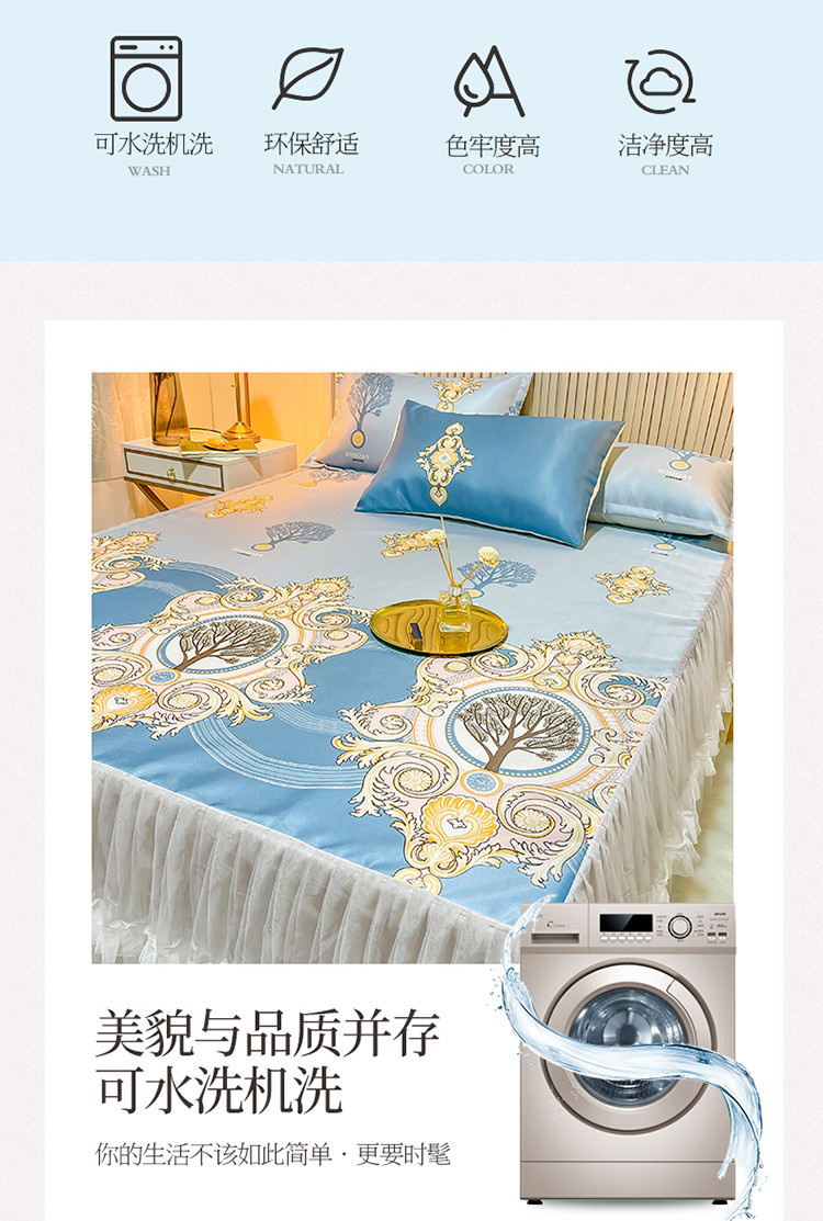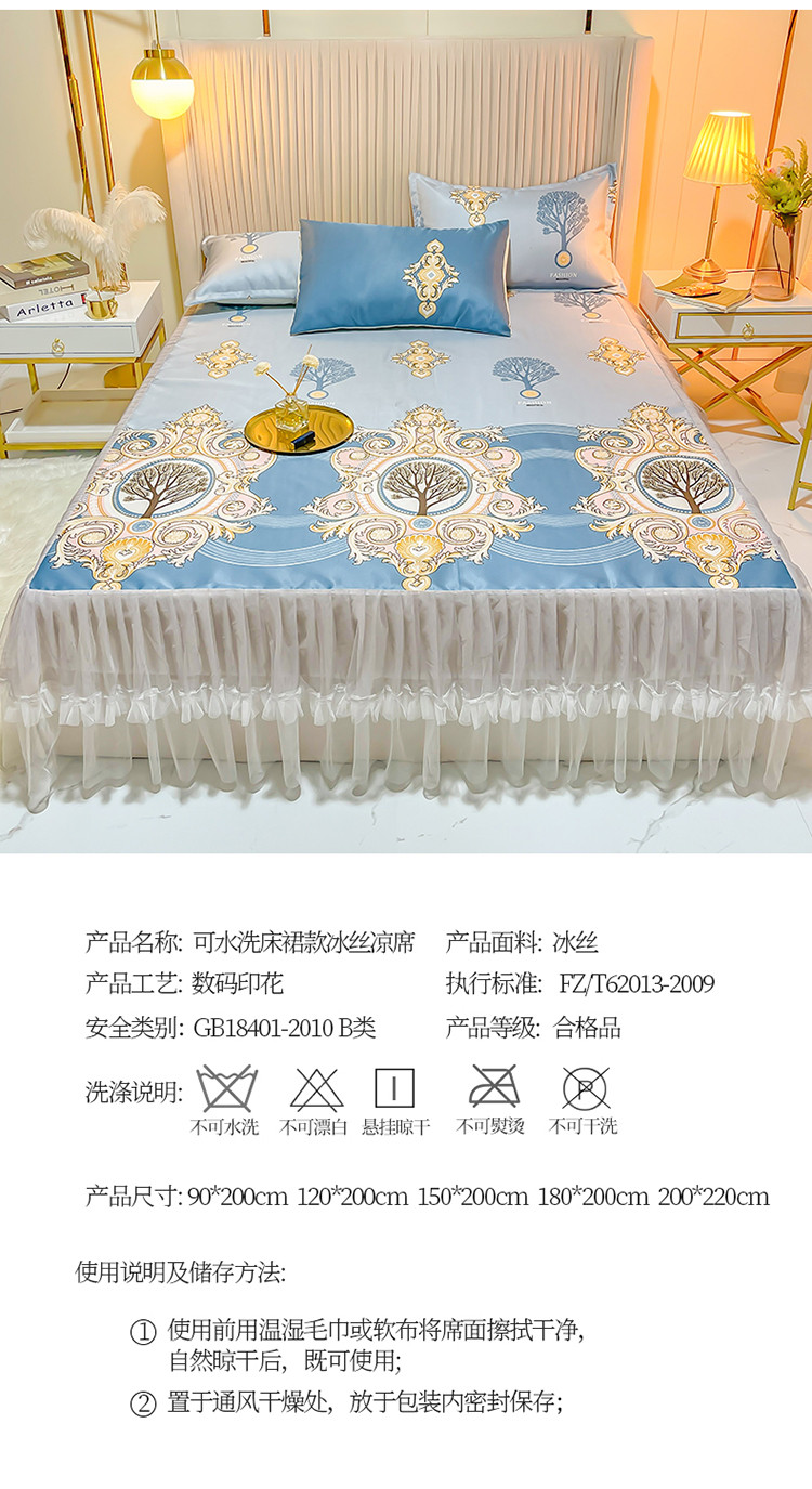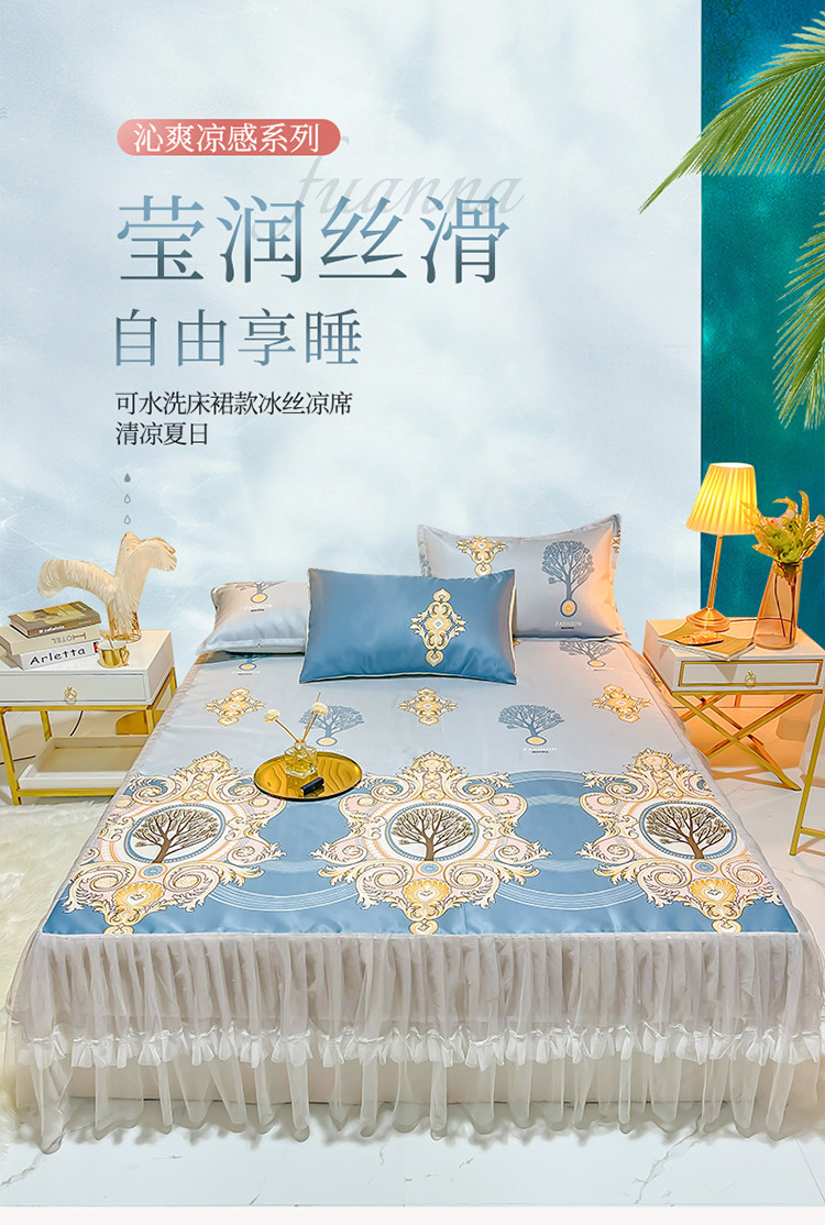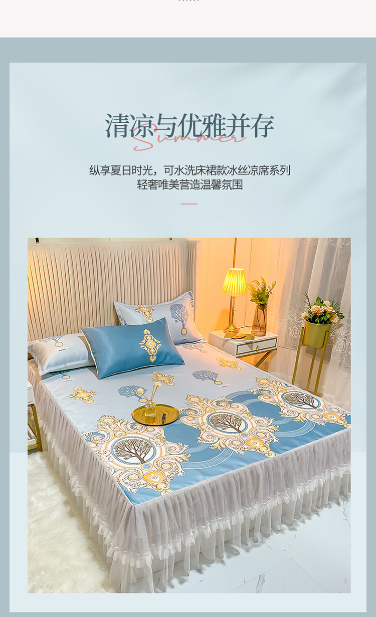 ds生活馆 凉席冰丝席可水洗冰丝席床裙款冰丝席三件套 慕南枝想
