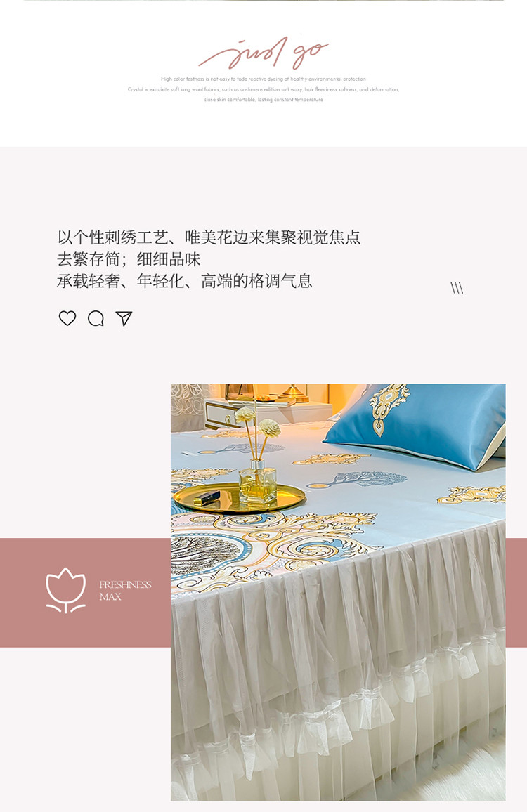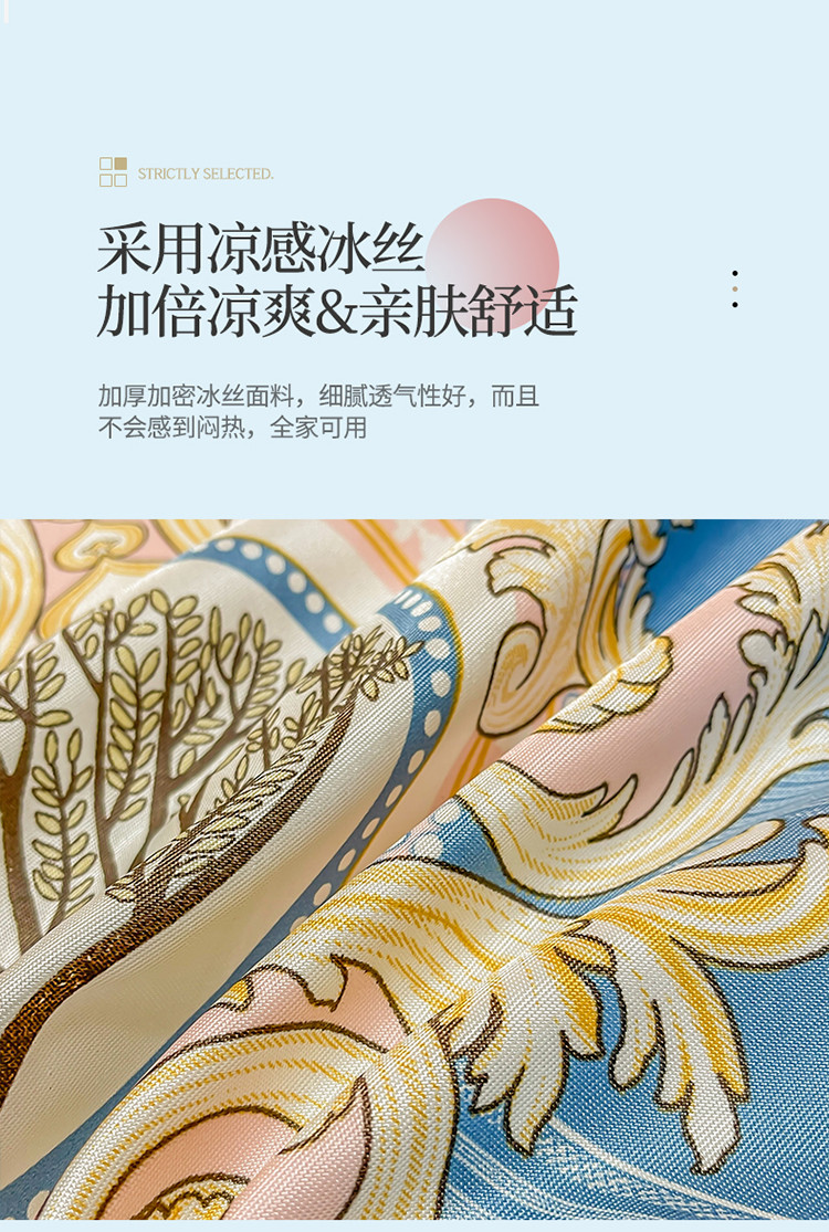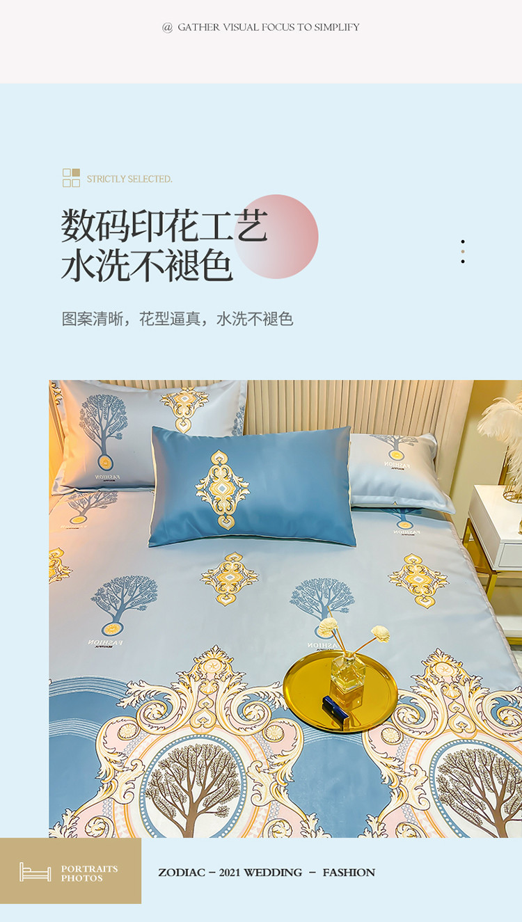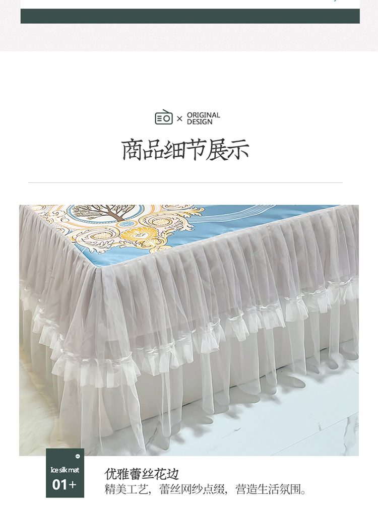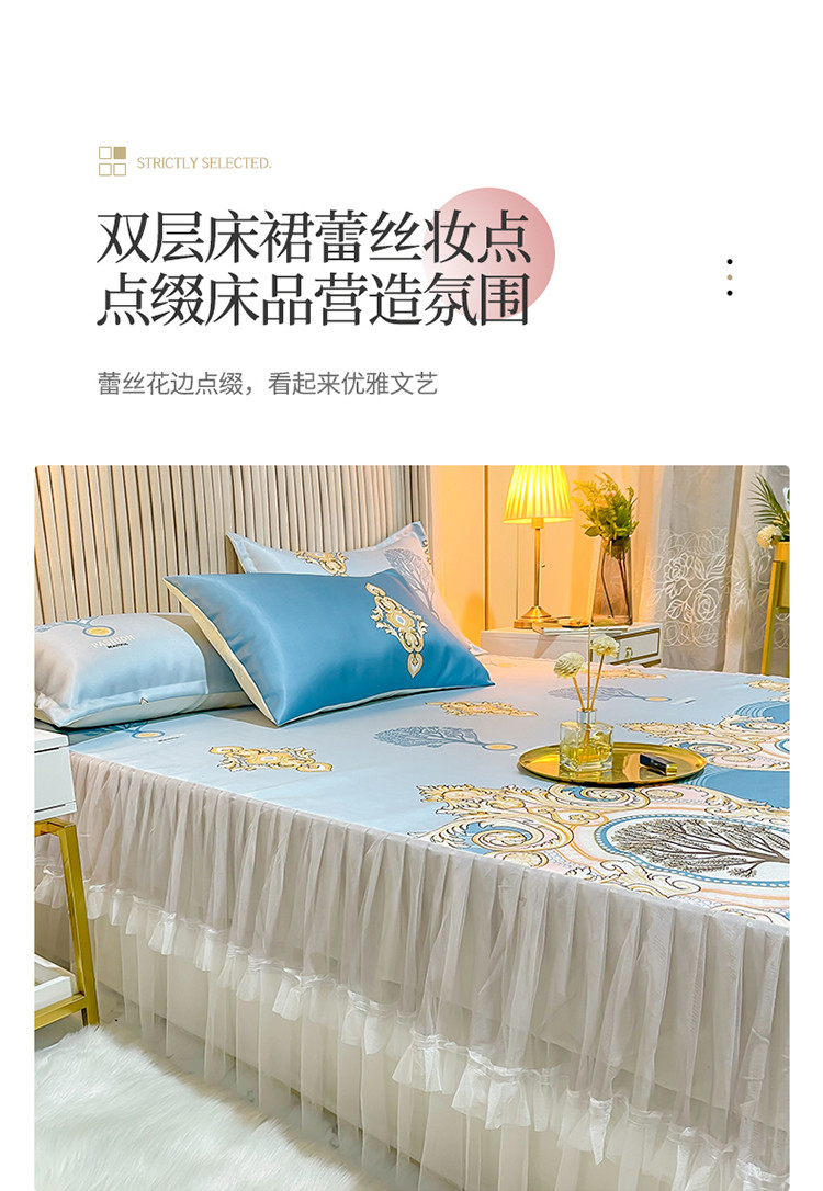 ds生活馆 凉席冰丝席可水洗冰丝席床裙款冰丝席三件套 慕南枝想