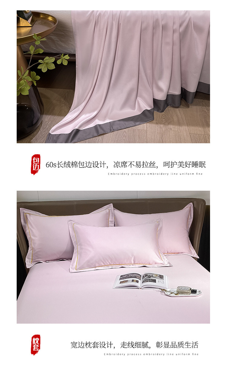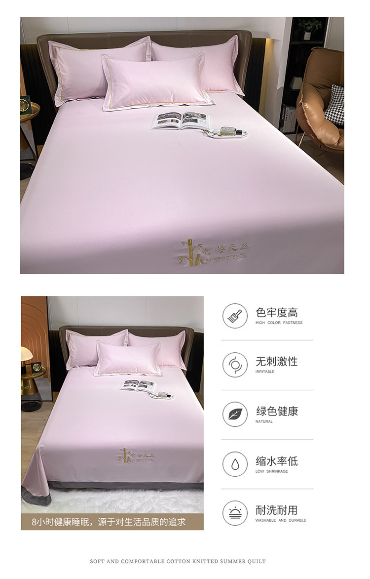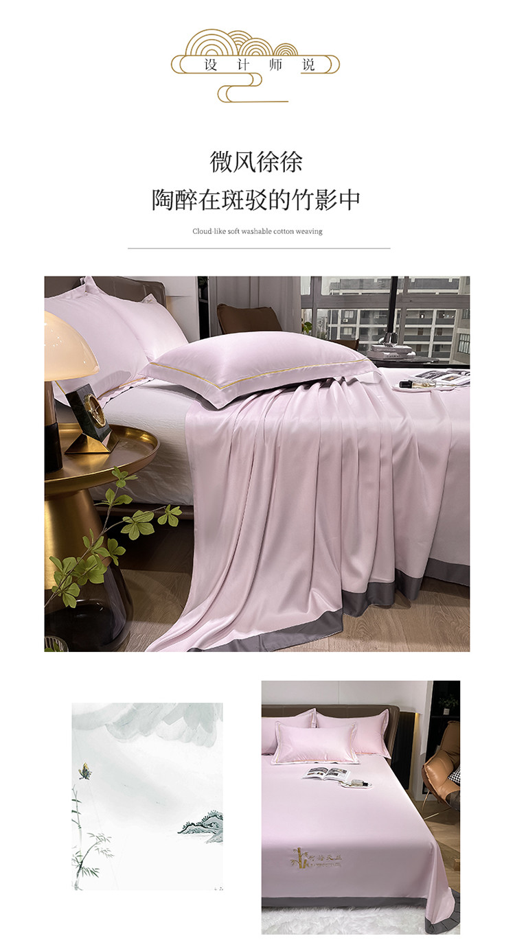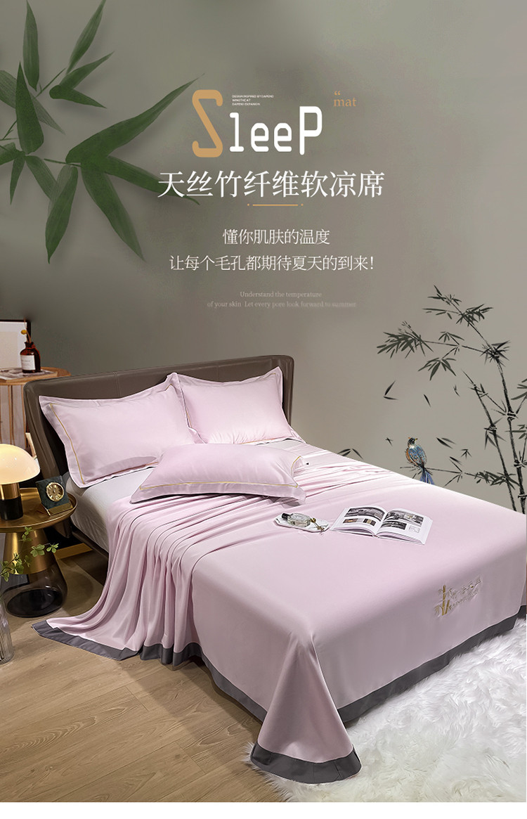眠帛家居 2021新款刺绣竹语天丝凉席三件套 刺绣粉