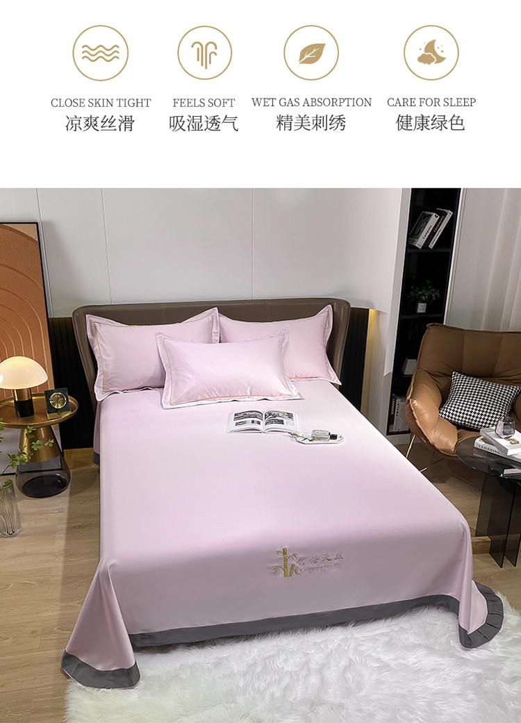 总眠帛家居2022新品60支兰精天丝气质轻奢绣花四件套-盛夏,盛夏-粉,盛夏-蓝,盛夏-绿
