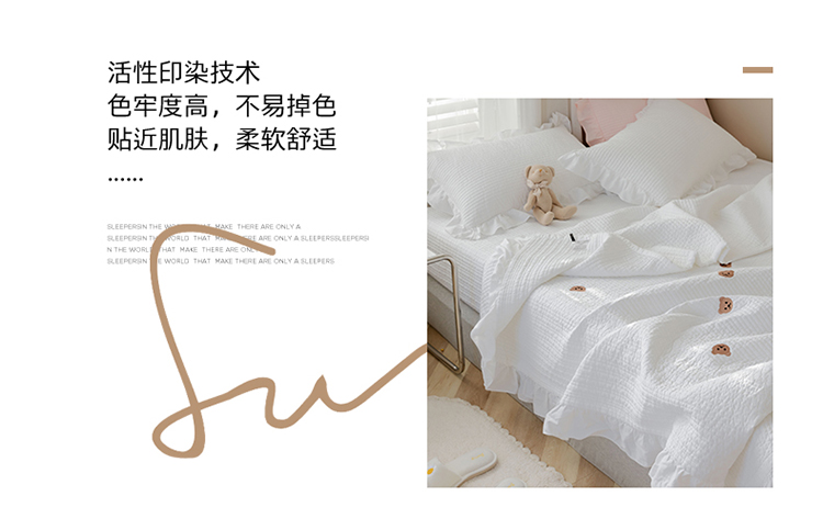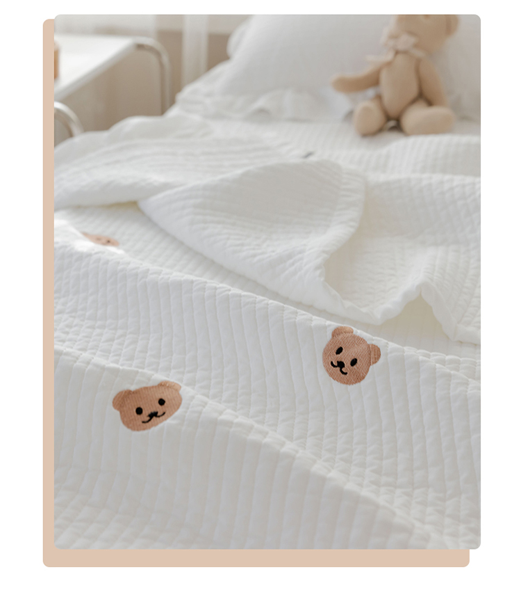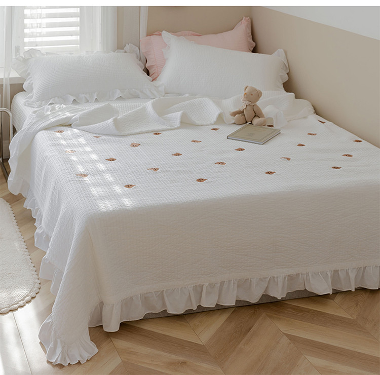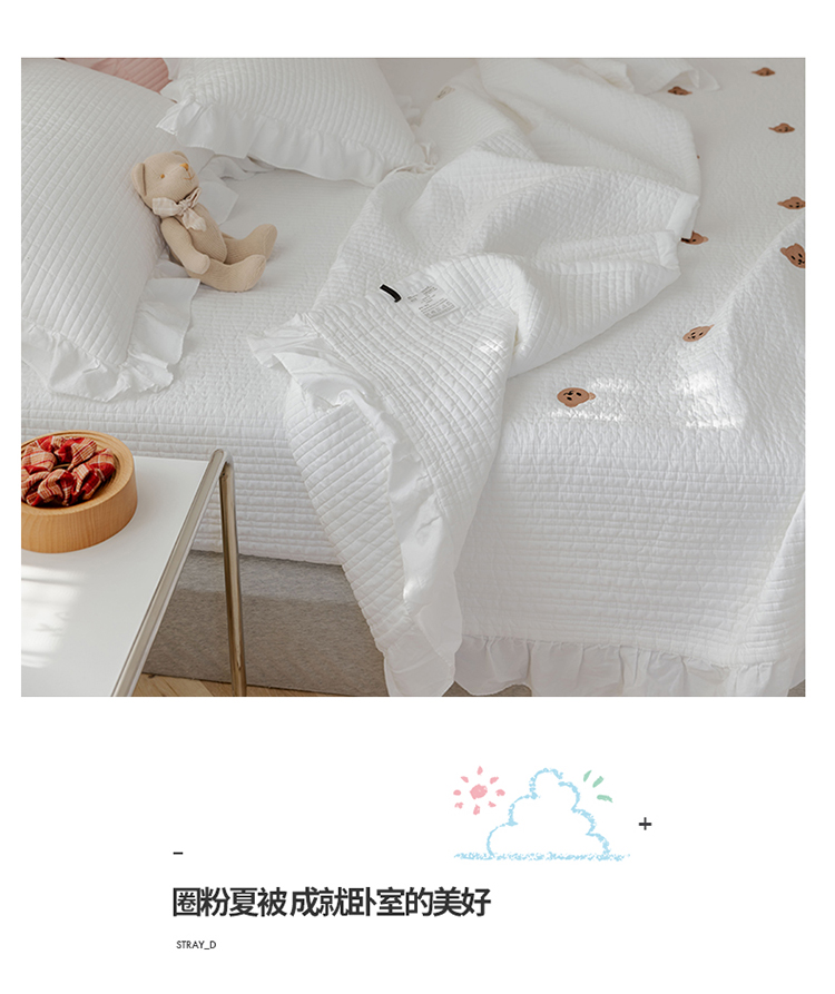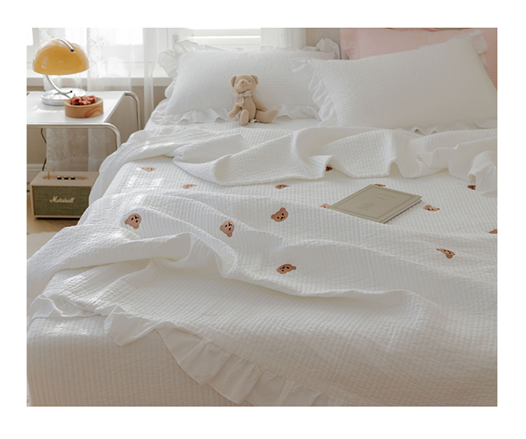 漫调 2021新款全棉水洗刺绣床盖三件套实拍 小熊白