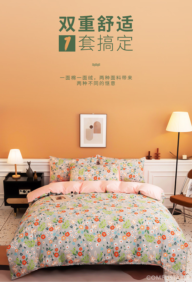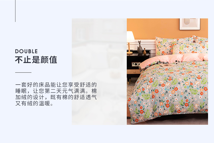 当前位置: 91家纺网 > 商品网购 > 床品套件 > 四件套 > 全棉普通四件套 > 芃成家纺 2021新款棉加绒四件套 复古甜心