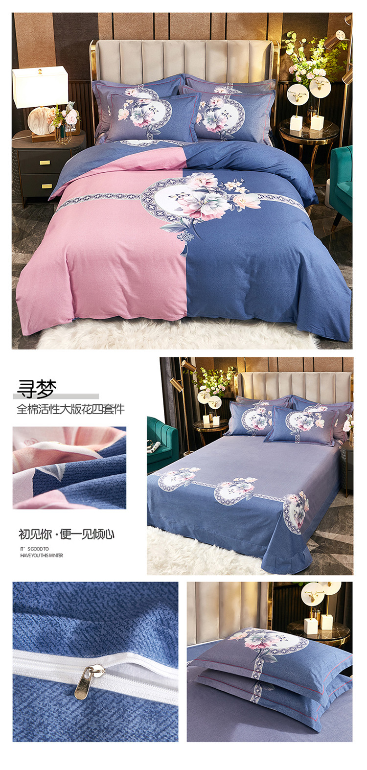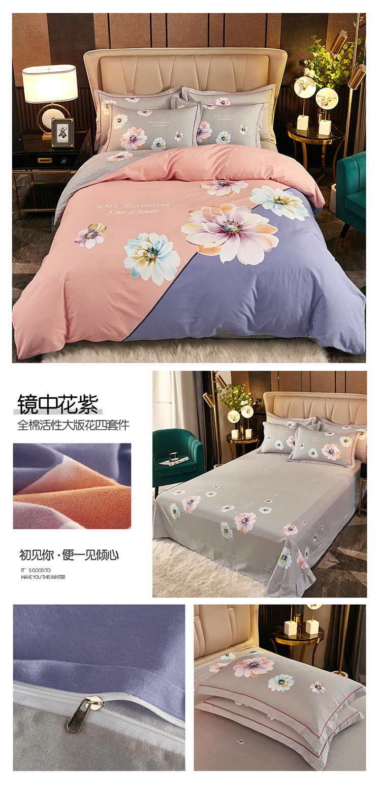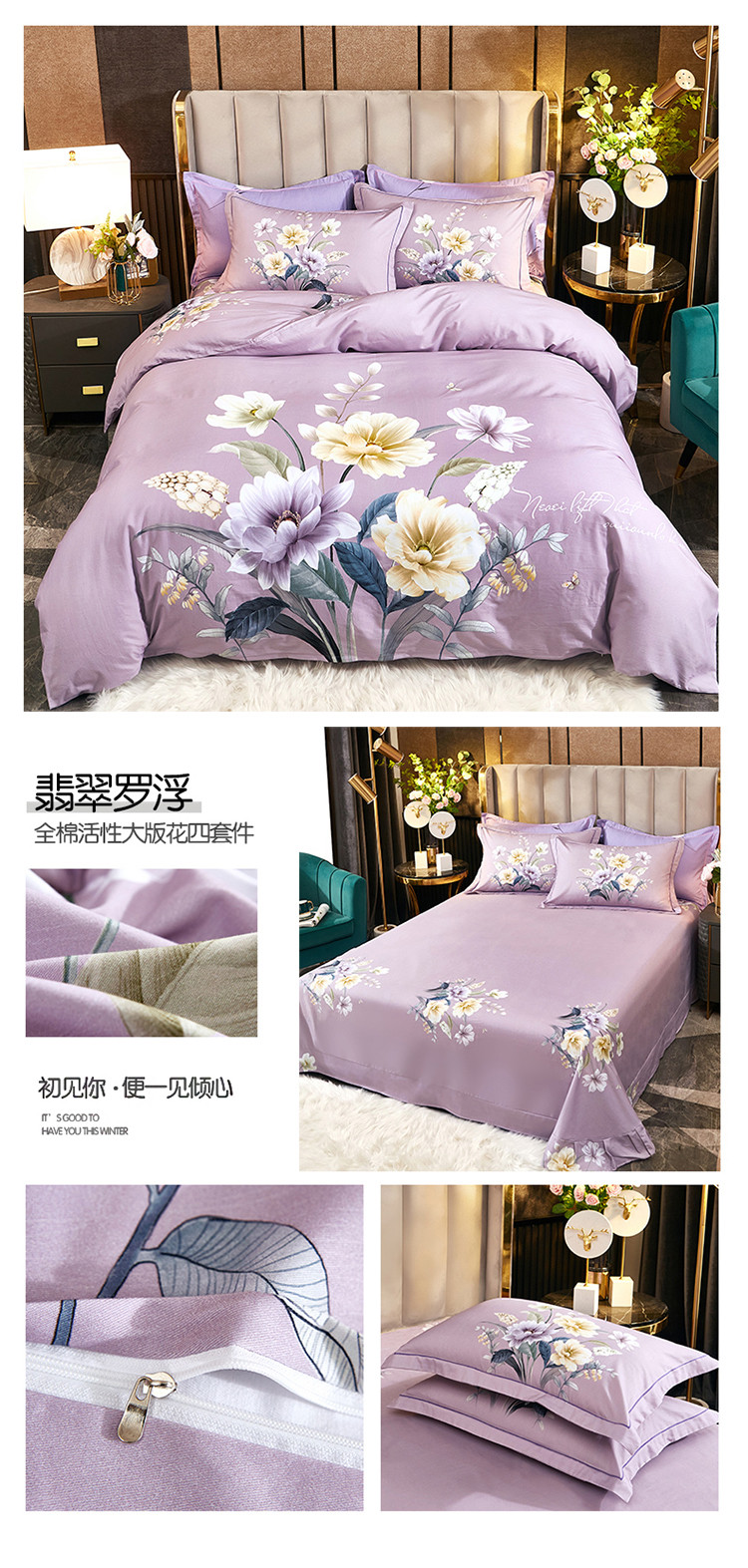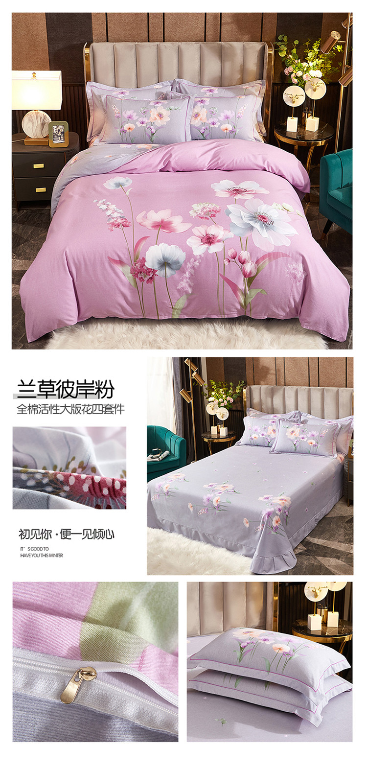 (总1)雲归梦2021全棉大版生态磨毛四件套花卉花型第1批