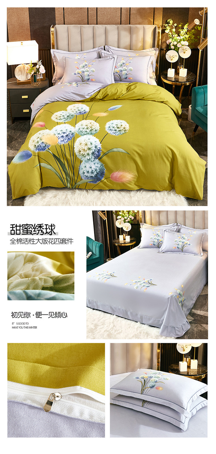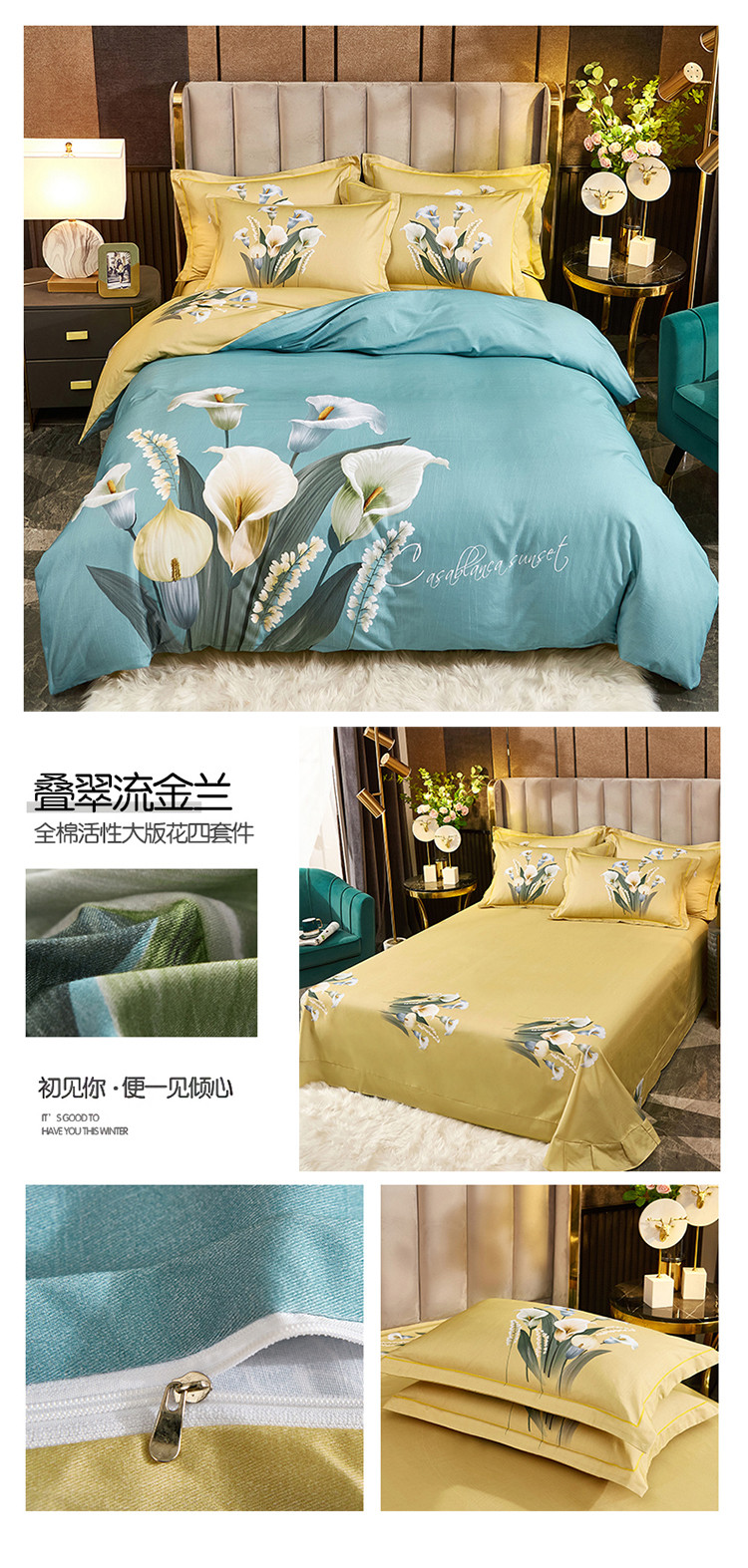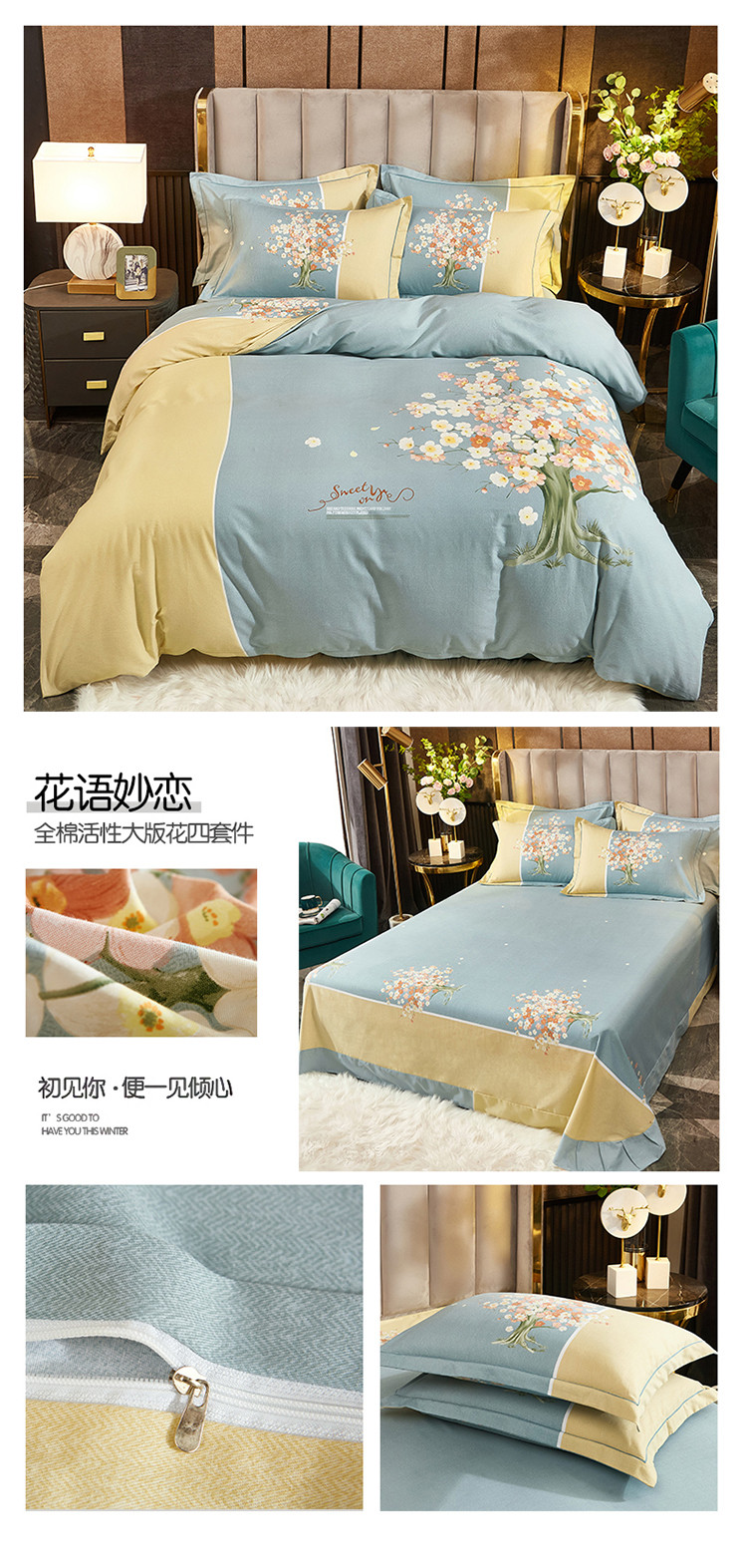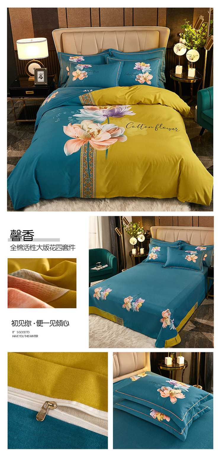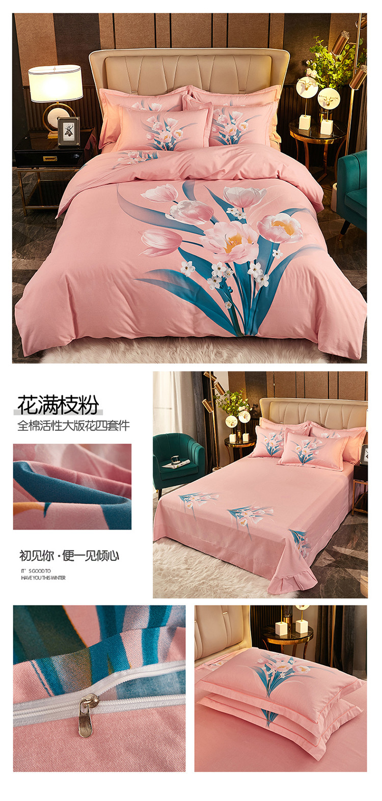 (总1)雲归梦2021全棉大版生态磨毛四件套花卉花型第1批