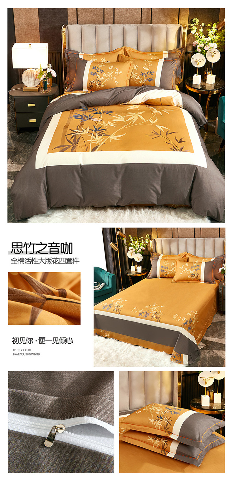 (总)雲归梦 2021新款全棉生态磨毛刺绣四件套,慕思-橙色,慕思-粉紫,慕思-灰,慕思-米黄,慕思-青绿,慕思-天蓝