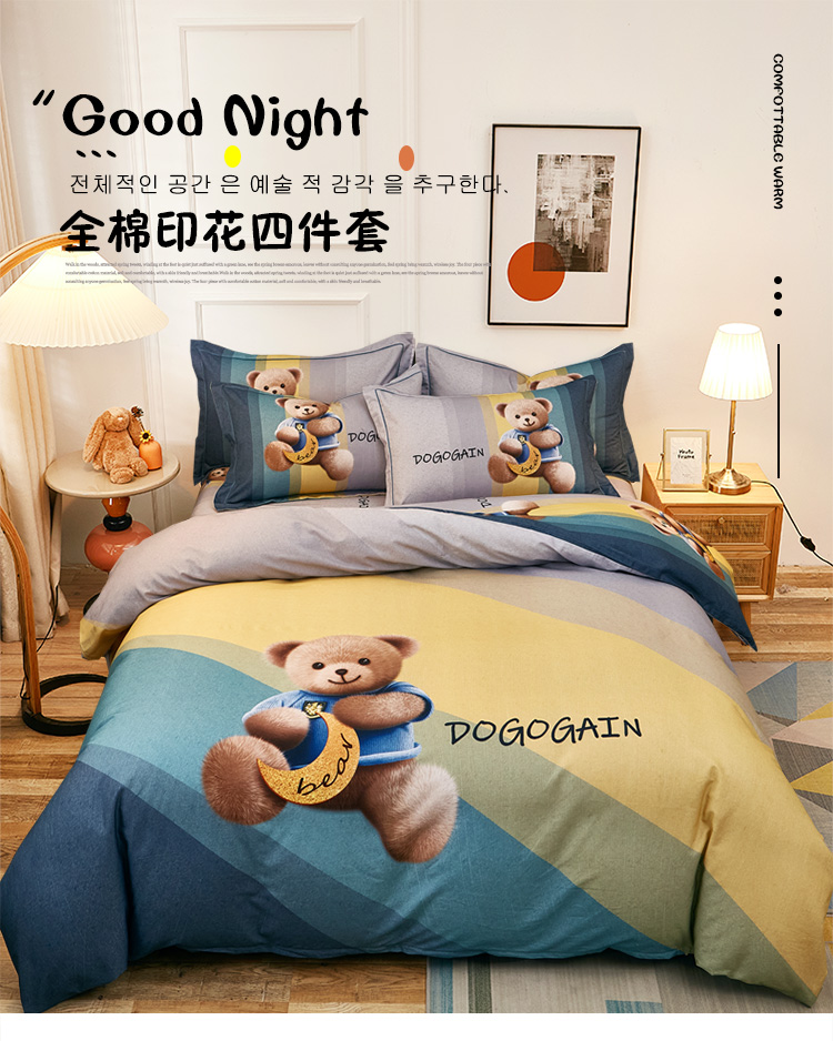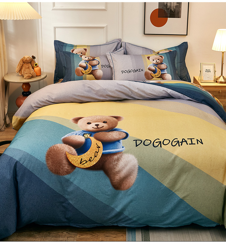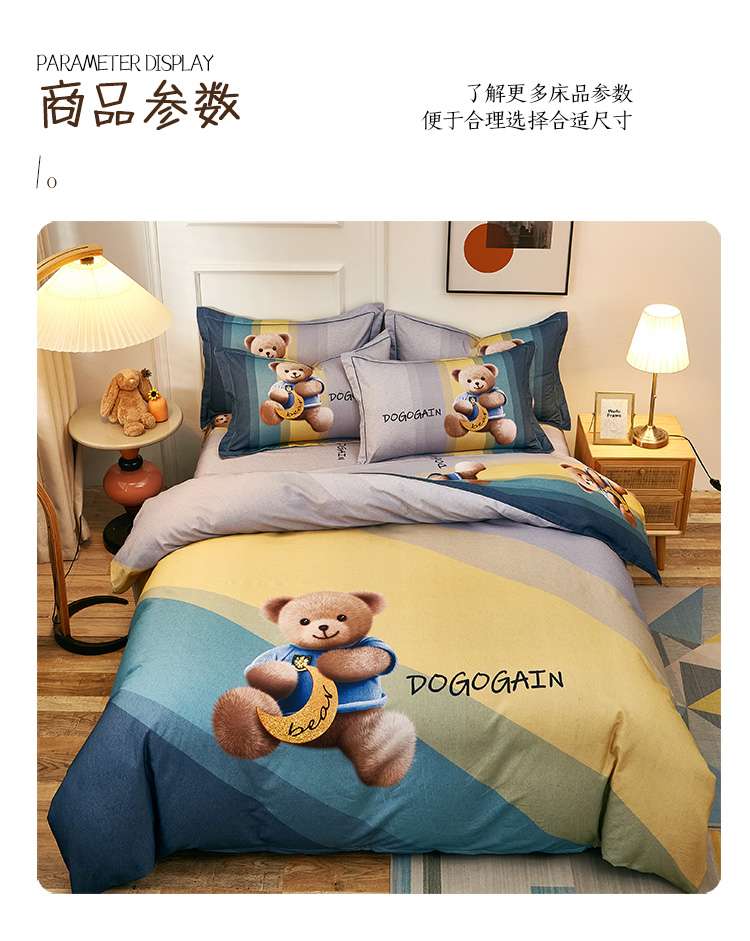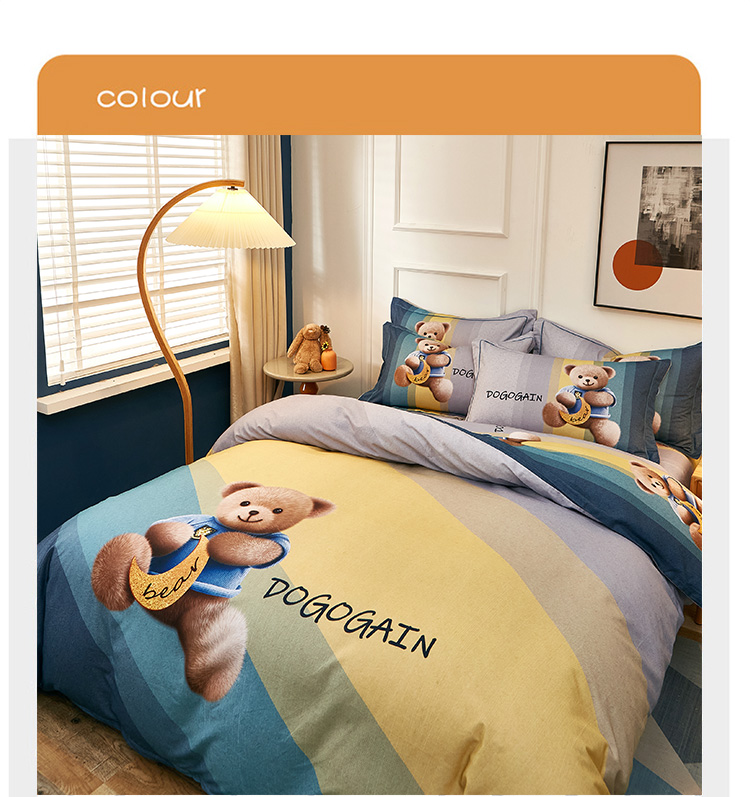 (总)雲归梦2022年新款加厚全棉大版四件套第二批-格条卡通,艾洛依-咖,巴特罗-粉,潮酷熊-咖,幻城-黄,几何空间-灰,杰罗-桔,卡尔玛-黄,兰卡斯-兰,茉伯妮-兰,莫妮卡-粉,趣萌熊-黄,森旅小鹿,天空之城,甜丫丫-桔,潮酷熊蓝