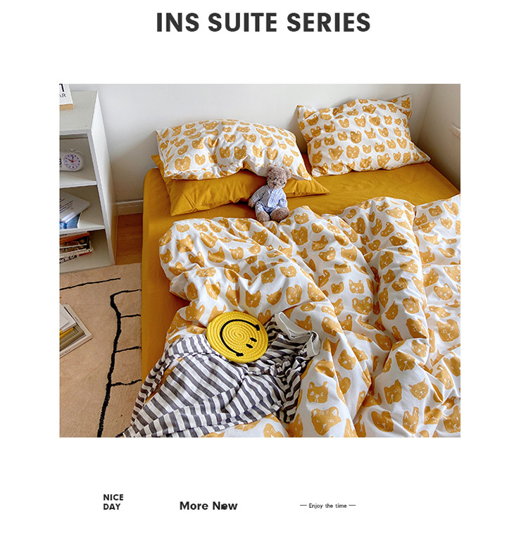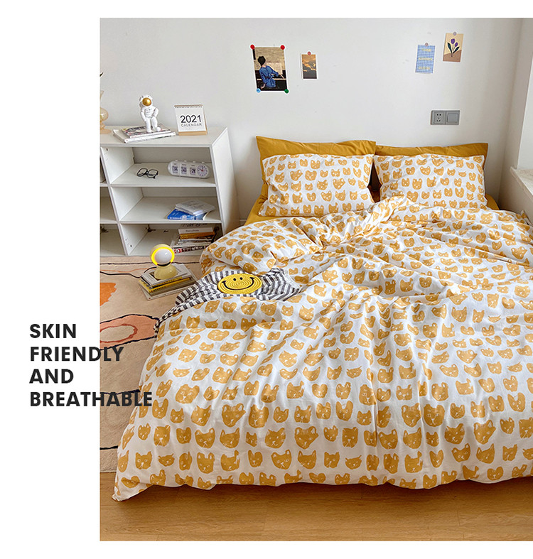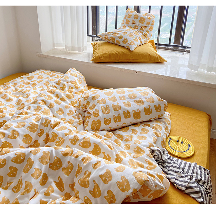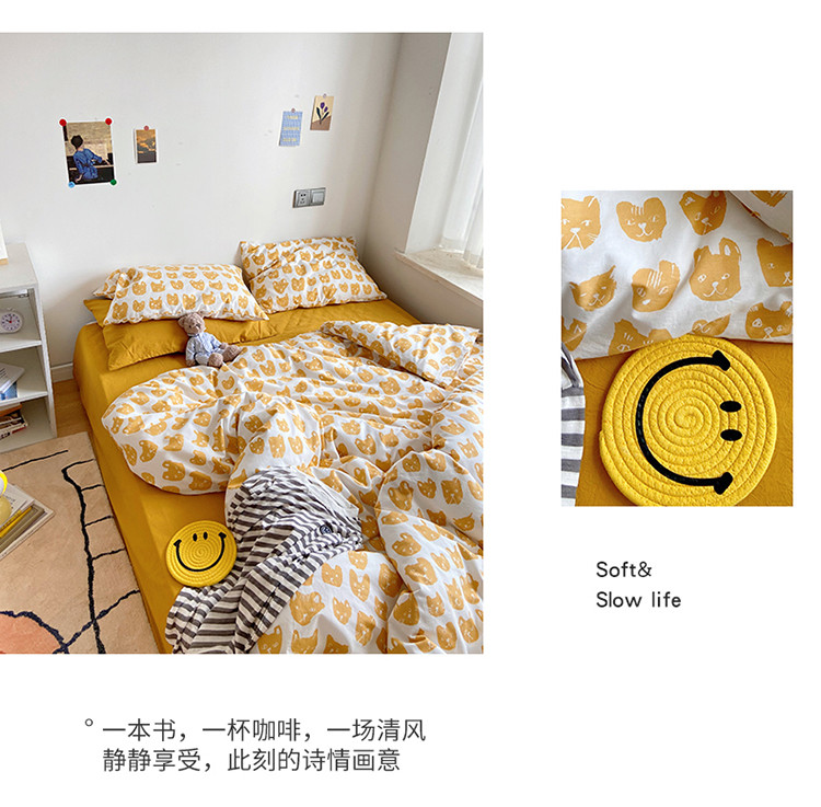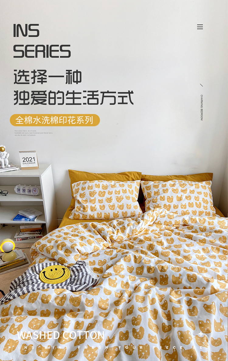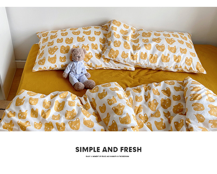 当前位置: 91家纺网 > 商品网购 > 床品套件 > 四件套 > 全棉普通四件套 > 尺素 纯棉ins印花水洗棉卡通可爱全棉被套纯色床单四件套 小猫咪