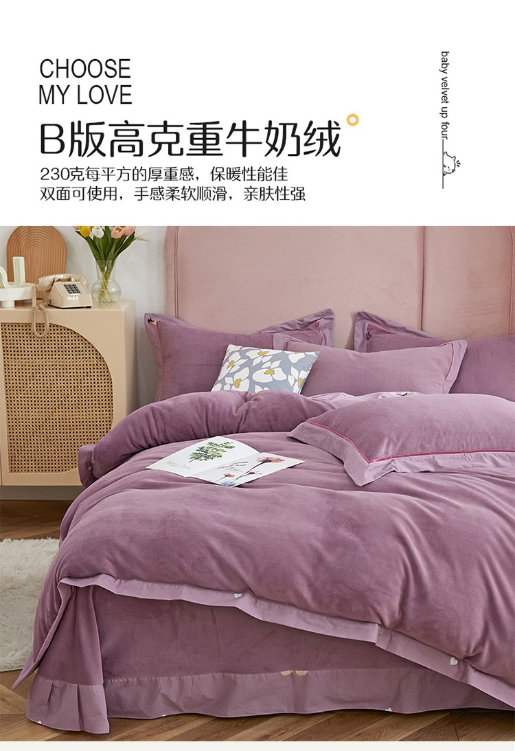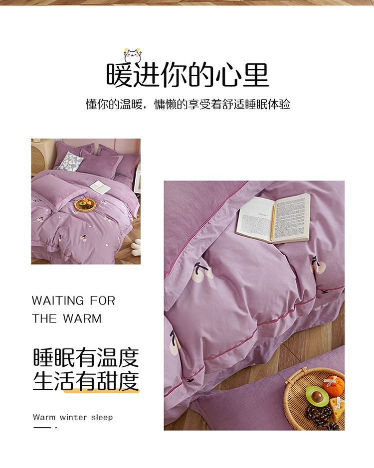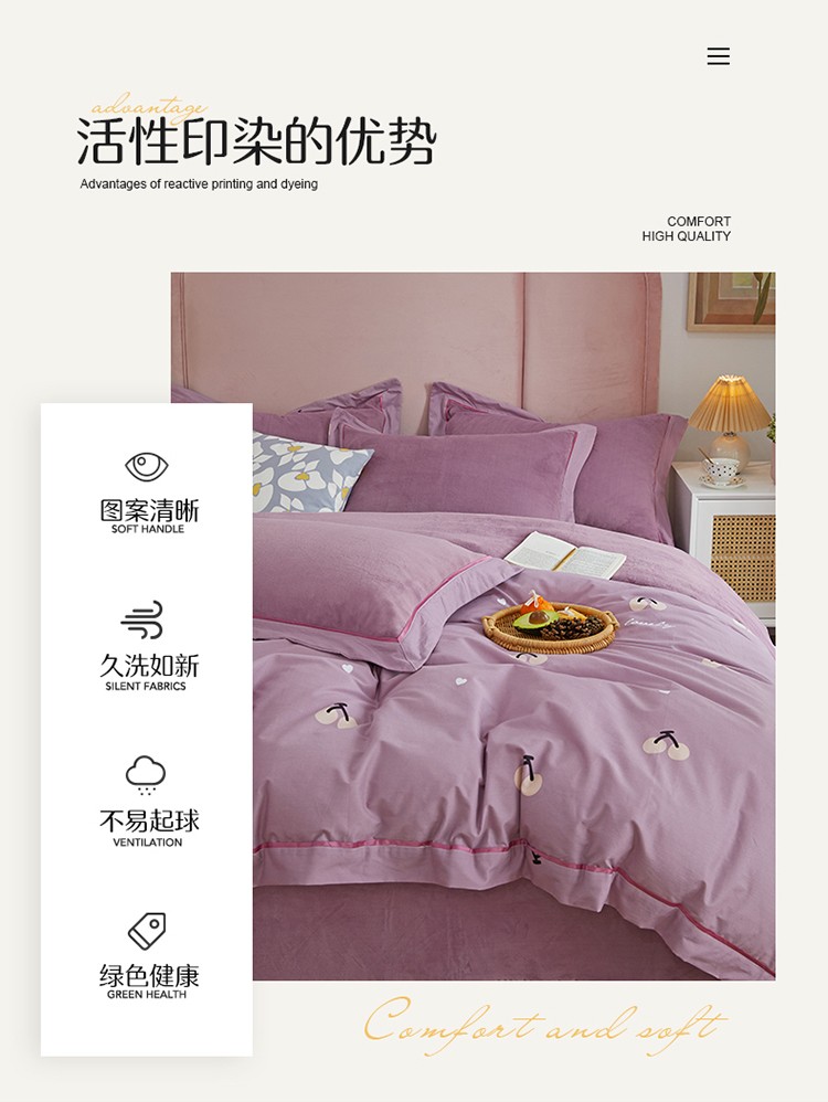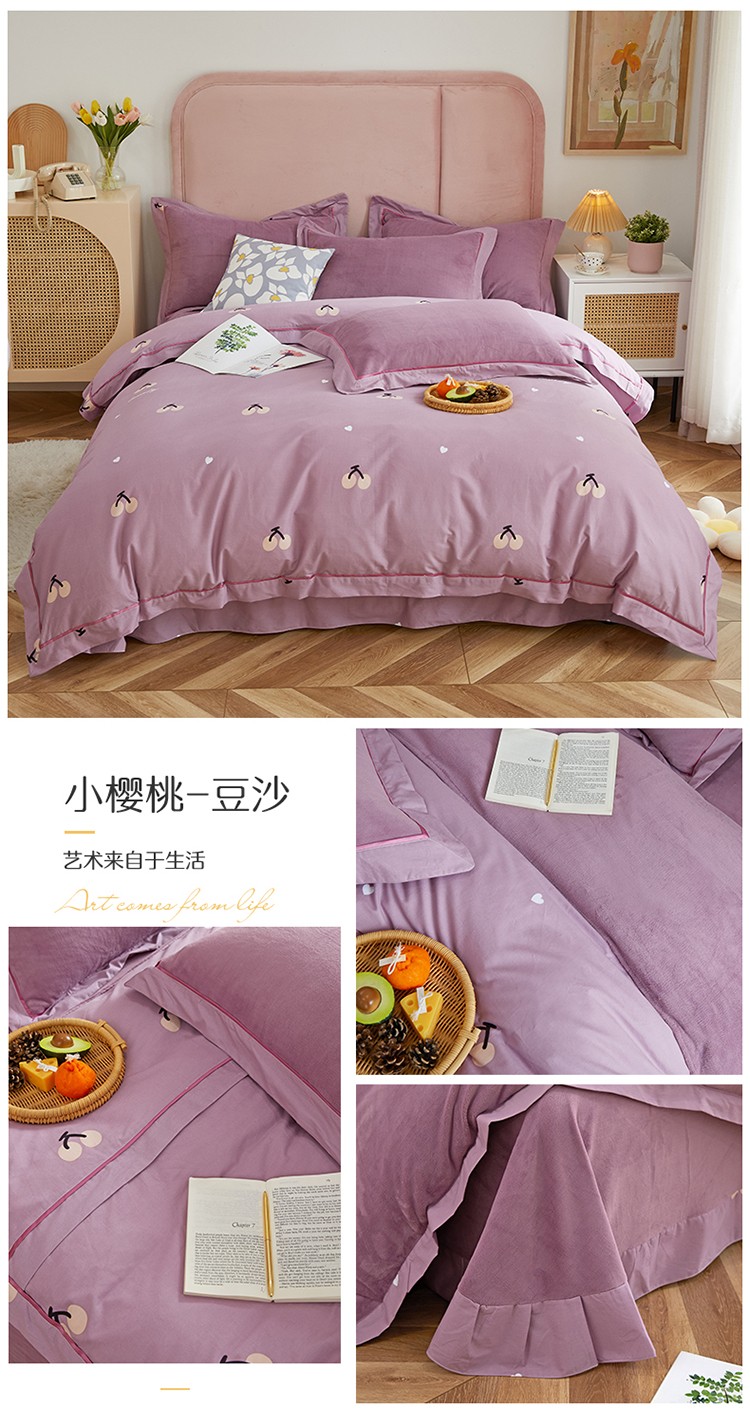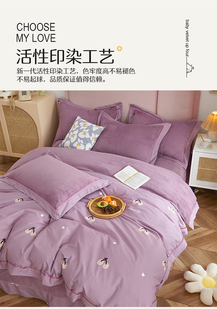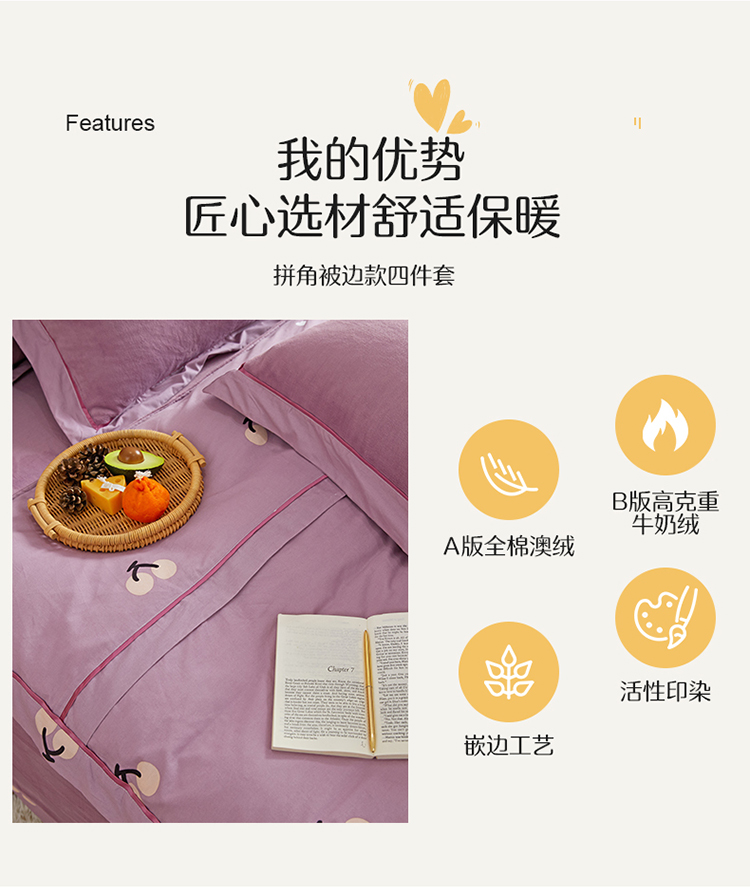 商品名称:杜先生 2021新款拼角被边款澳绒牛奶绒四件套 小樱桃-豆沙