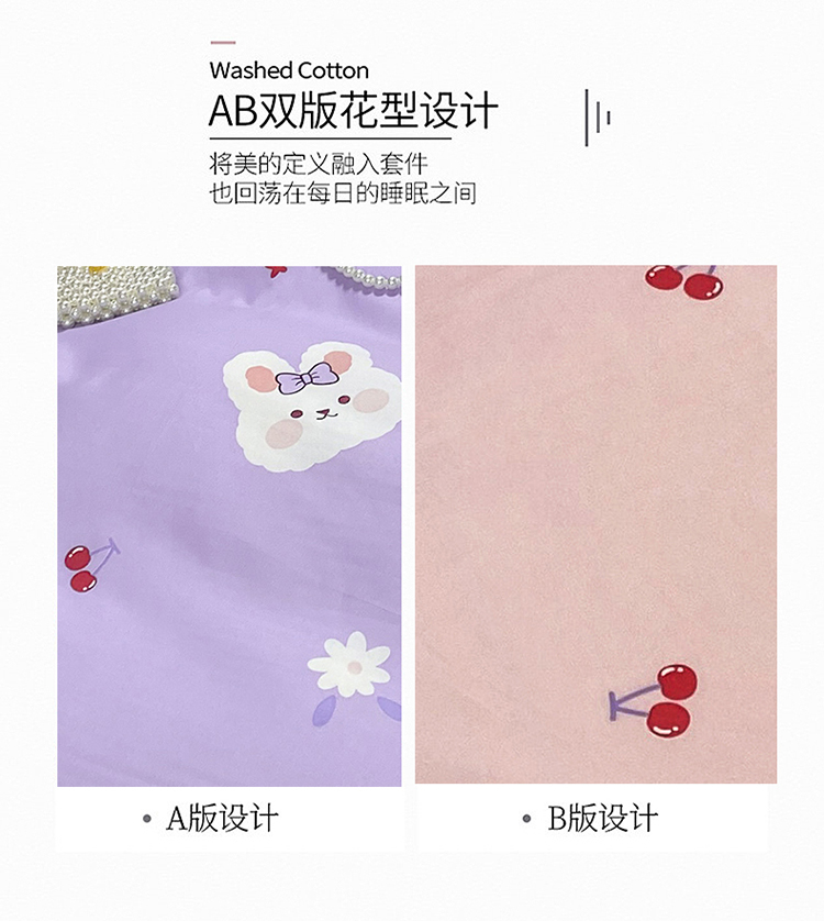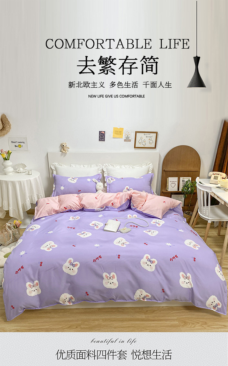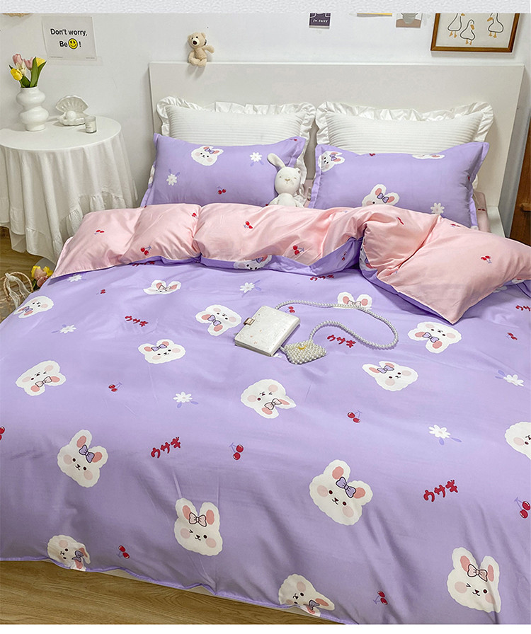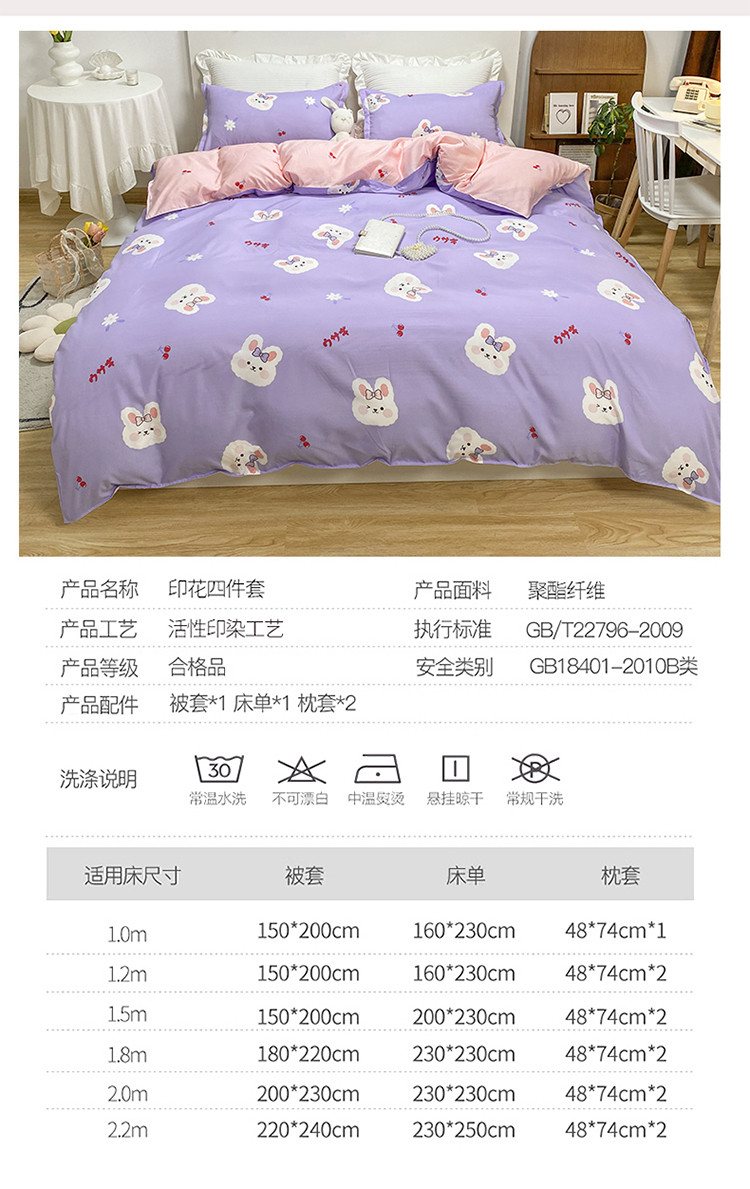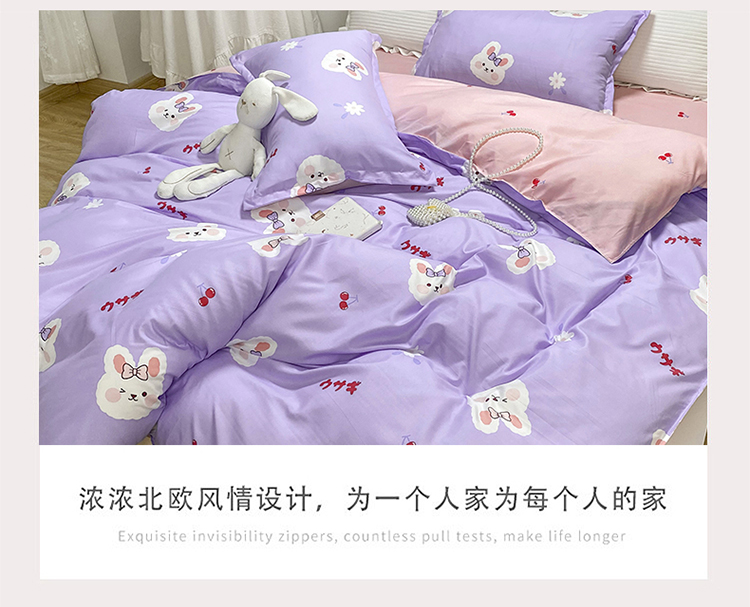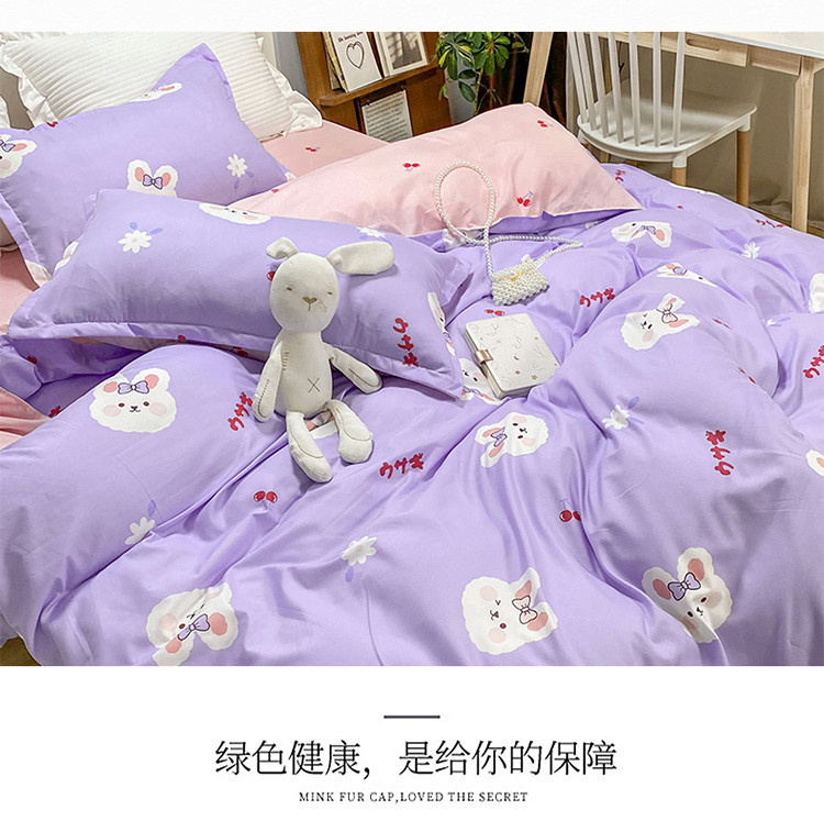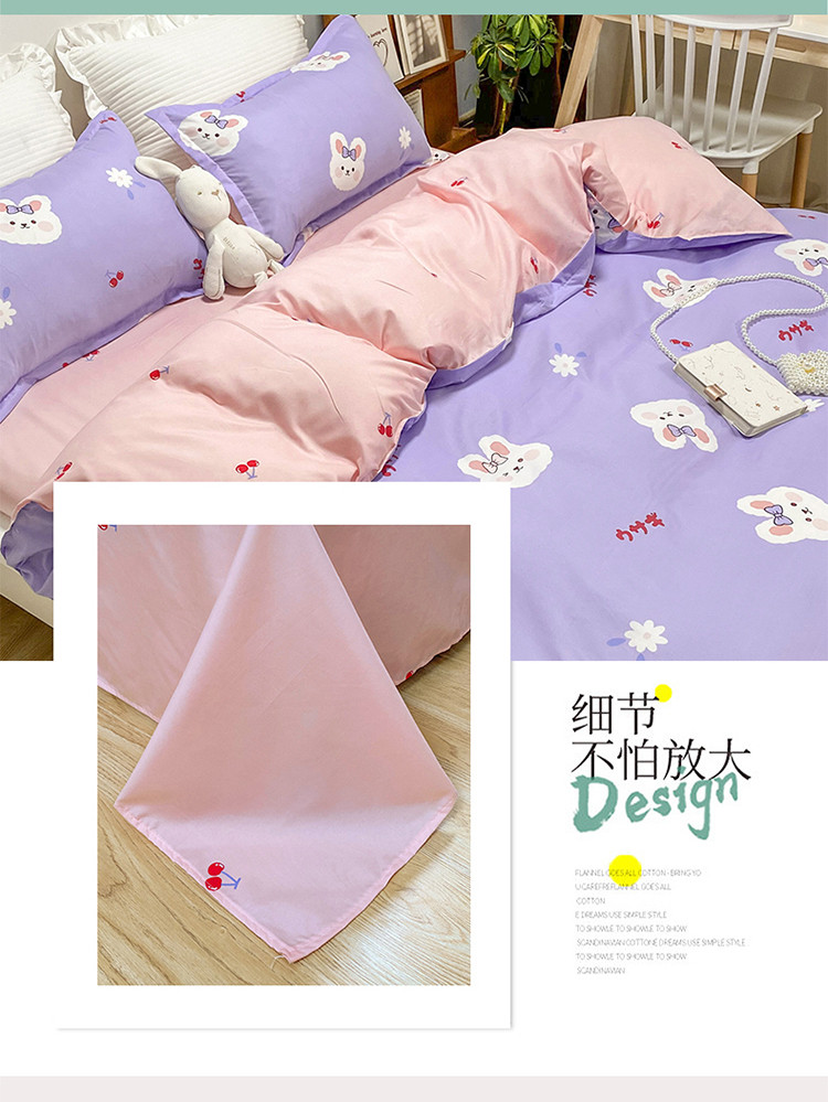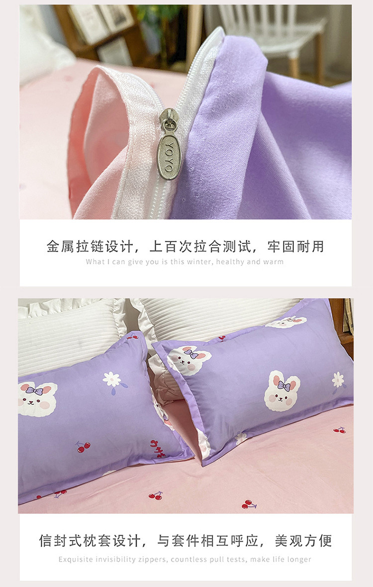 商品名称:妖妖家纺 2021新款芦荟棉印花四件套 樱桃小兔子