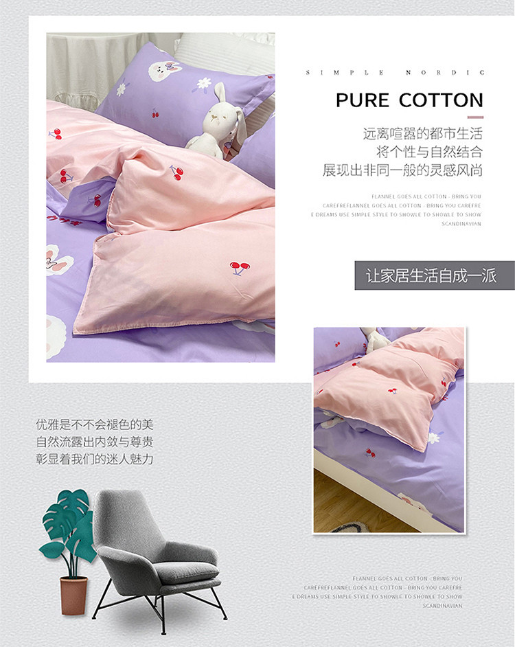 妖妖家纺 2021新款芦荟棉印花四件套 樱桃小兔子