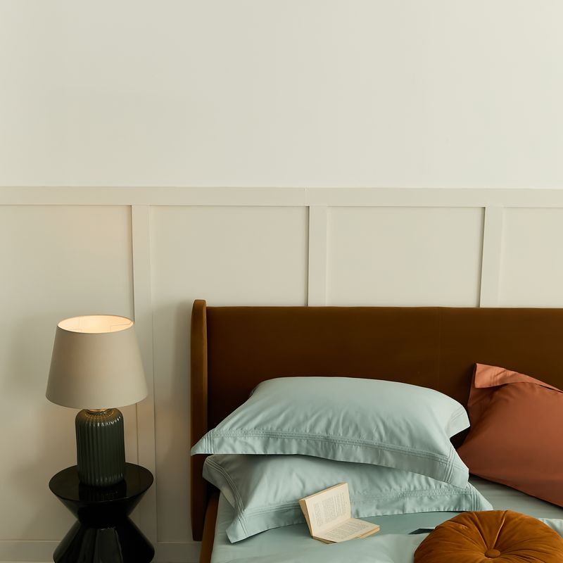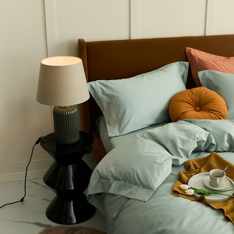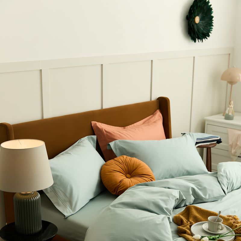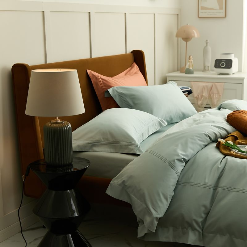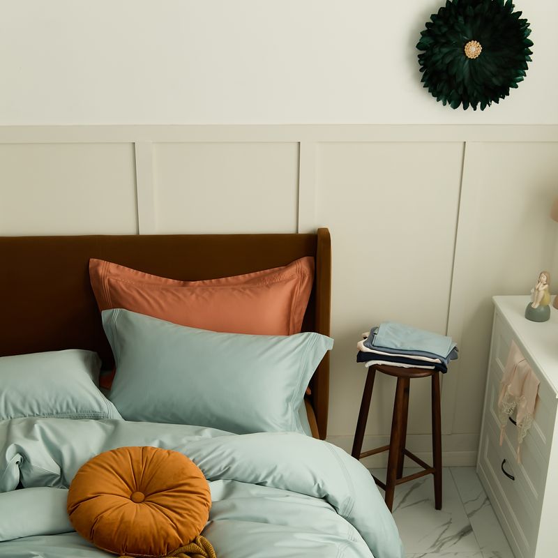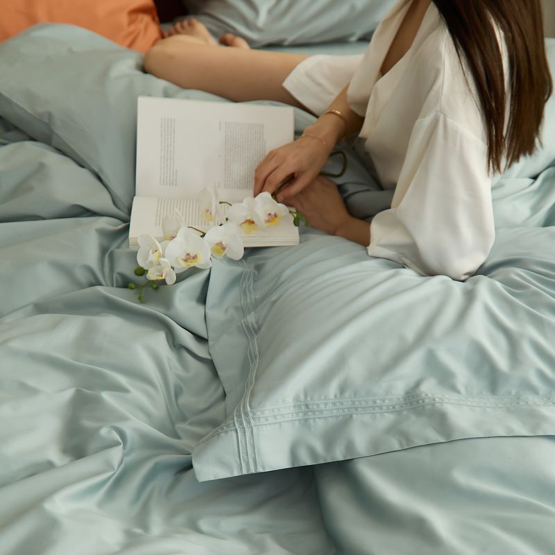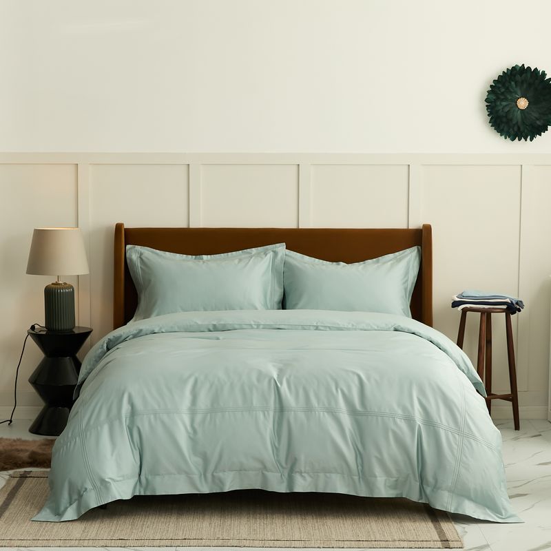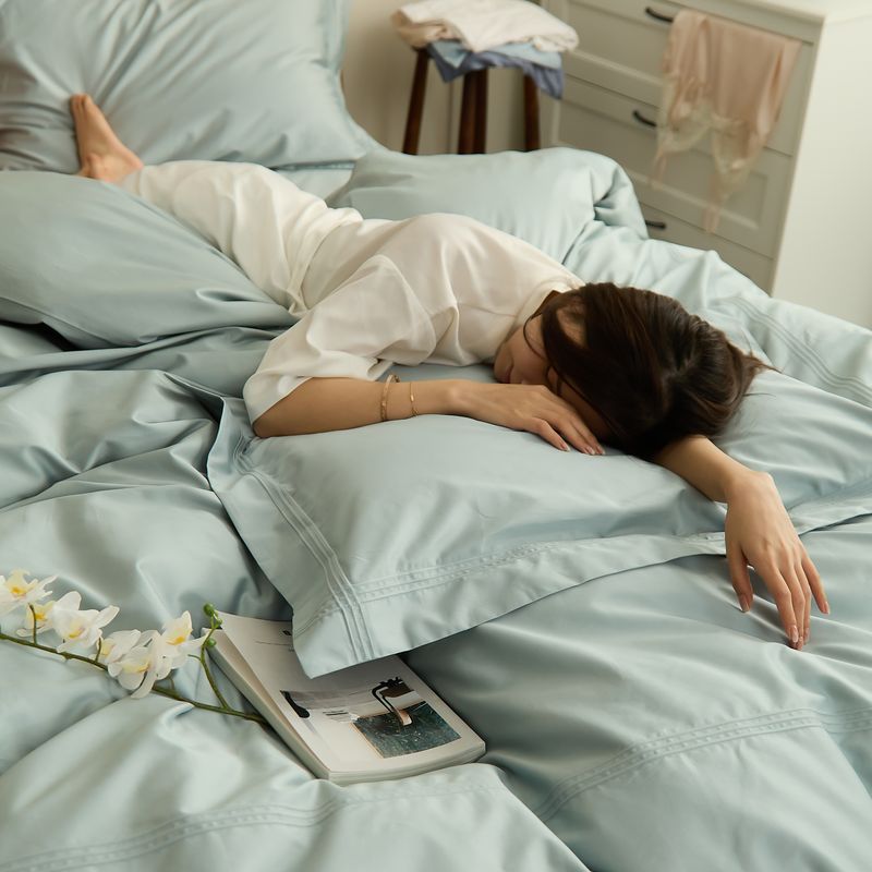 商品名称:涞澳 2021新款纯色滚压条贡缎轻奢系列四件套 湖水蓝