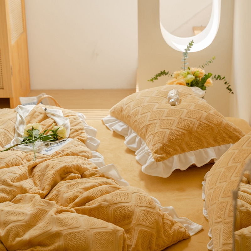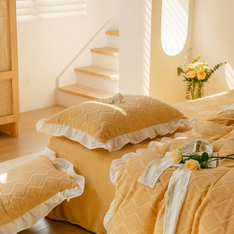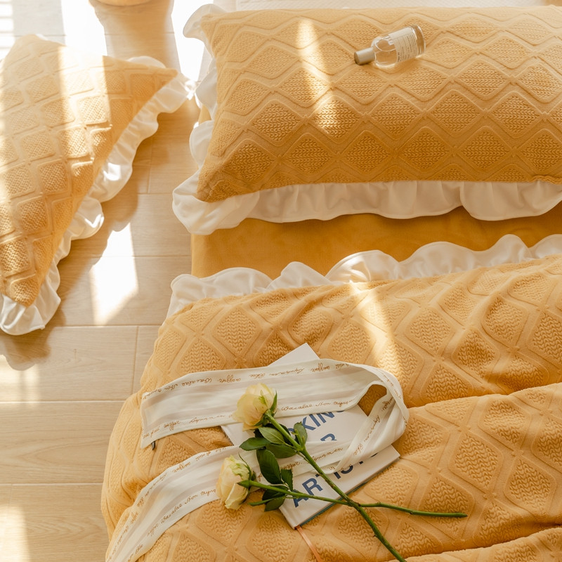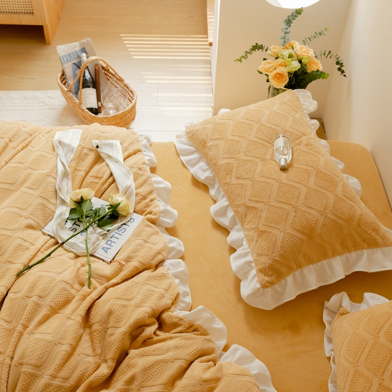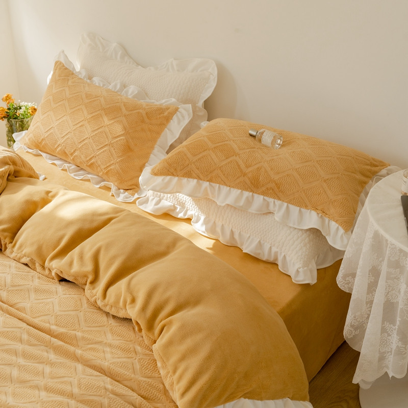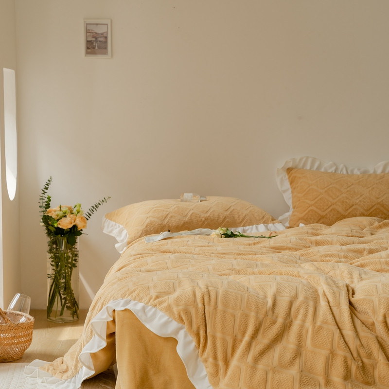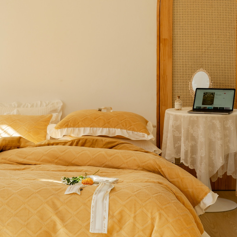 当前位置: 91家纺网 > 商品网购 > 床品套件 > 四件套 > 牛奶绒四件套 > FORTWO 新款230g全消光牛奶绒压花款四件套 华夫-黄