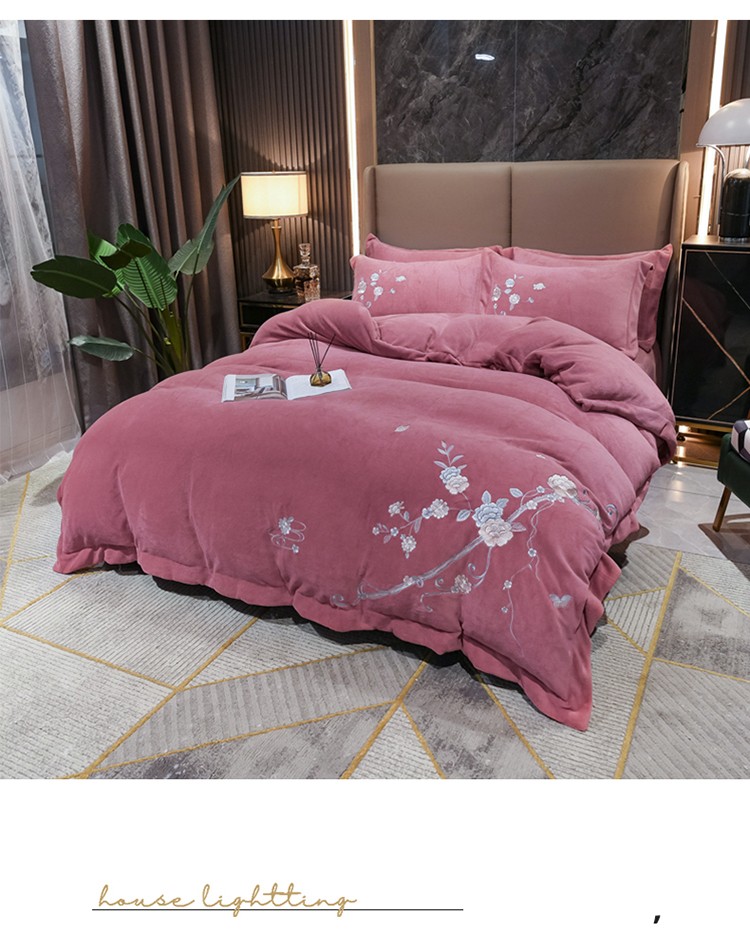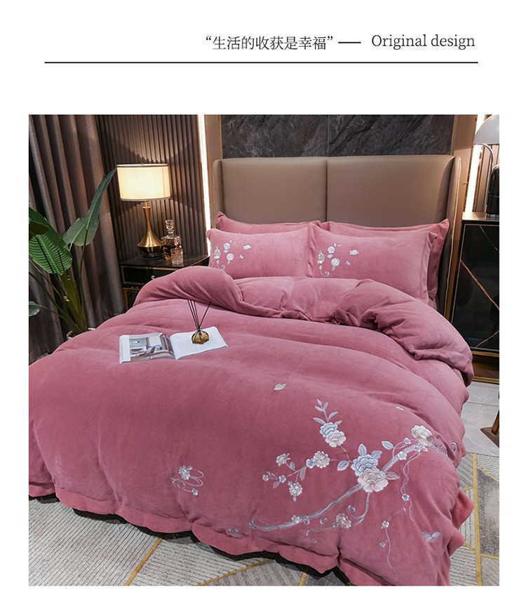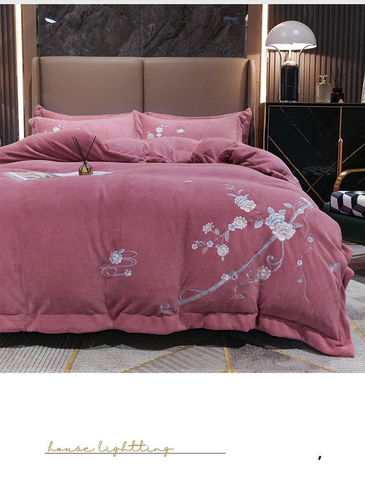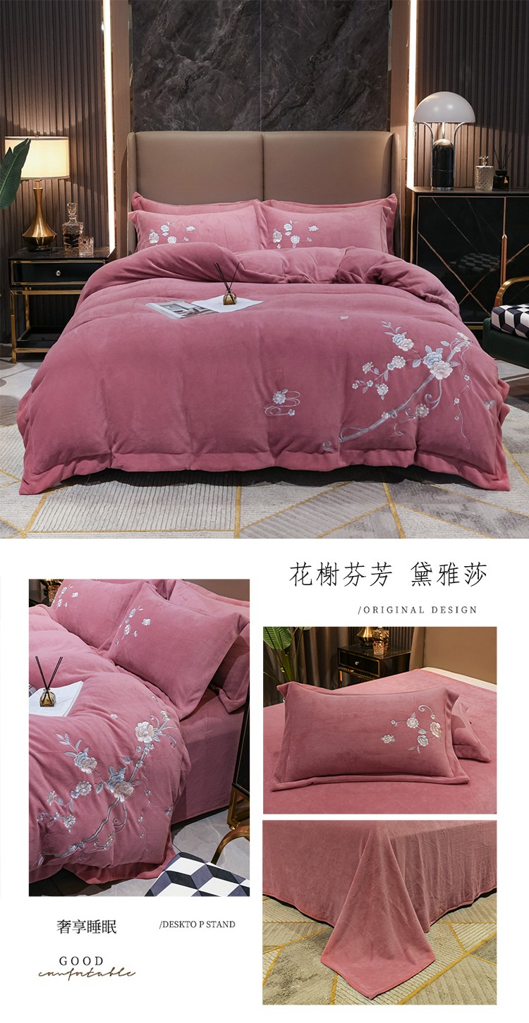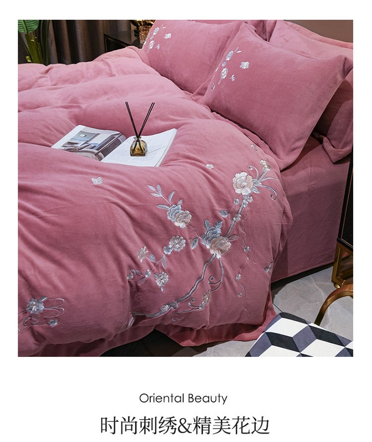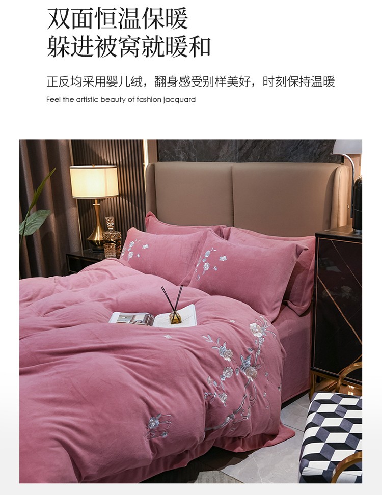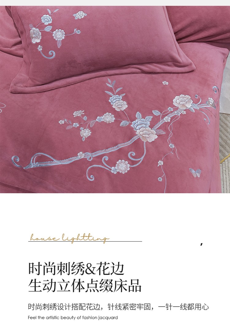 诗黛尔2021新款秋冬保暖牛奶绒绣花四件套 花榭芬芳 黛雅莎