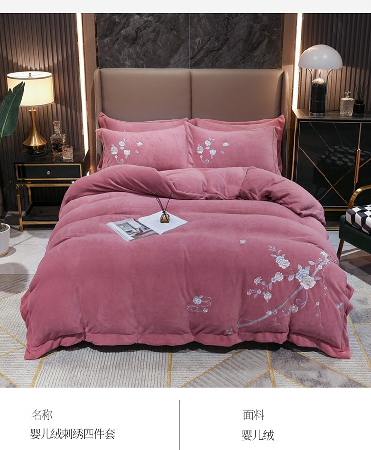 商品名称:诗黛尔2021新款秋冬保暖牛奶绒绣花四件套 花榭芬芳 黛雅莎
