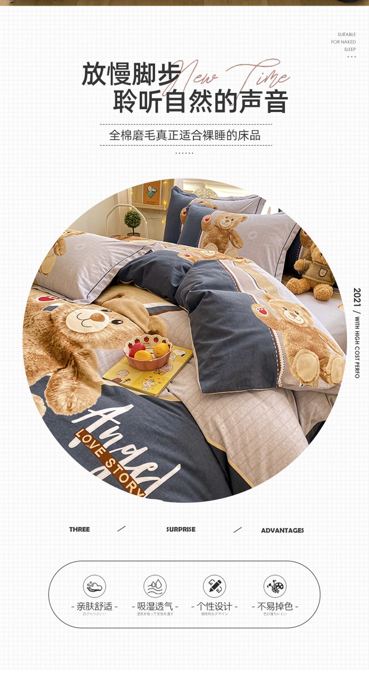 商品名称:金爱家 2021新款大版秋冬纯棉磨毛四件套 爱心熊