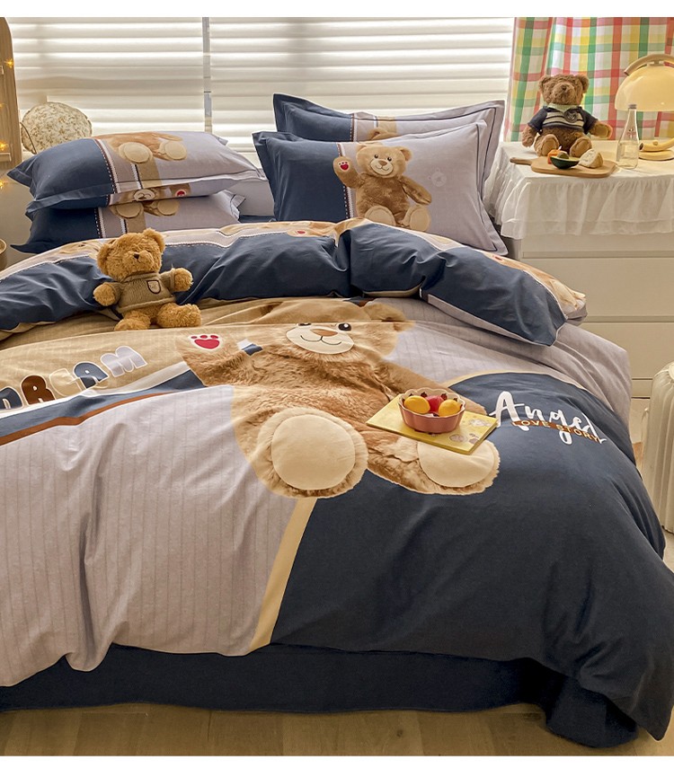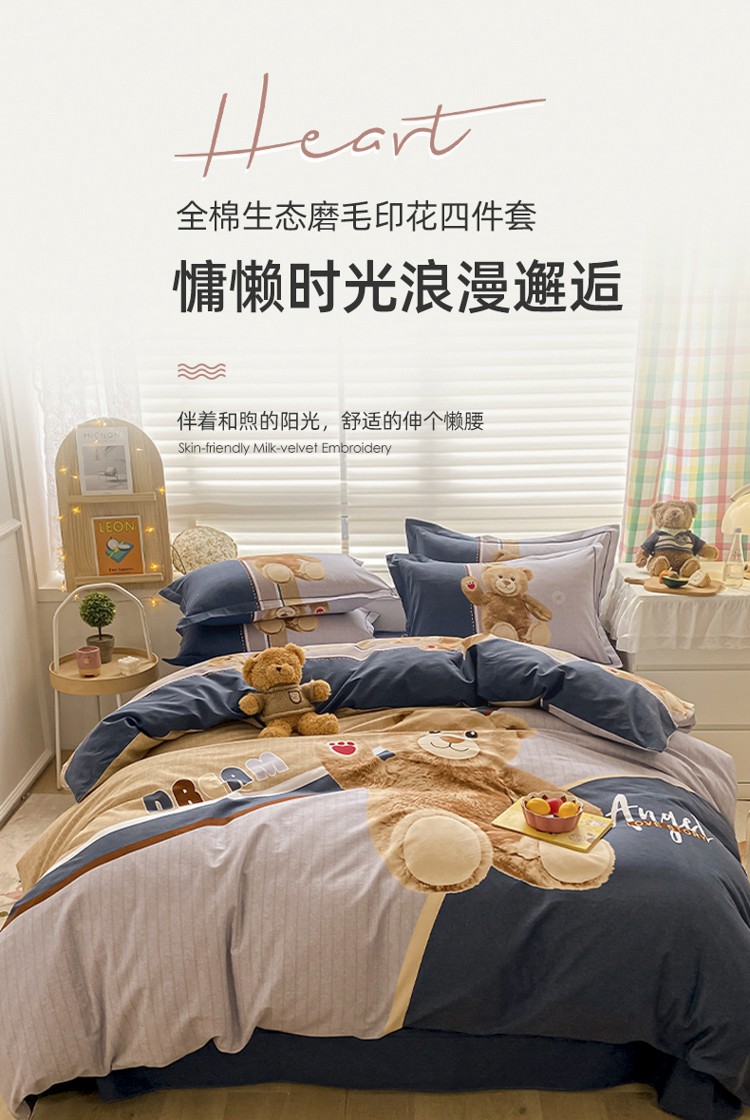 金爱家 2021新款大版秋冬纯棉磨毛四件套 爱心熊