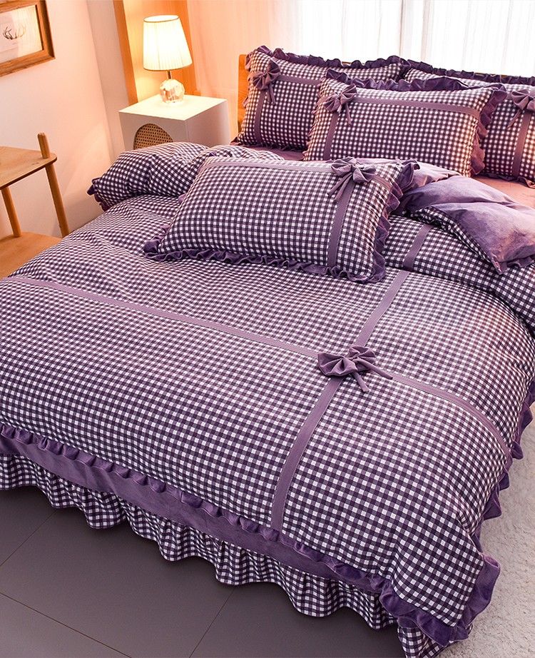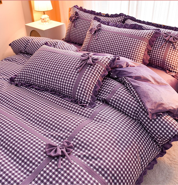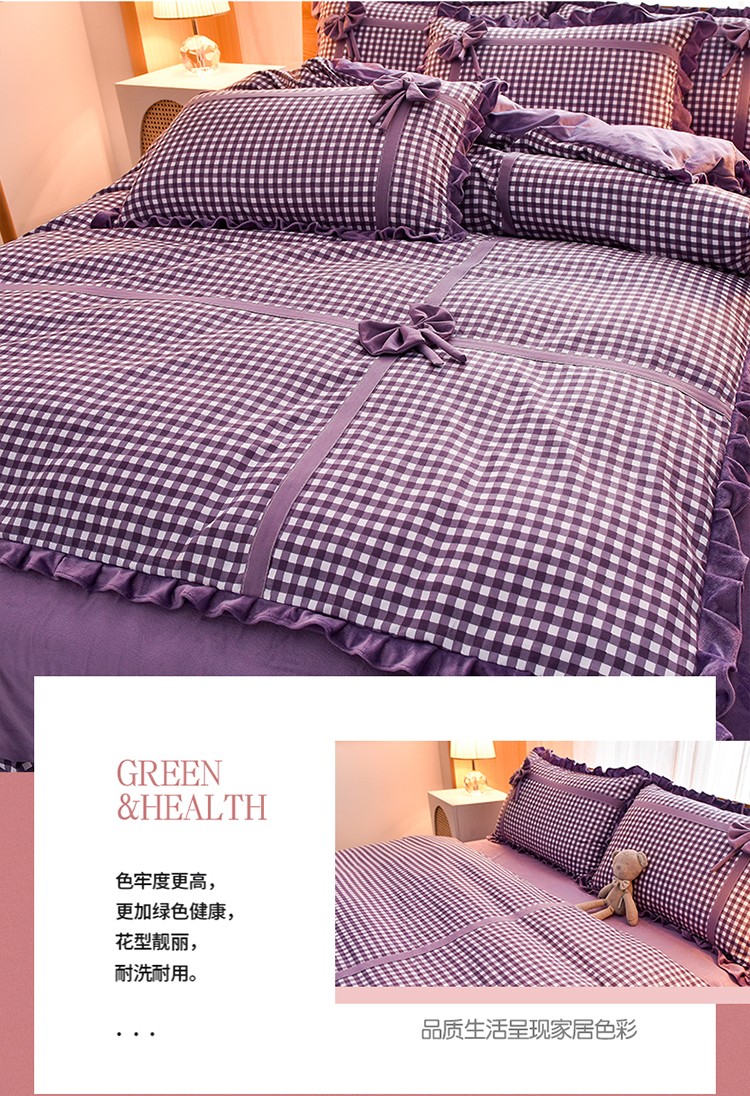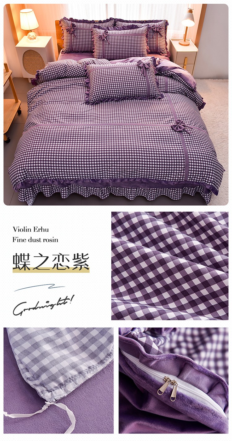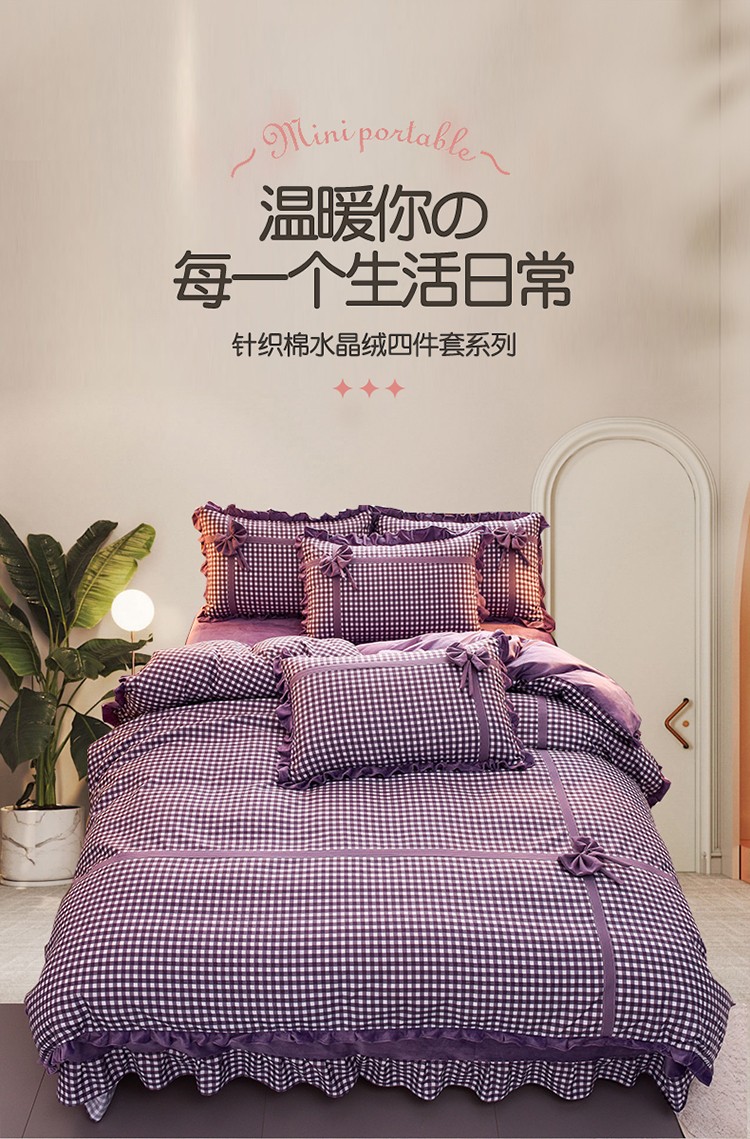 商品名称:金莎浪 2022新款A版针织棉B版水晶绒四件套 蝶之恋紫