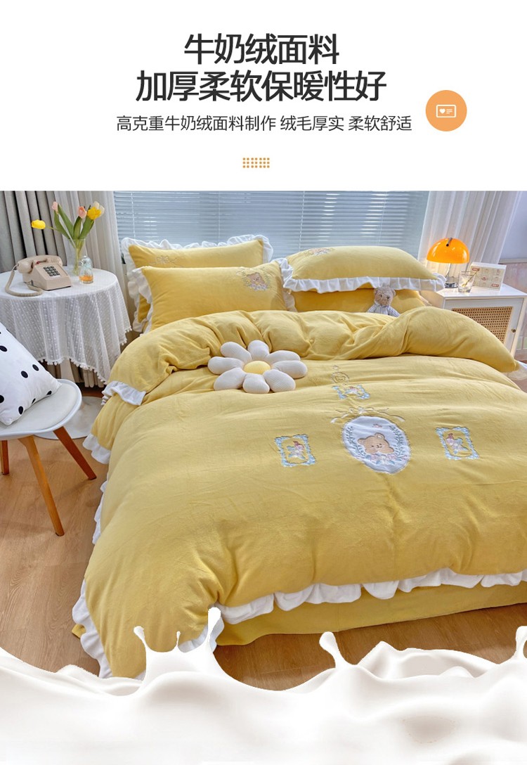 (总)星尚家纺 2024新款加厚保暖全消光牛奶绒夹棉床裙四件套-玫瑰之恋,粉玉,寐紫,浅蓝,水绿