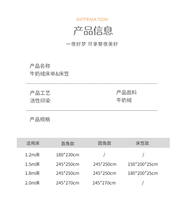 商品名称:(总)眷恋家纺 2022新款牛奶绒单床单床笠